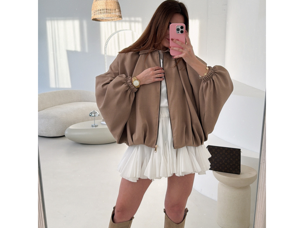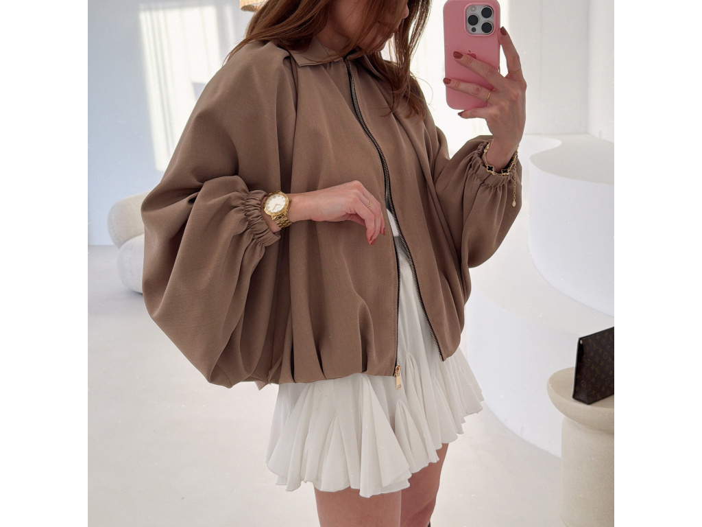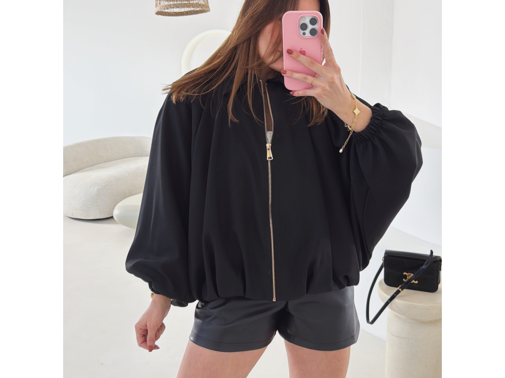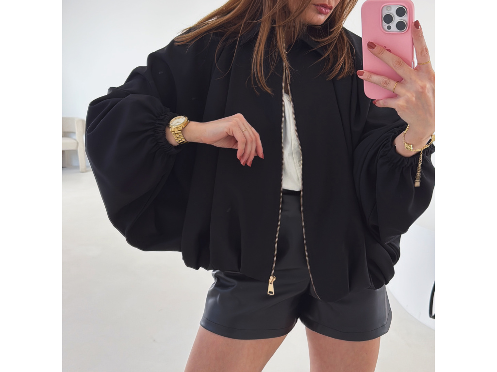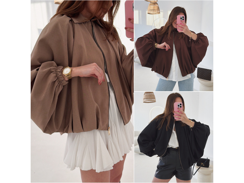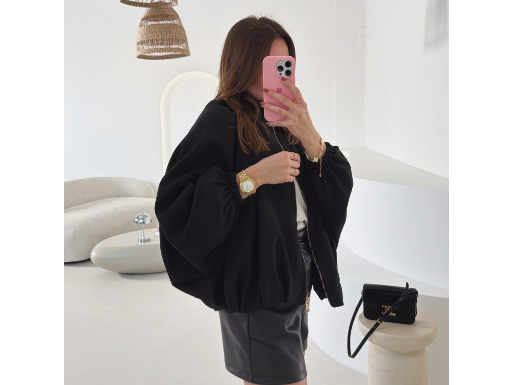 Stylová bundička s balónovými rukávy, která zaujme na první pohled. Nabírané sklady v dolním kraji dodávají modelu objem a moderní siluetu, zatímco rukávy zakončené do gumičky vytváří jemný, ženský efekt. Zapínání na zlatý zip přidává elegantní detail a krásně doplňuje celý look. Perfektní k šatům, sukním i kalhotám pro každodenní i slavnostnější styling.