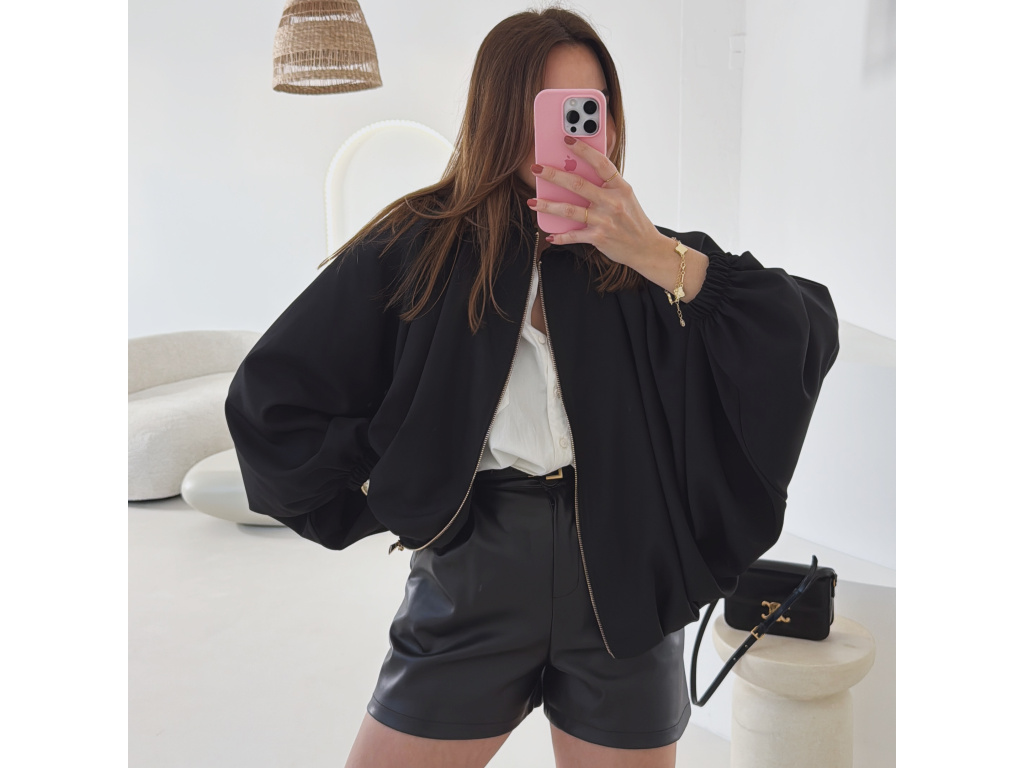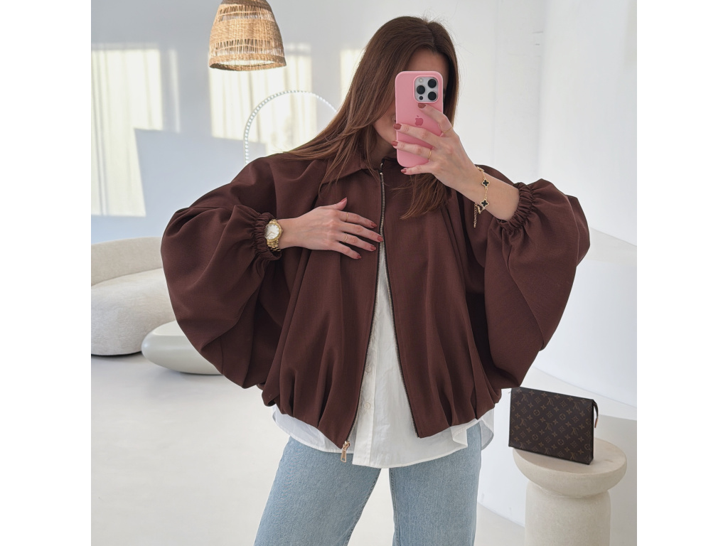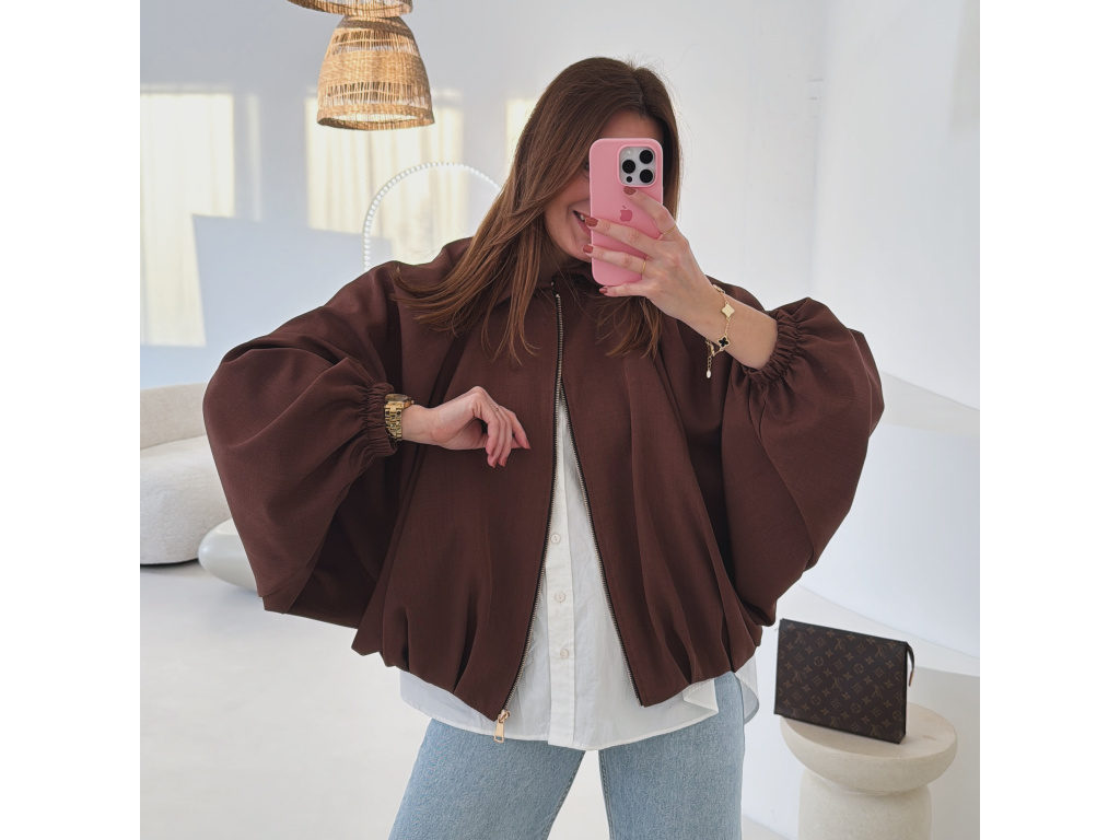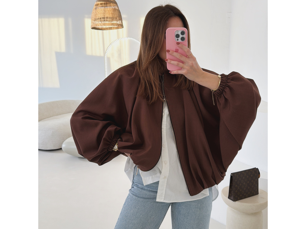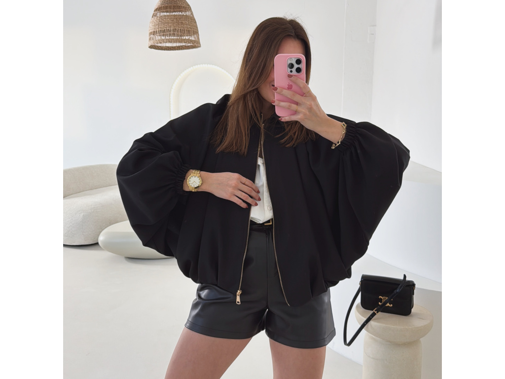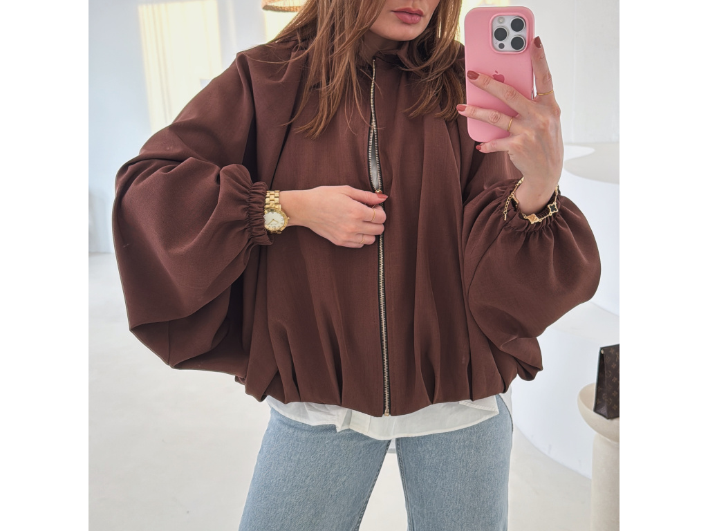 Stylová bundička s balónovými rukávy, která zaujme na první pohled. Nabírané sklady v dolním kraji dodávají modelu objem a moderní siluetu, zatímco rukávy zakončené do gumičky vytváří jemný, ženský efekt. Zapínání na zlatý zip přidává elegantní detail a krásně doplňuje celý look. Perfektní k šatům, sukním i kalhotám pro každodenní i slavnostnější styling.
