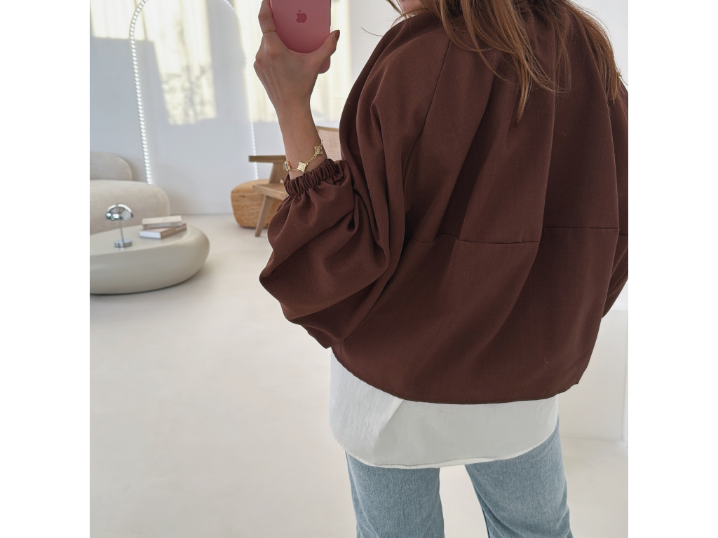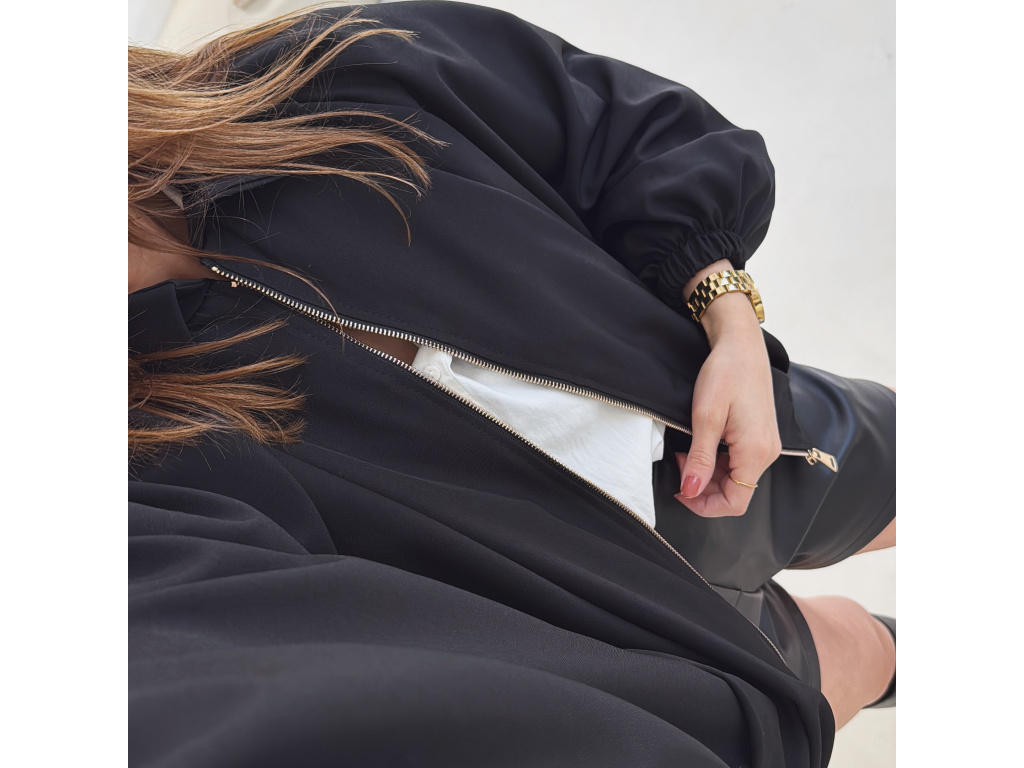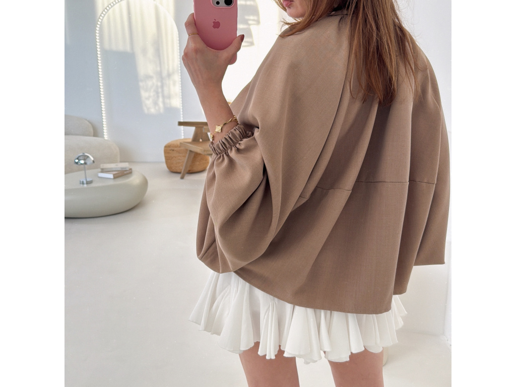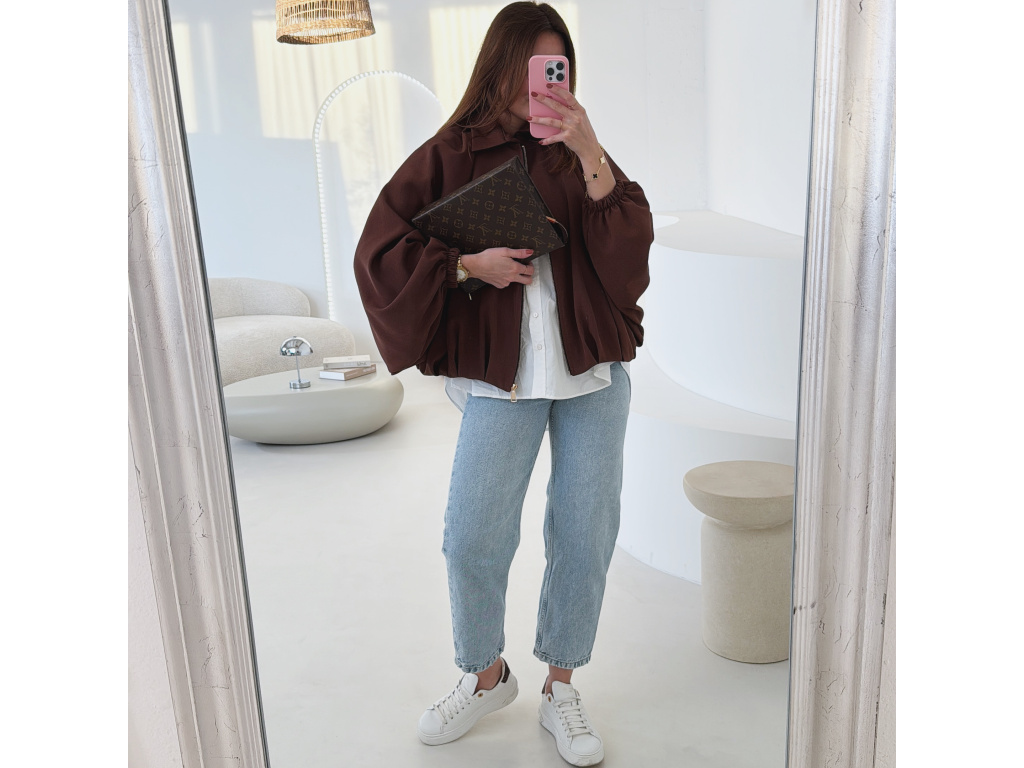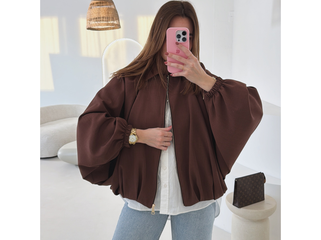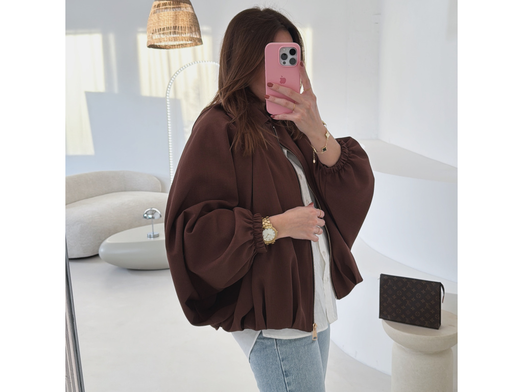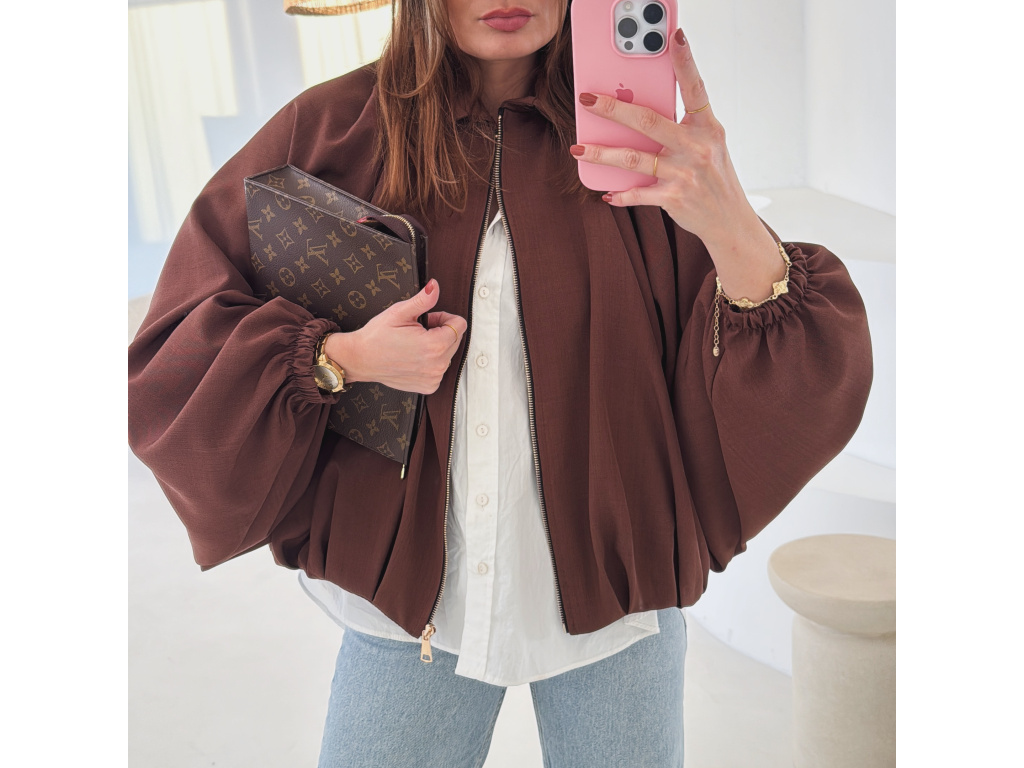 Stylová bundička s balónovými rukávy, která zaujme na první pohled. Nabírané sklady v dolním kraji dodávají modelu objem a moderní siluetu, zatímco rukávy zakončené do gumičky vytváří jemný, ženský efekt. Zapínání na zlatý zip přidává elegantní detail a krásně doplňuje celý look. Perfektní k šatům, sukním i kalhotám pro každodenní i slavnostnější styling.