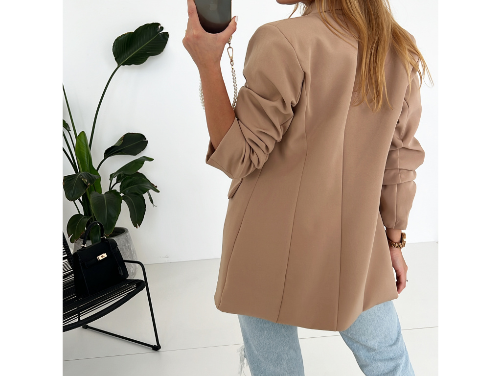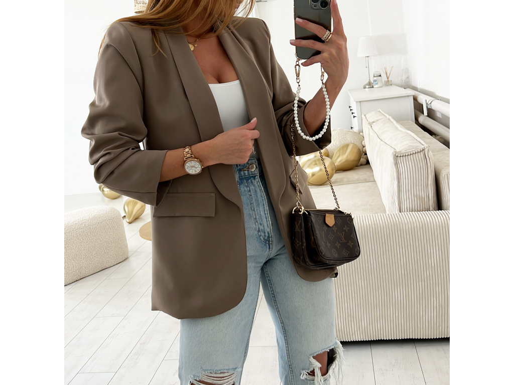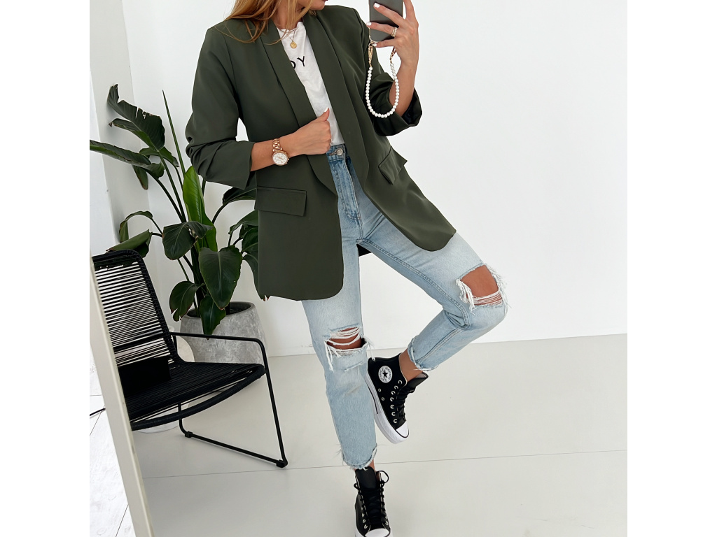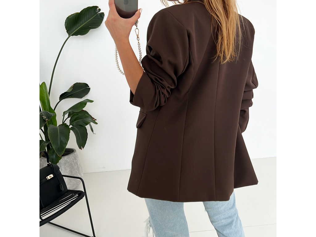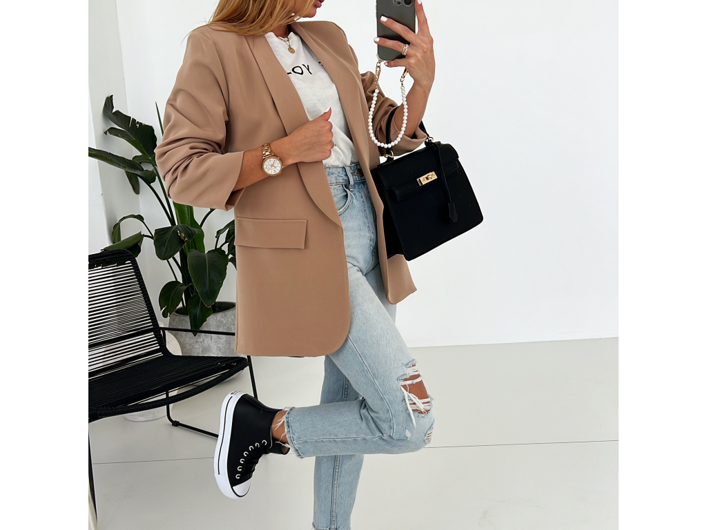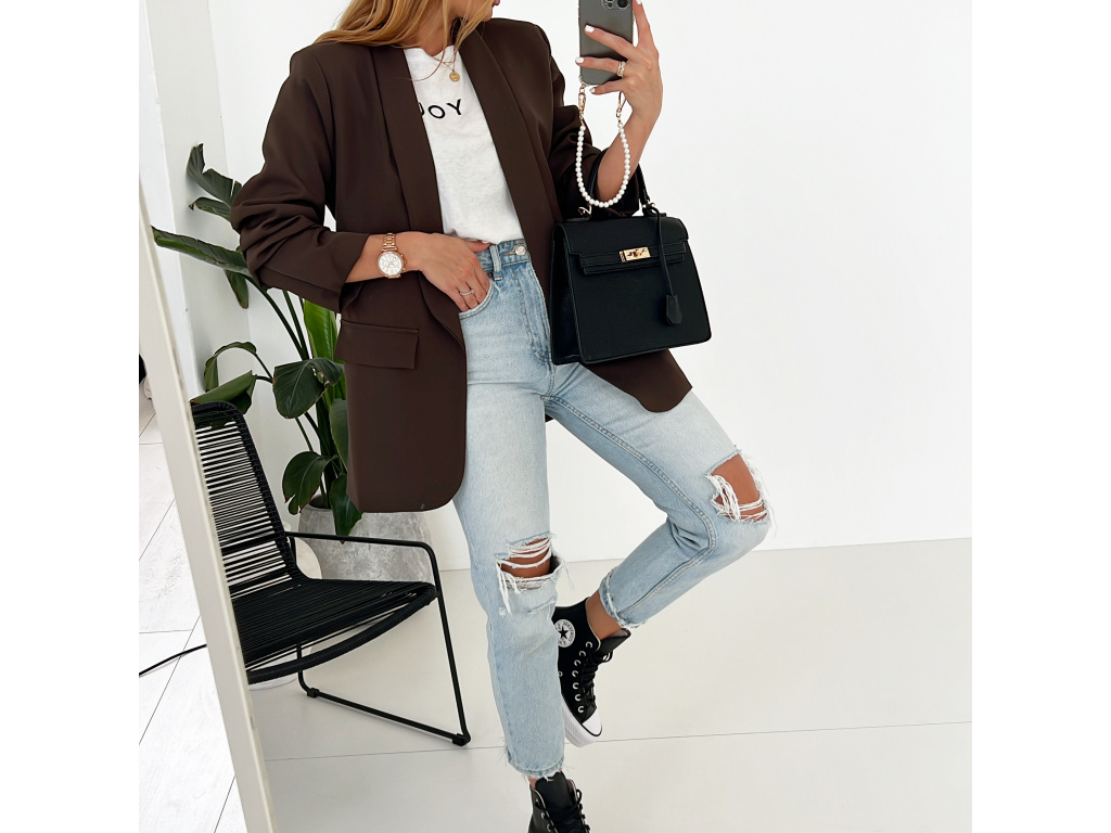 Elegantní sako oblíbeného prodlouženého střihu s podšívkou a vyztuženými rameny. Velikost je univerzální, sedí na XS, S a M. Foceno je na velikosti XS a výšce 165 cm. DOPORUČUJEME! Ohledně rozměrů nás neváhejte kontaktovat.