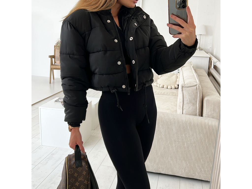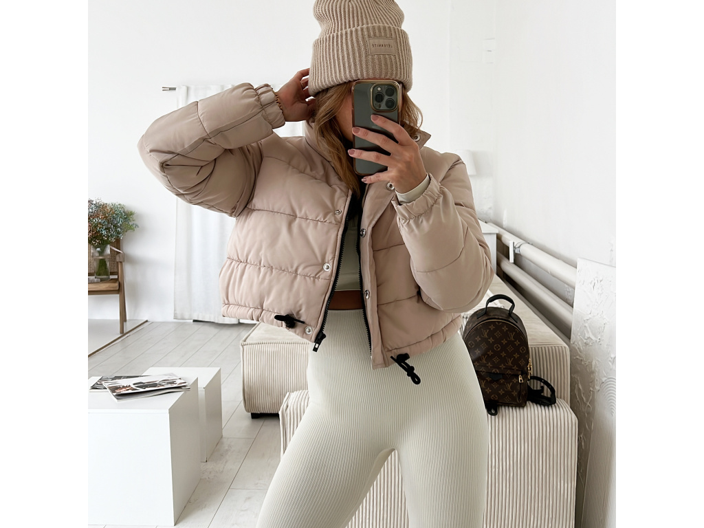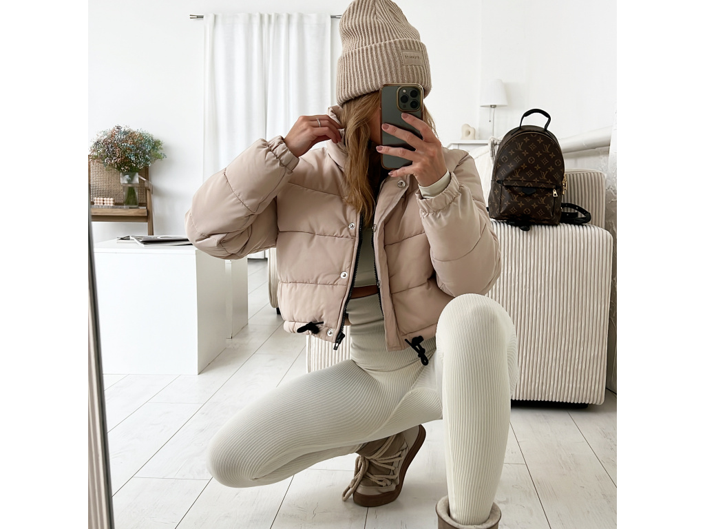 Stylová a nadýchaná bunda puffer croppového střihu v černé a béžové barvě. Bundička se dá v dolním kraji stáhnout. Materiál i propracování bundy je kvalitní. Bunda má kapsy. Detaily jsou černé. Velikost S,M,L a XL. Materiál je příjemný a nepromokavý. Velikost S je focena na XSku a výšce 165 cm.