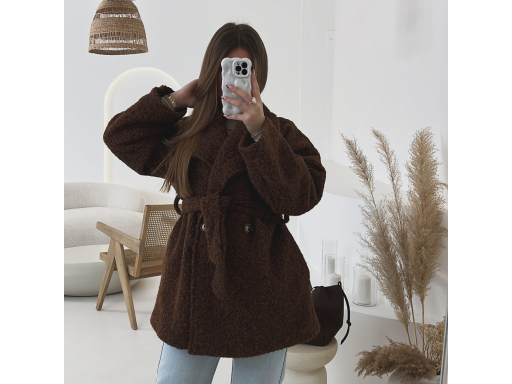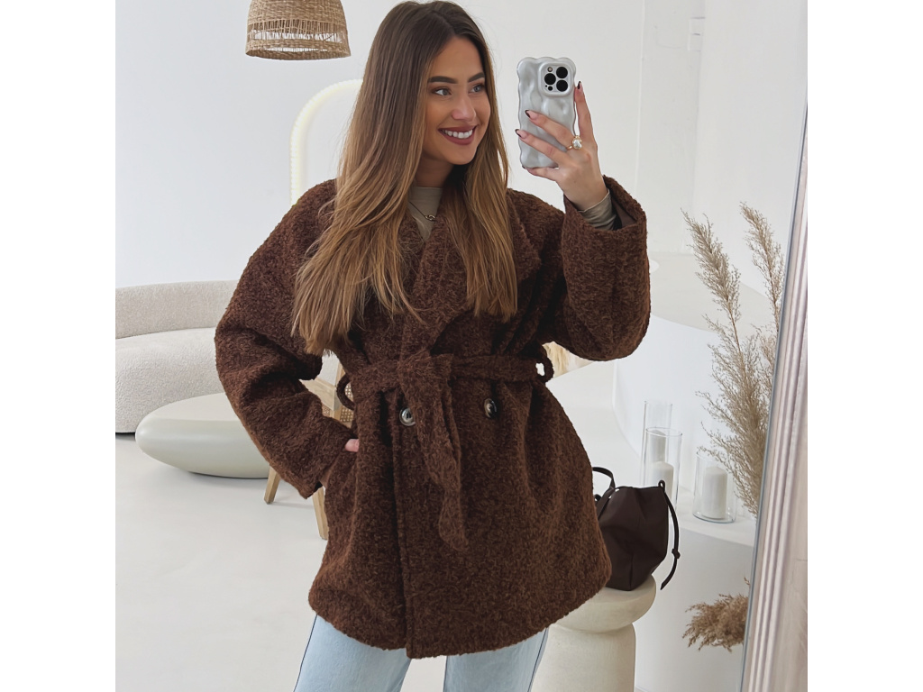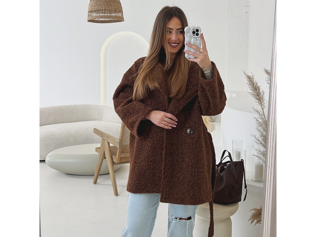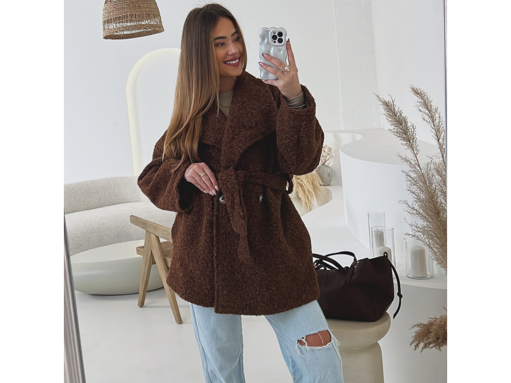 Elegantní hřejivý kabát z měkkého „teddy“ materiálu s jemným chloupkem a kvalitní podšívkou pro maximální pohodlí. Díky pásku v pase si snadno upravíte střih podle své postavy a vytvoříte lichotivý siluetu. Kabát má praktické zapínání na dva knoflíky, široký límec a dvě boční kapsy. Skvěle se hodí jak k elegantním outfitům, tak k ležérním kombinacím s džíny. Velikost je univerzální, sedí na XS, S, M a menší Lko, na velikosti XS bude kabátek volnější.