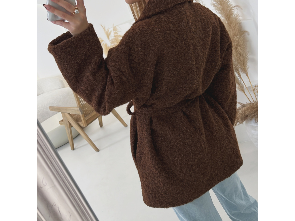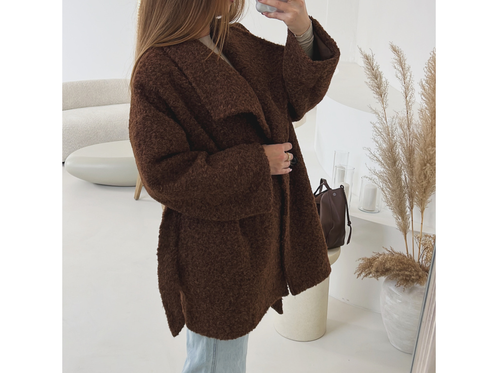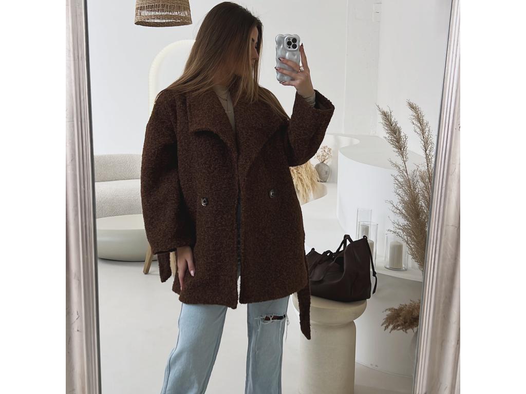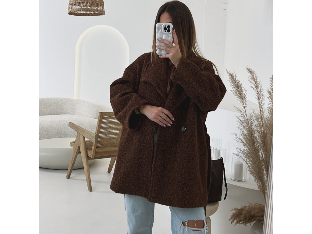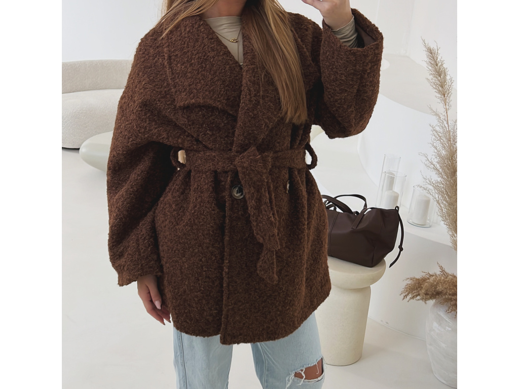 Elegantní hřejivý kabát z měkkého „teddy“ materiálu s jemným chloupkem a kvalitní podšívkou pro maximální pohodlí. Díky pásku v pase si snadno upravíte střih podle své postavy a vytvoříte lichotivý siluetu. Kabát má praktické zapínání na dva knoflíky, široký límec a dvě boční kapsy. Skvěle se hodí jak k elegantním outfitům, tak k ležérním kombinacím s džíny. Velikost je univerzální, sedí na XS, S, M a menší Lko, na velikosti XS bude kabátek volnější.