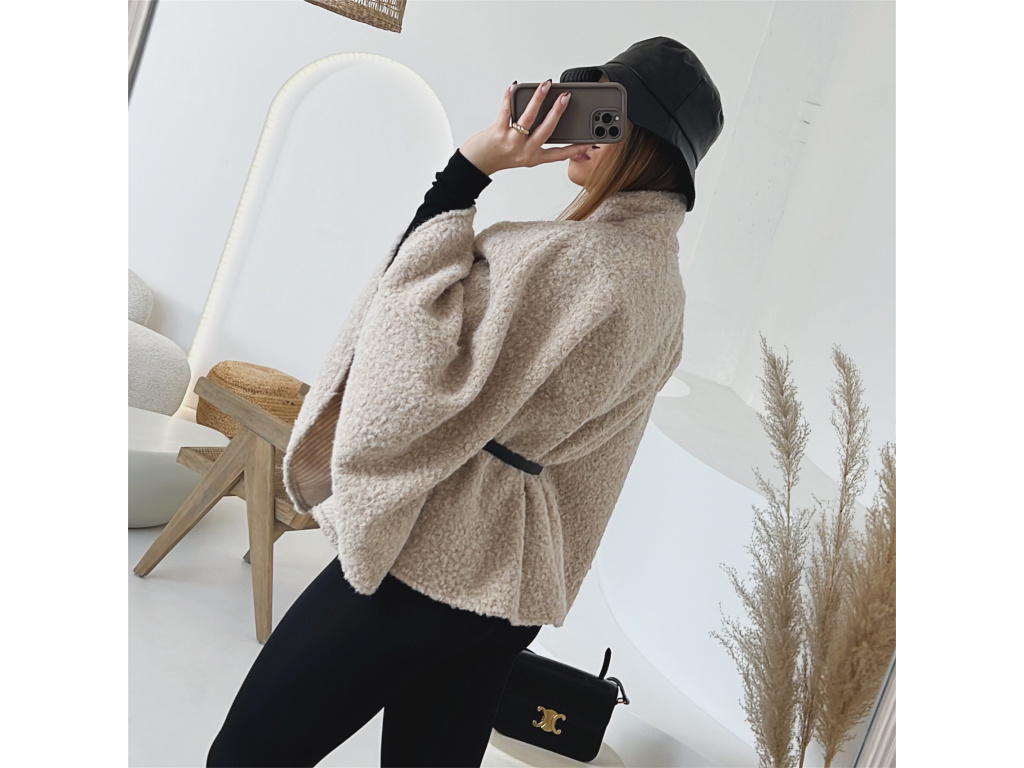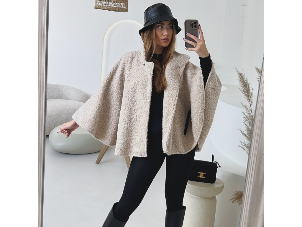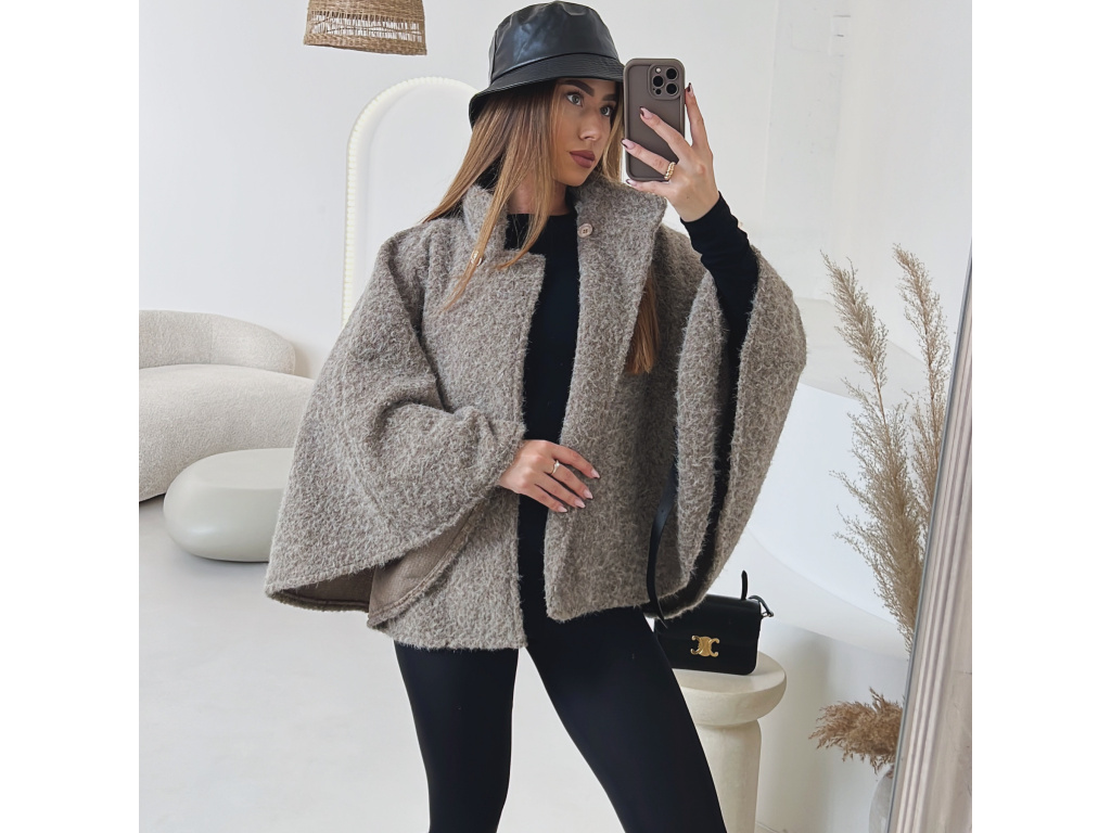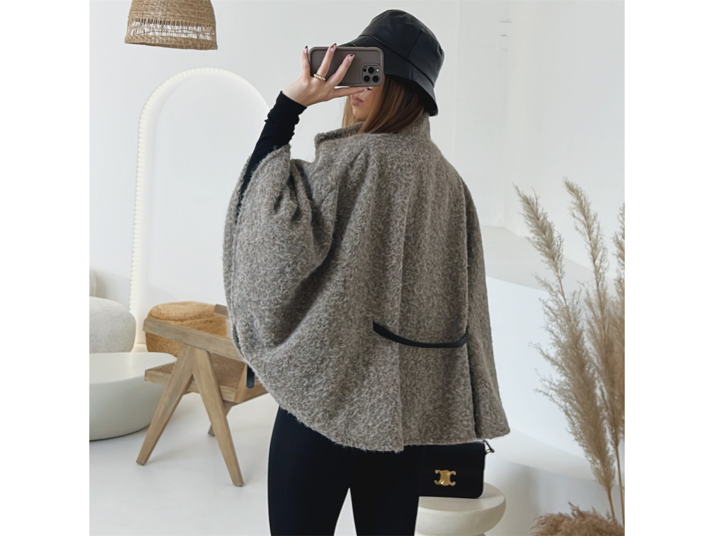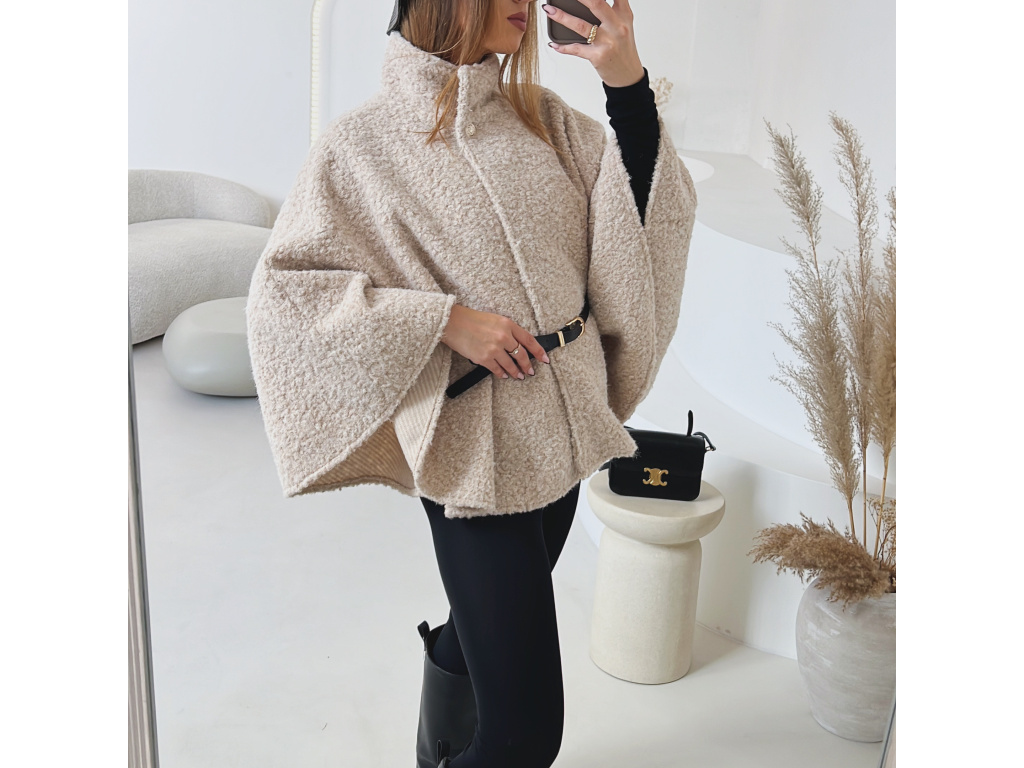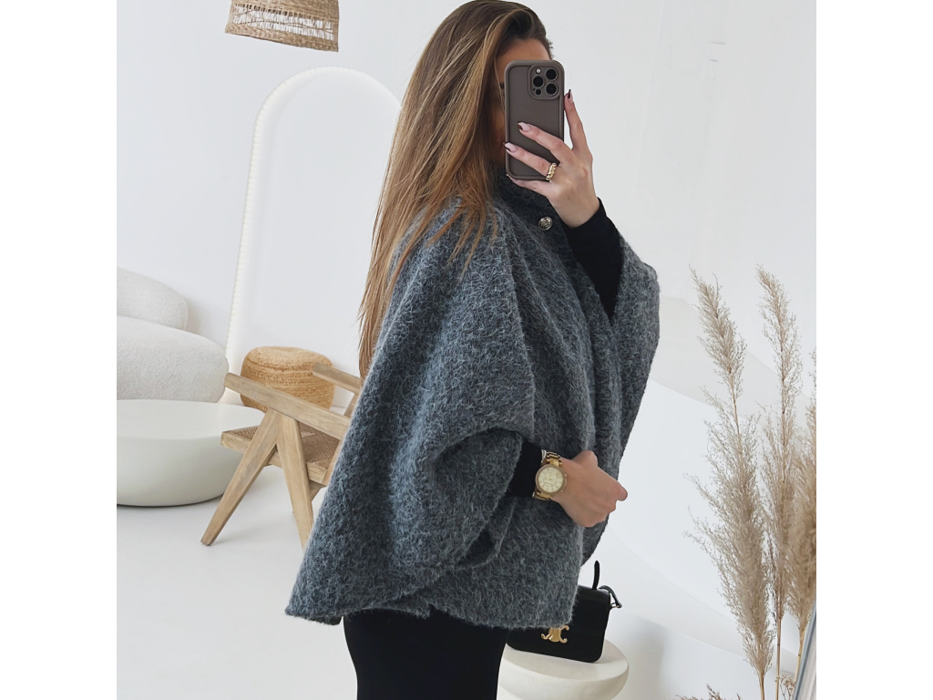 Objevte dokonalou kombinaci elegance a pohodlí v tomto nadčasovém ponču. Je vyrobeno z měkkého, hřejivého materiálu, který vás zahřeje v chladnějších dnech a zároveň dodá outfitu šmrnc. Volný střih umožňuje pohodlné vrstvení, zatímco černý pásek v pase krásně zvýrazní ženskou siluetu. Pončo má moderní stojáček se zapínáním na knoflík a široké rukávy, které působí vzdušně a zároveň elegantně. Skvěle se hodí jak k ležérnímu outfitu s džínami, tak i k elegantnějšímu looku s kozačkami. Velikost je univerzální, sedí na XS, S, M.