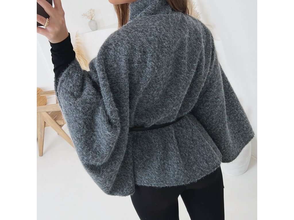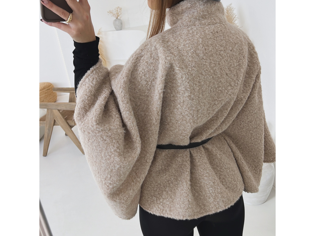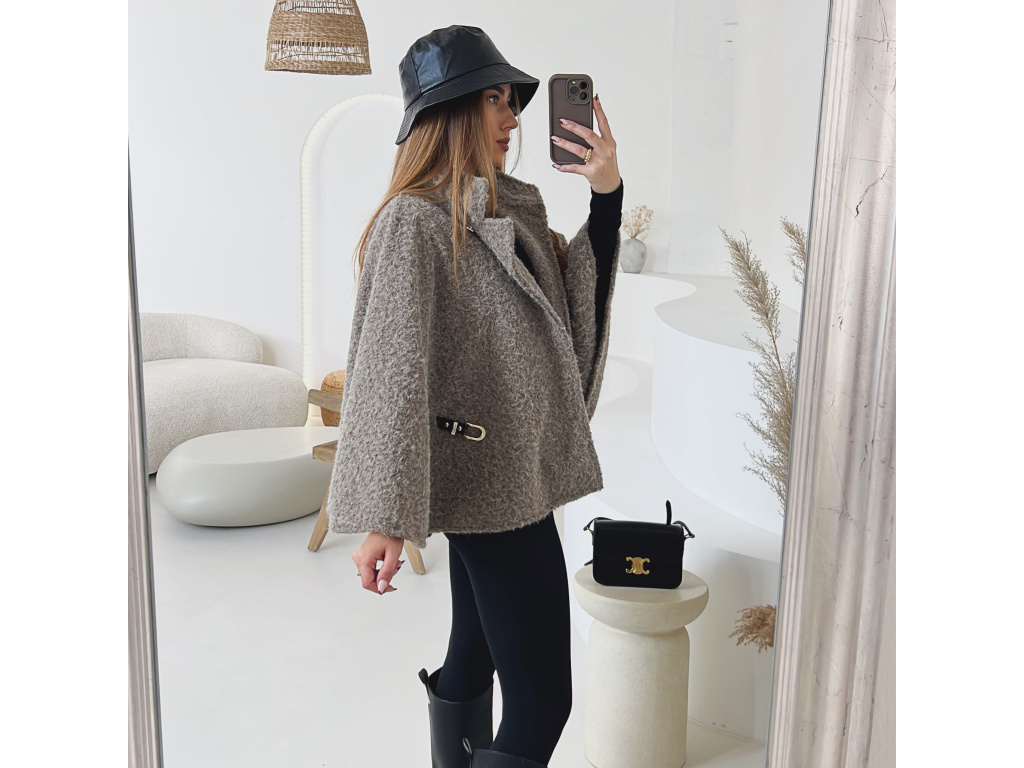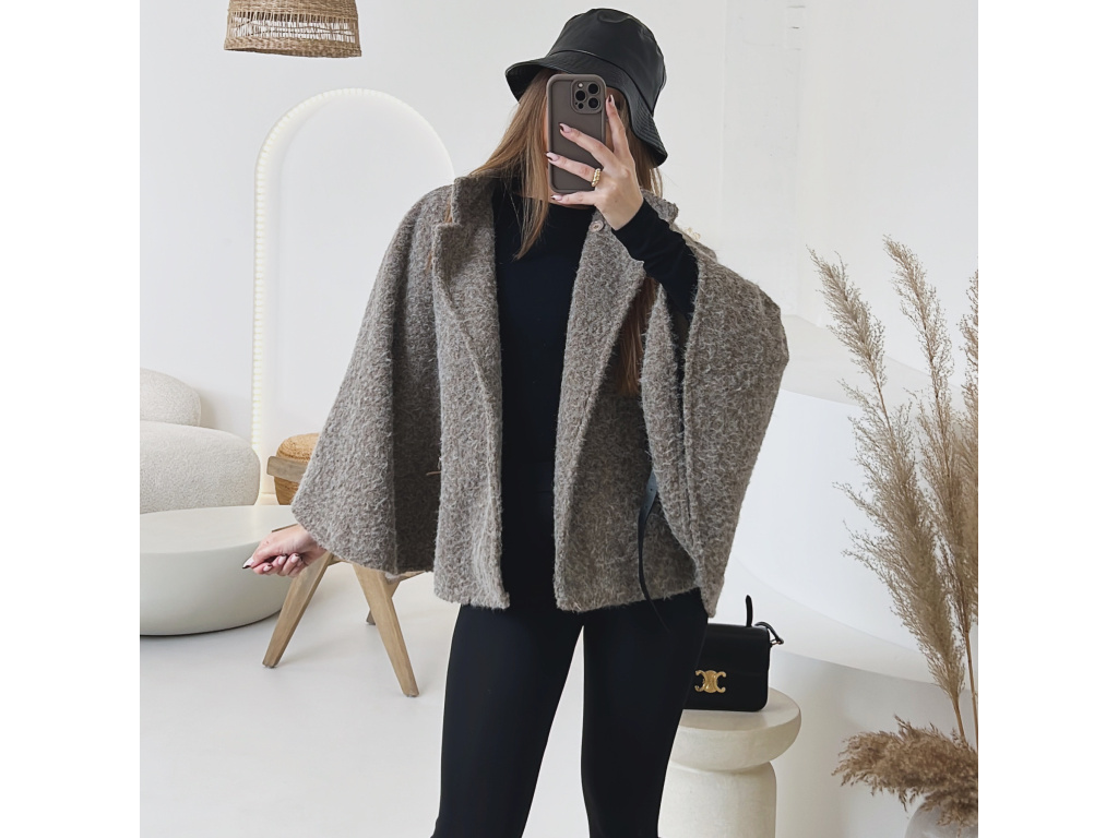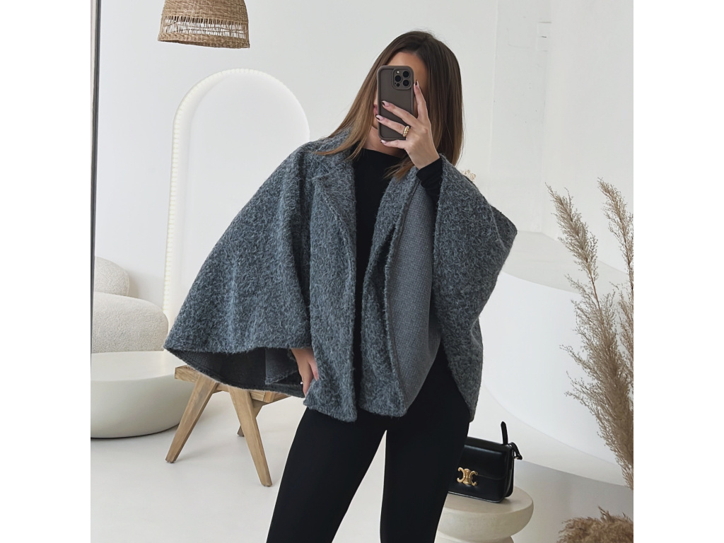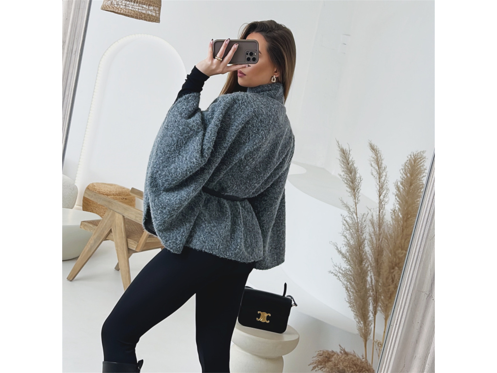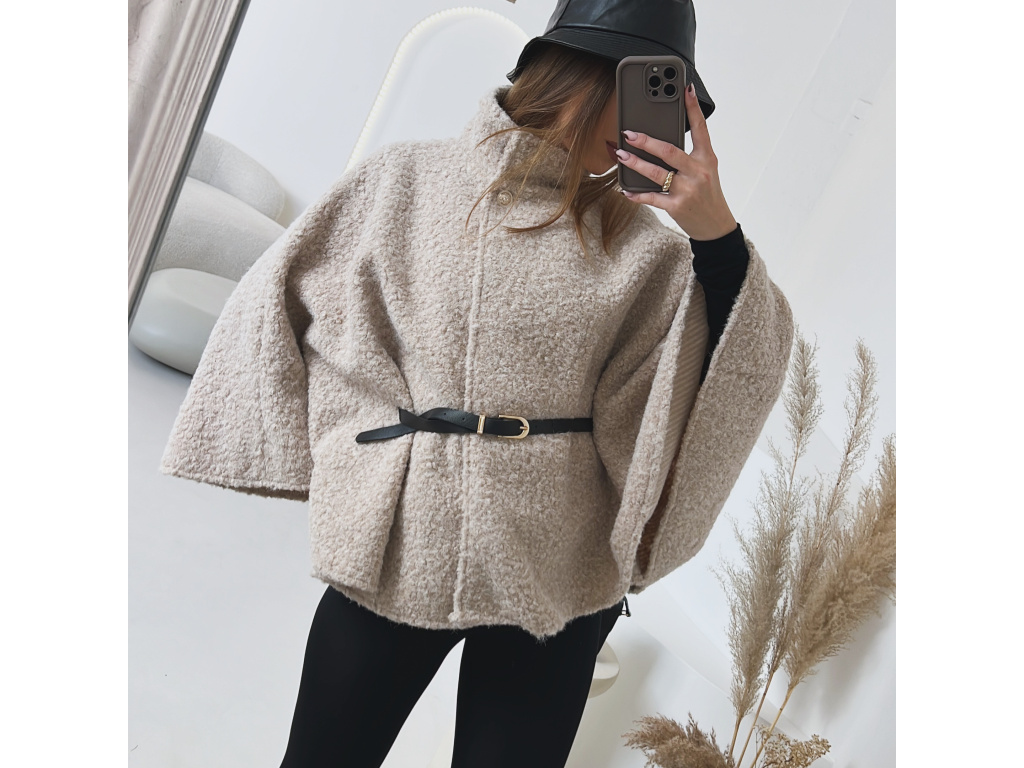 Objevte dokonalou kombinaci elegance a pohodlí v tomto nadčasovém ponču. Je vyrobeno z měkkého, hřejivého materiálu, který vás zahřeje v chladnějších dnech a zároveň dodá outfitu šmrnc. Volný střih umožňuje pohodlné vrstvení, zatímco černý pásek v pase krásně zvýrazní ženskou siluetu. Pončo má moderní stojáček se zapínáním na knoflík a široké rukávy, které působí vzdušně a zároveň elegantně. Skvěle se hodí jak k ležérnímu outfitu s džínami, tak i k elegantnějšímu looku s kozačkami. Velikost je univerzální, sedí na XS, S, M.