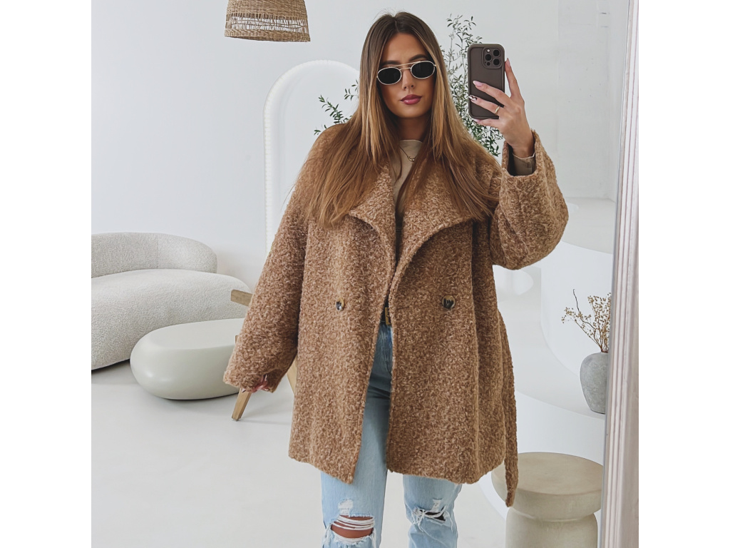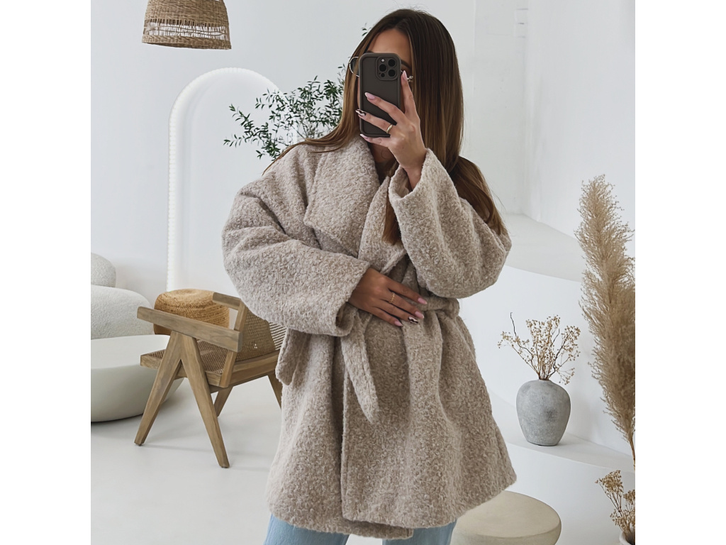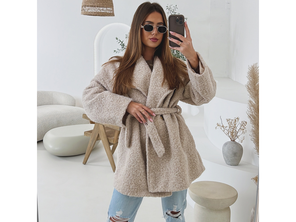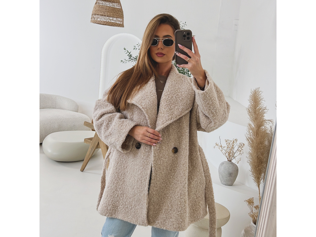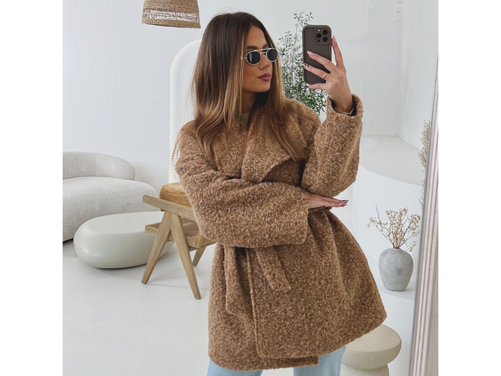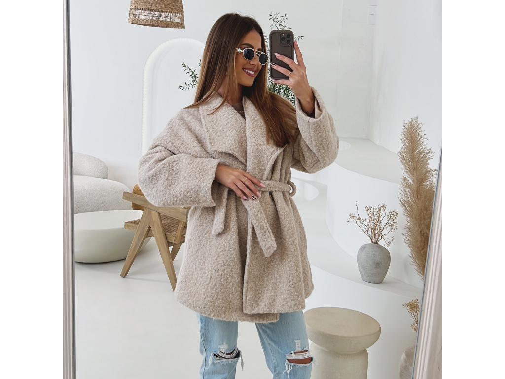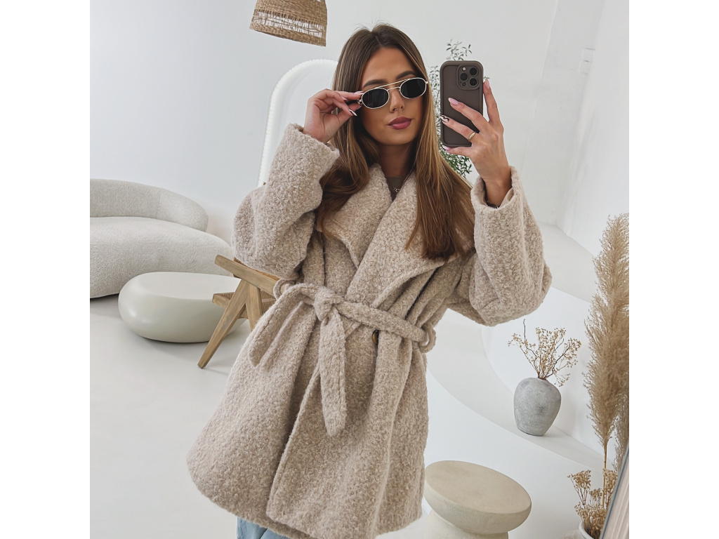 Elegantní hřejivý kabát z měkkého „teddy“ materiálu s jemným chloupkem a kvalitní podšívkou pro maximální pohodlí. Díky pásku v pase si snadno upravíte střih podle své postavy a vytvoříte lichotivý siluetu. Kabát má praktické zapínání na dva knoflíky, široký límec a dvě boční kapsy. Skvěle se hodí jak k elegantním outfitům, tak k ležérním kombinacím s džíny. Velikost je univerzální, sedí na XS, S, M a menší Lko, na velikosti XS bude kabátek volnější.