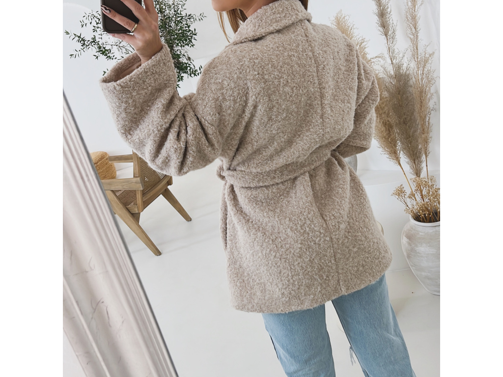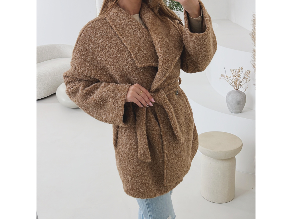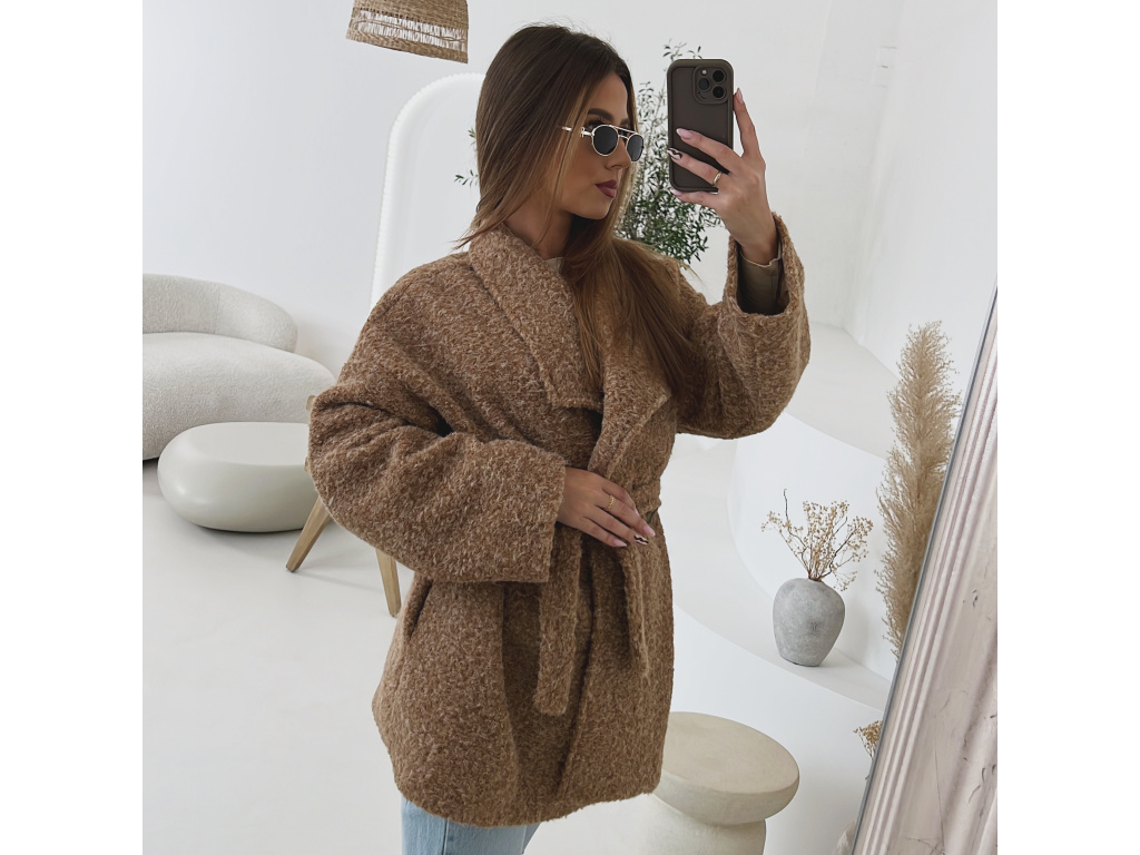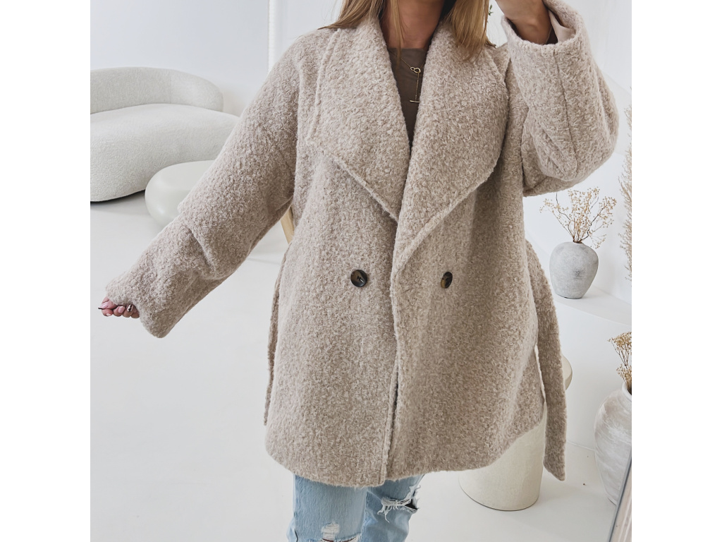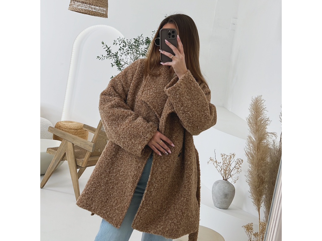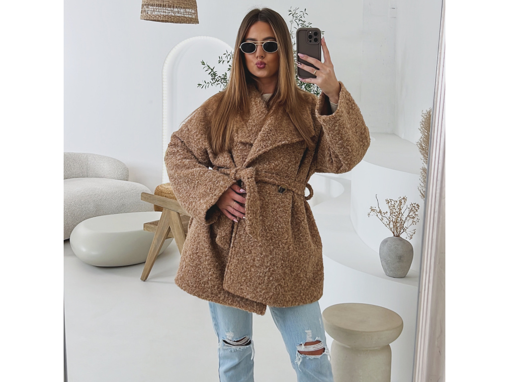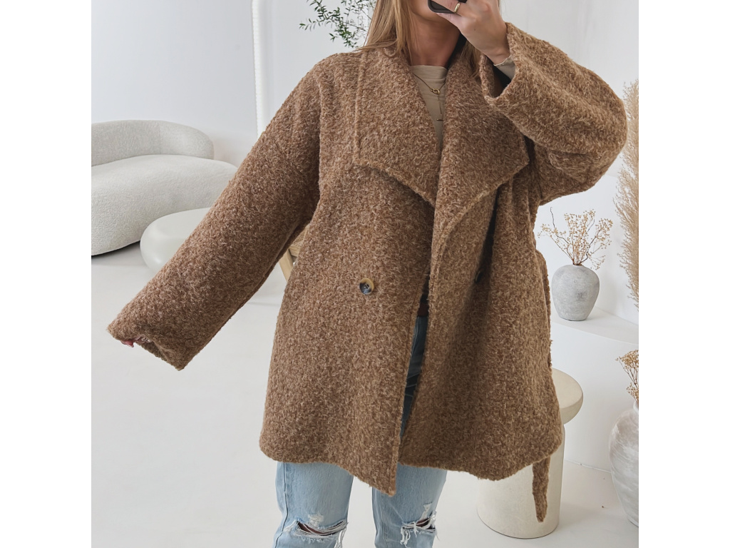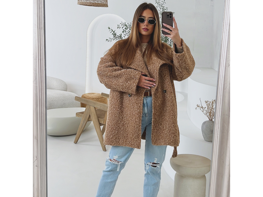 Elegantní hřejivý kabát z měkkého „teddy“ materiálu s jemným chloupkem a kvalitní podšívkou pro maximální pohodlí. Díky pásku v pase si snadno upravíte střih podle své postavy a vytvoříte lichotivý siluetu. Kabát má praktické zapínání na dva knoflíky, široký límec a dvě boční kapsy. Skvěle se hodí jak k elegantním outfitům, tak k ležérním kombinacím s džíny. Velikost je univerzální, sedí na XS, S, M a menší Lko, na velikosti XS bude kabátek volnější.