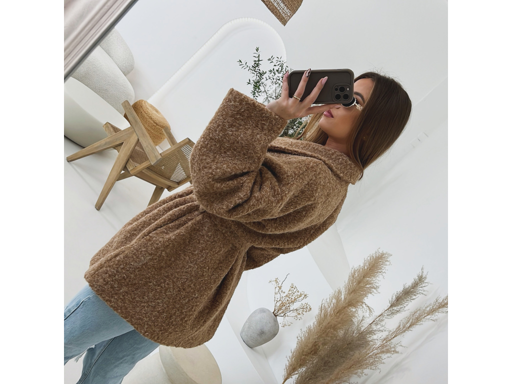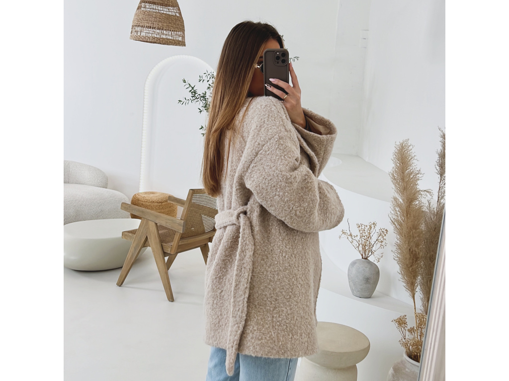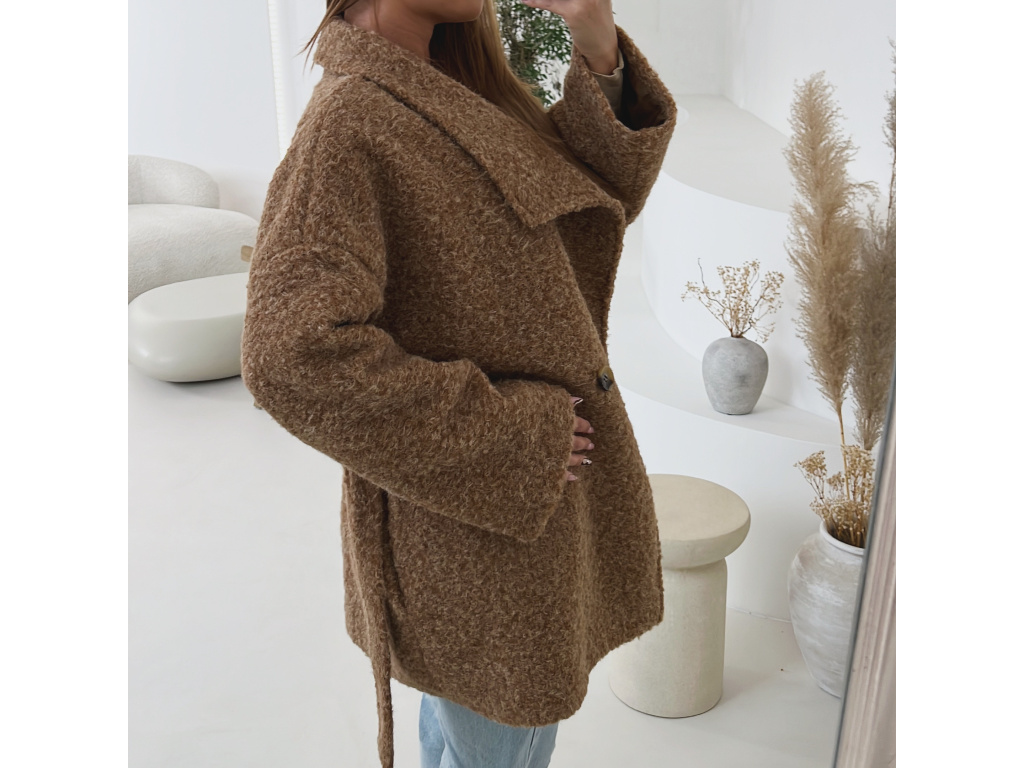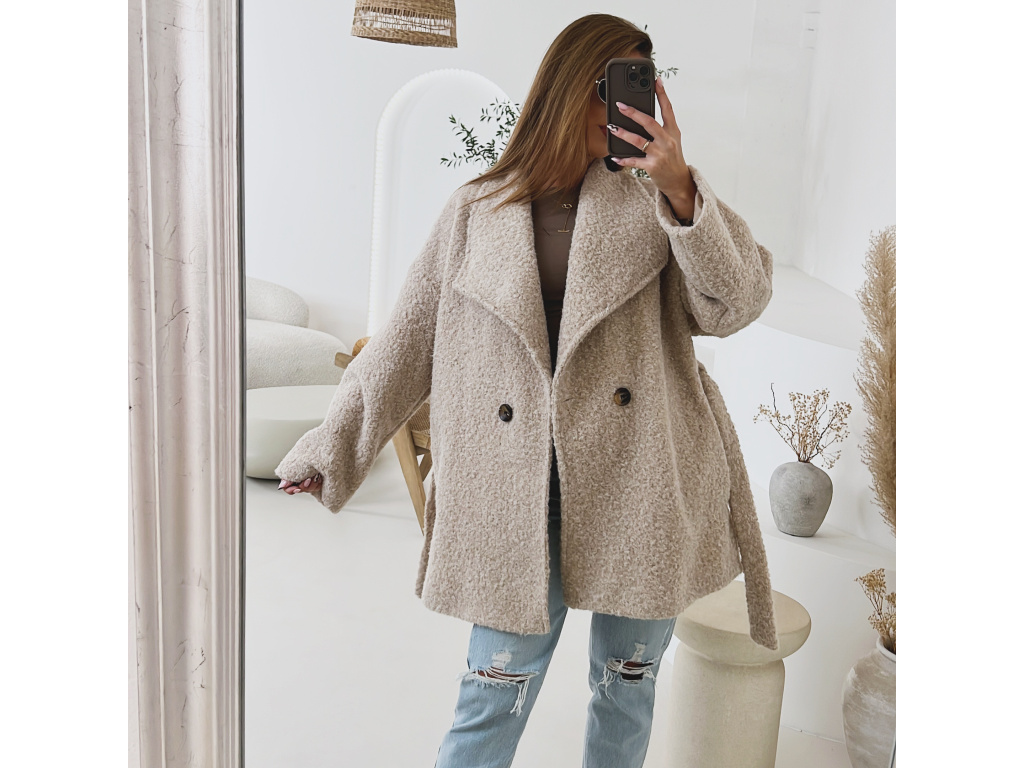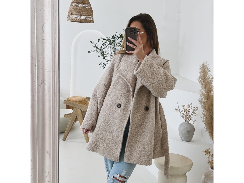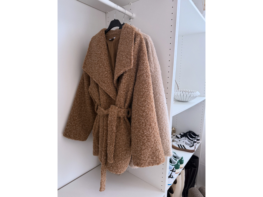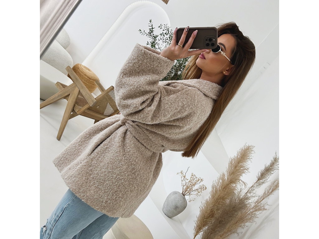 Elegantní hřejivý kabát z měkkého „teddy“ materiálu s jemným chloupkem a kvalitní podšívkou pro maximální pohodlí. Díky pásku v pase si snadno upravíte střih podle své postavy a vytvoříte lichotivý siluetu. Kabát má praktické zapínání na dva knoflíky, široký límec a dvě boční kapsy. Skvěle se hodí jak k elegantním outfitům, tak k ležérním kombinacím s džíny. Velikost je univerzální, sedí na XS, S, M a menší Lko, na velikosti XS bude kabátek volnější.