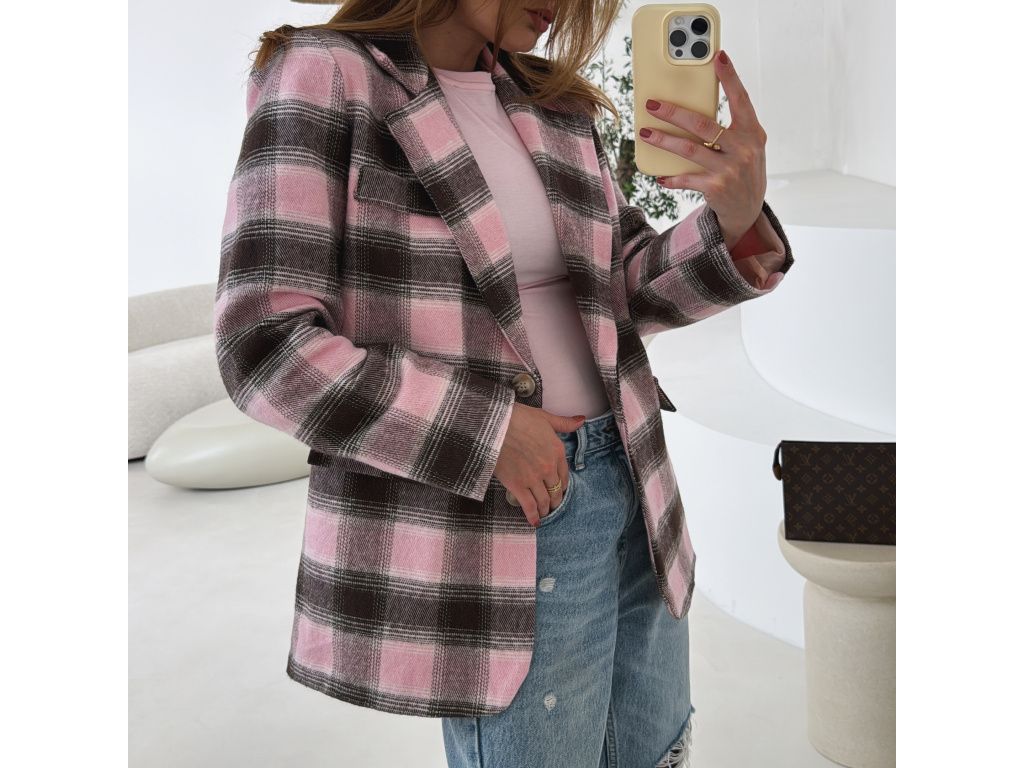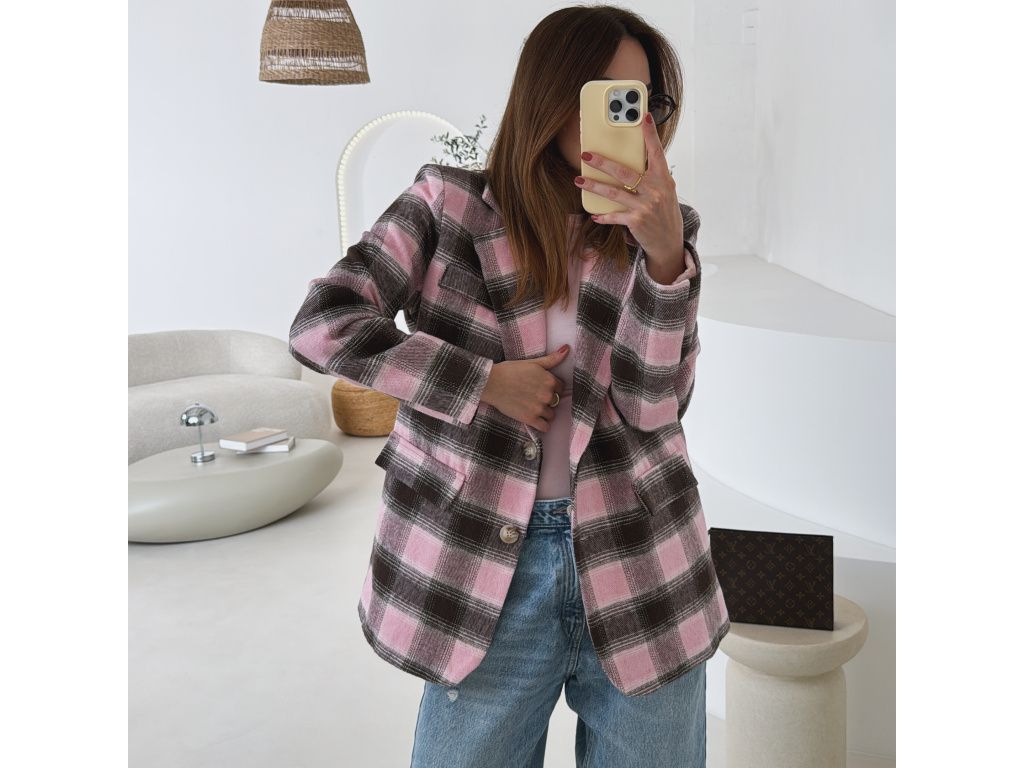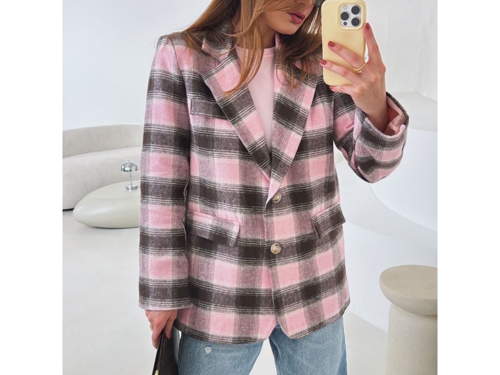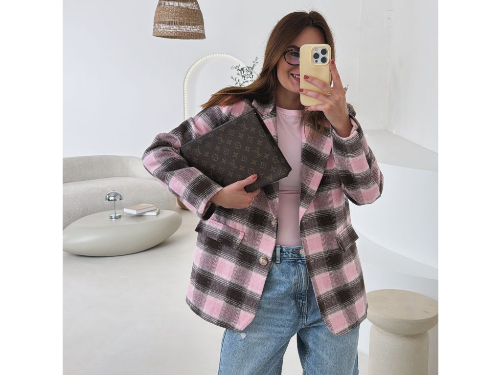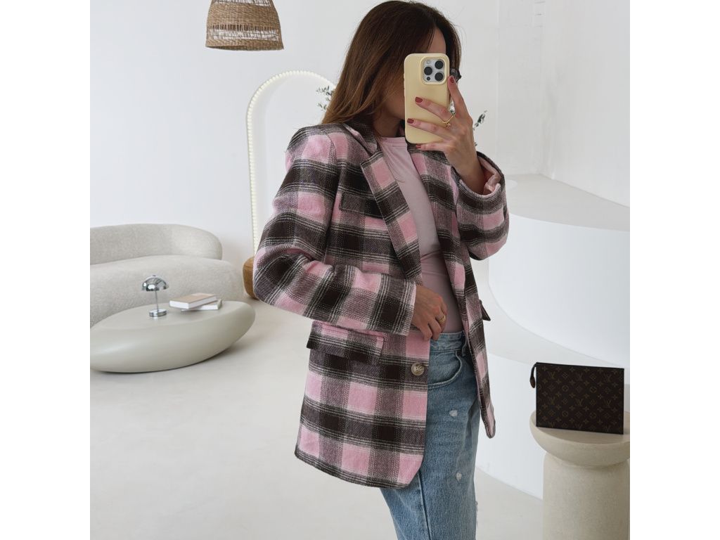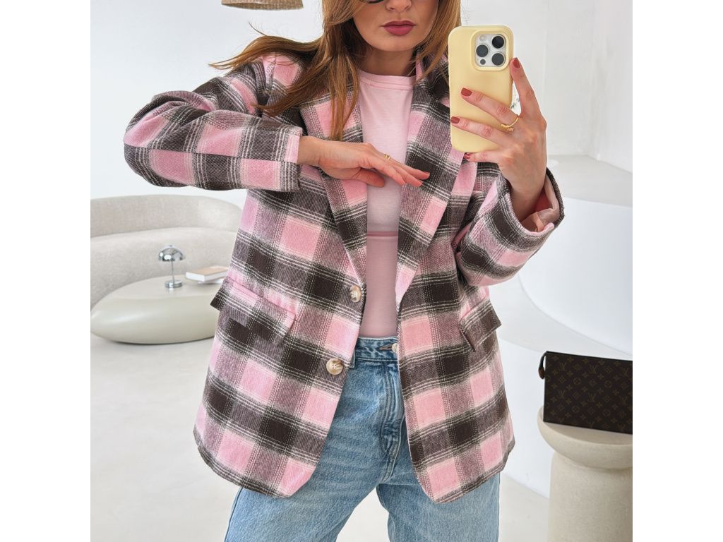 Stylové oversize sako v originální barevné kombinaci, které oživí každý outfit. Má pevnější, kvalitní materiál s podšívkou, díky čemuž krásně drží tvar a působí opravdu luxusně. Vystužená ramena dodávají postavě strukturu a moderní siluetu, zatímco volnější střih zajišťuje pohodlí i snadné vrstvení. Zapínání na knoflíky a výrazný kostkovaný vzor dělají z tohoto saka nepřehlédnutelný kousek.