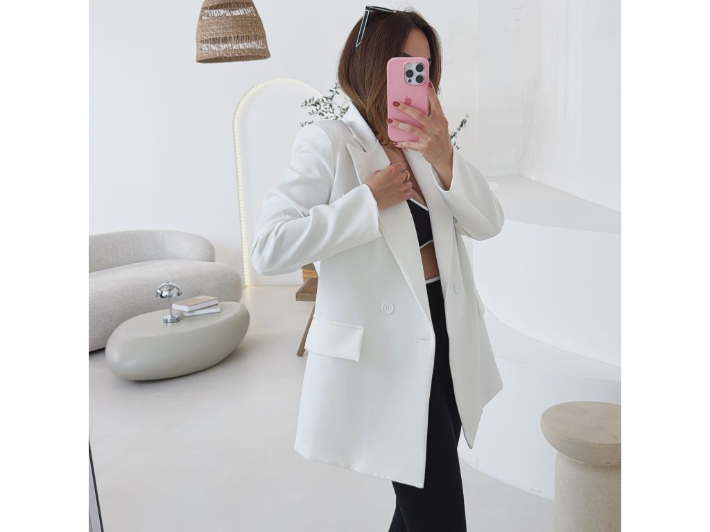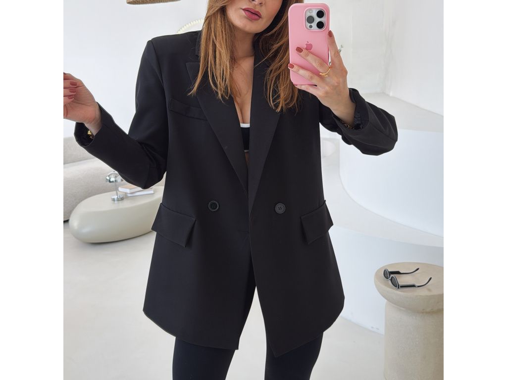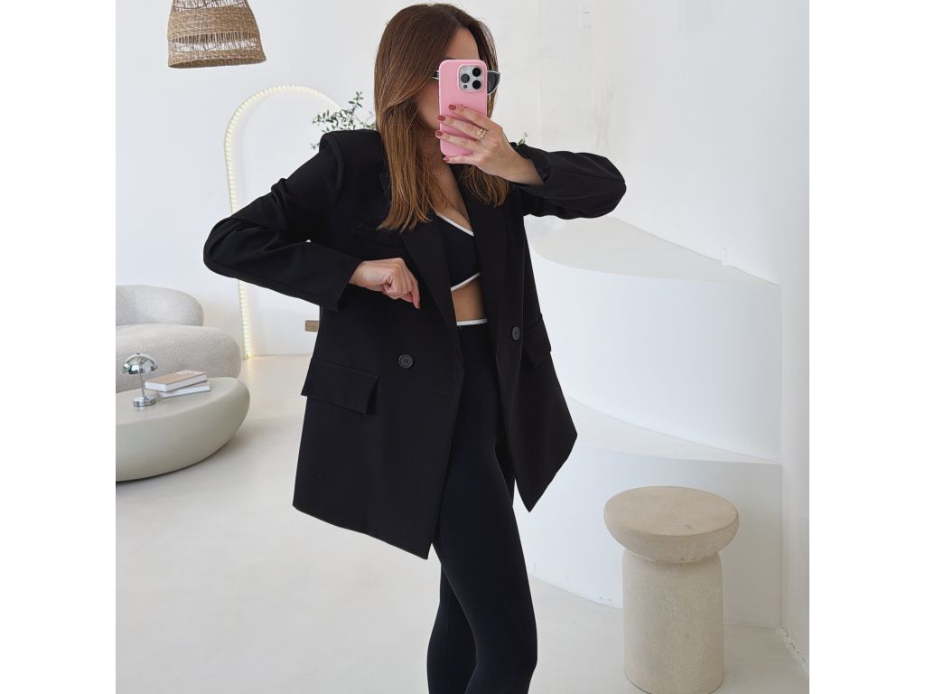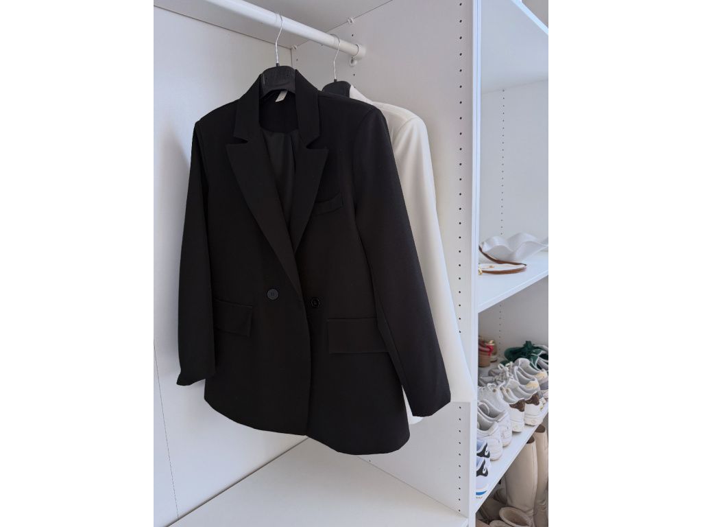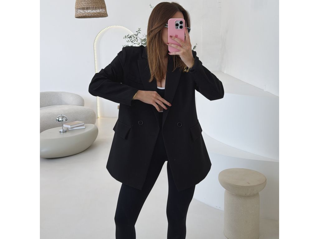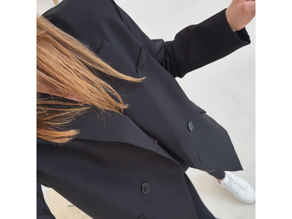 Elegantní sako v klasickém střihu s moderním oversized nádechem. Díky vystuženým ramenům krásně tvaruje siluetu a dodává outfitu šmrnc. Dvouřadé zapínání podtrhuje nadčasový vzhled a dělá z něj ideální kousek jak k džínám, tak i elegantnějším outfitům.
