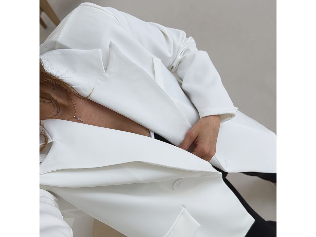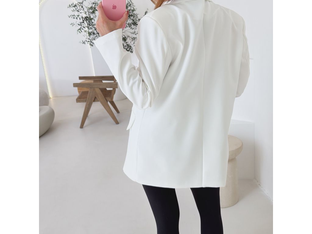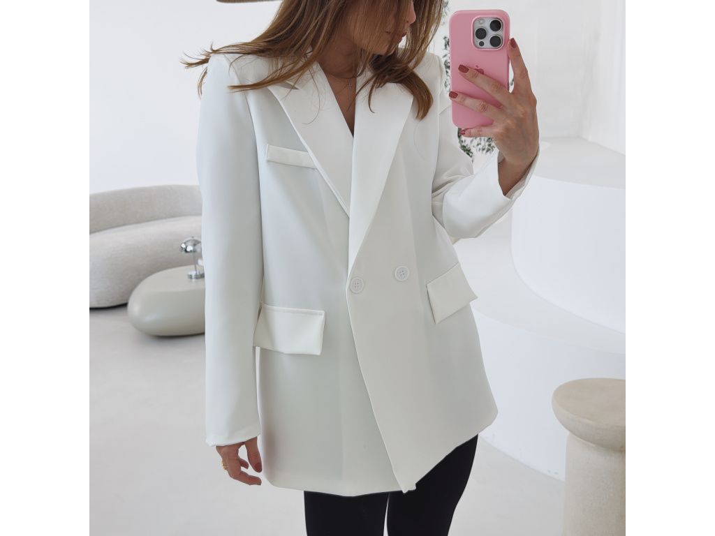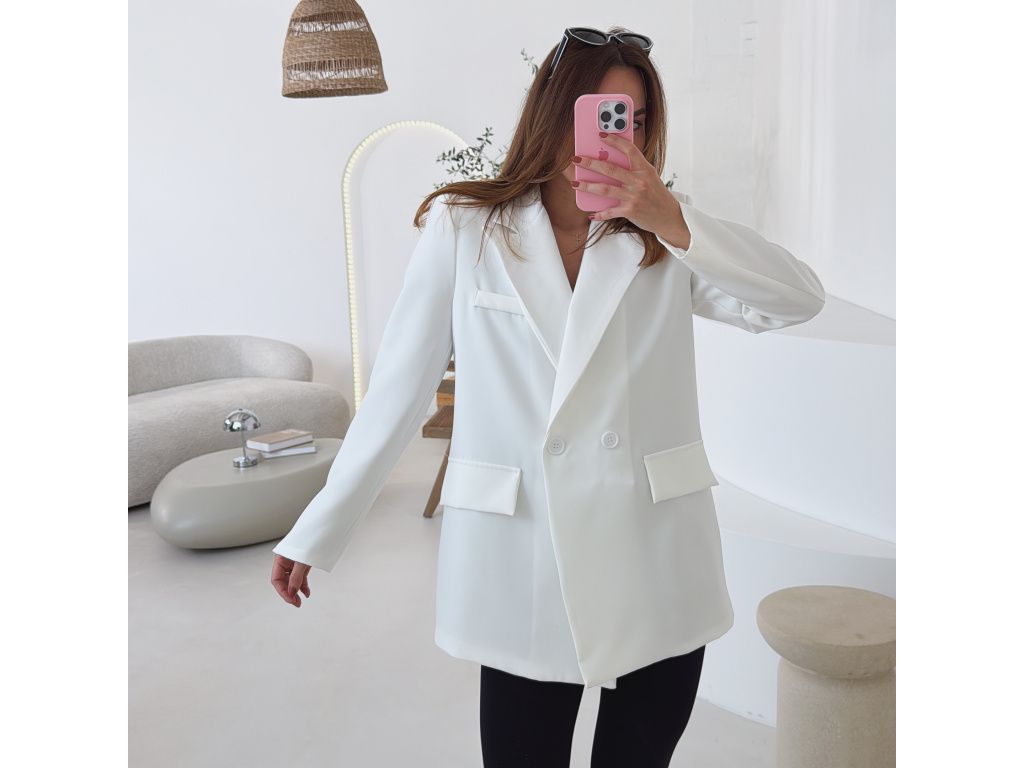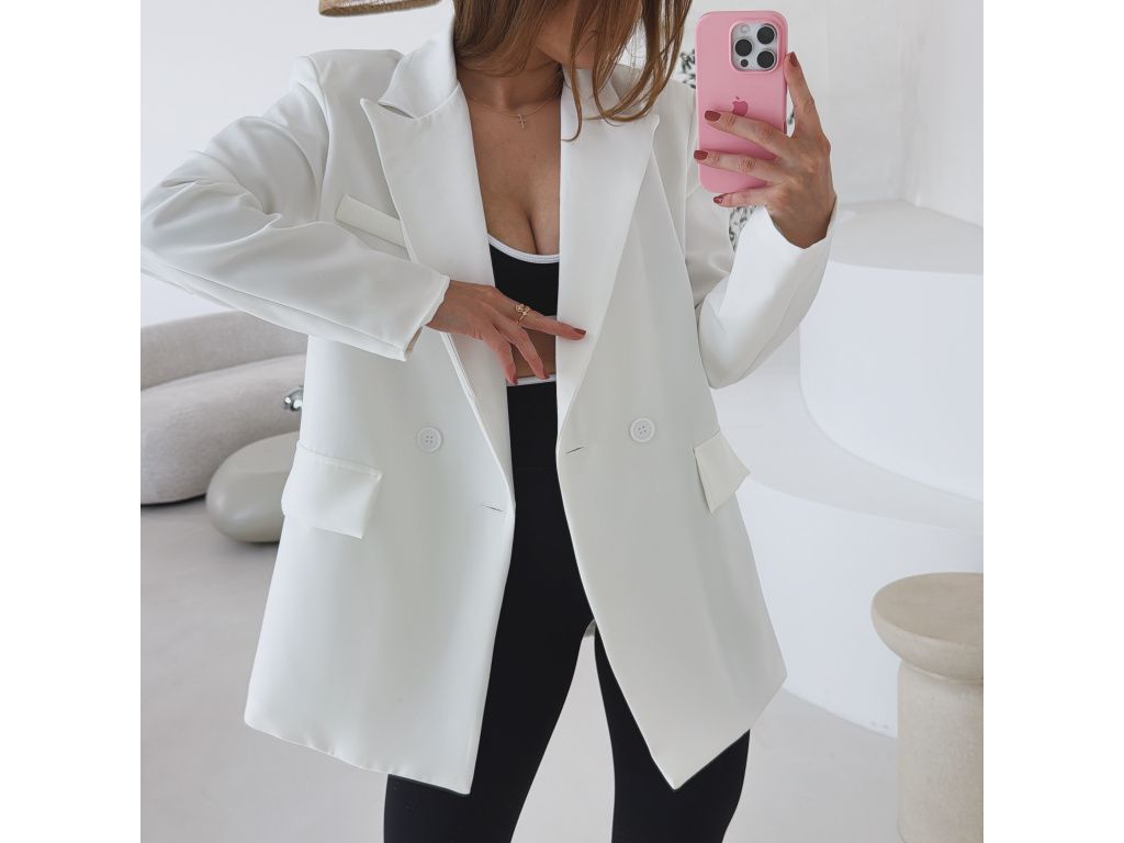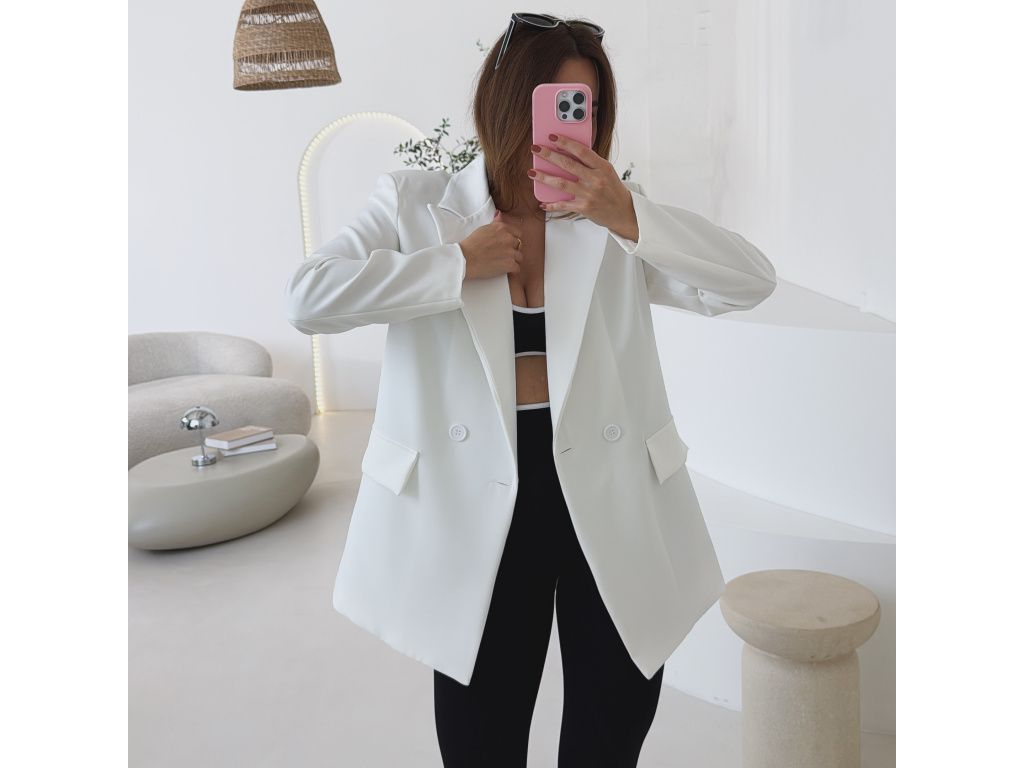 Elegantní sako v klasickém střihu s moderním oversized nádechem. Díky vystuženým ramenům krásně tvaruje siluetu a dodává outfitu šmrnc. Dvouřadé zapínání podtrhuje nadčasový vzhled a dělá z něj ideální kousek jak k džínám, tak i elegantnějším outfitům.