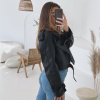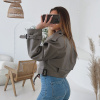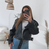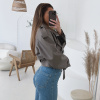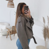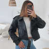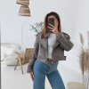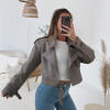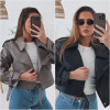 Stylová koženková bunda v moderním střihu, která dodá každému outfitu sebevědomý a elegantní vzhled. Je dostupná v taupe a černé barvě s kontrastními černými detaily. Díky vyztuženým ramenům, velkým klopám a ochrannému štítu působí luxusně a nadčasově. Praktické zapínání doplňují nastavitelné pásky na rukávech i v pase, které krásně tvarují siluetu.