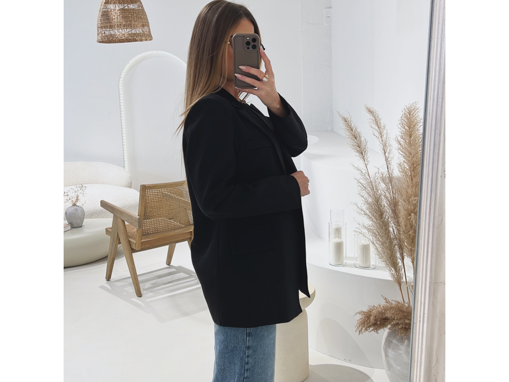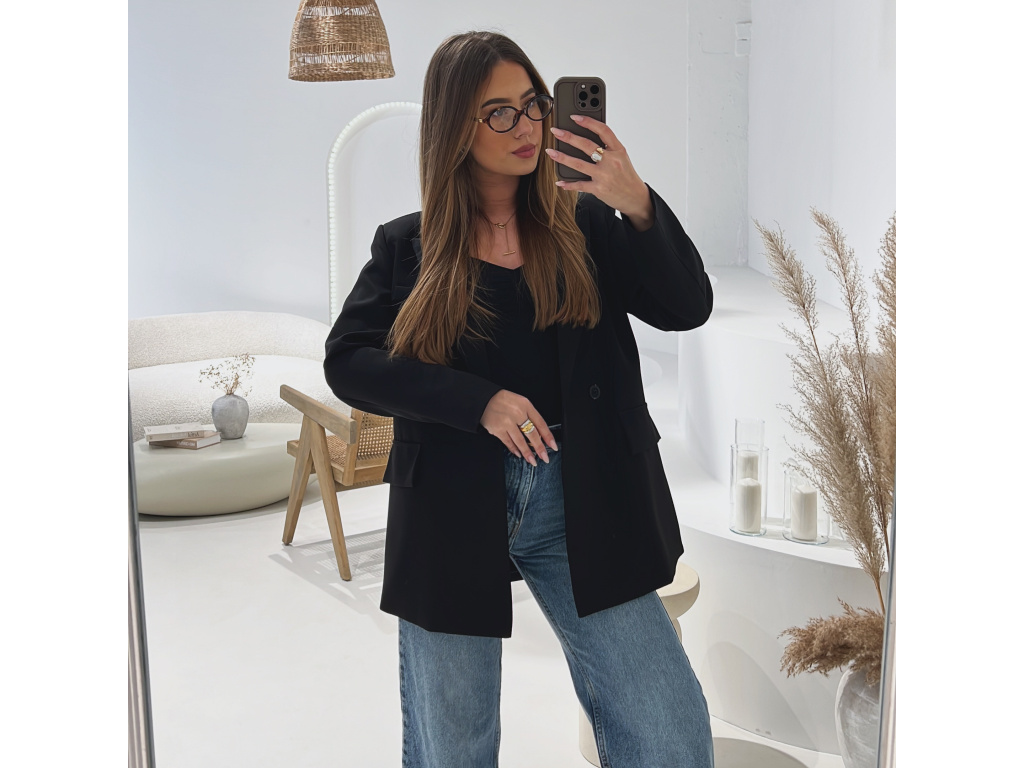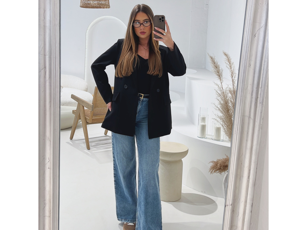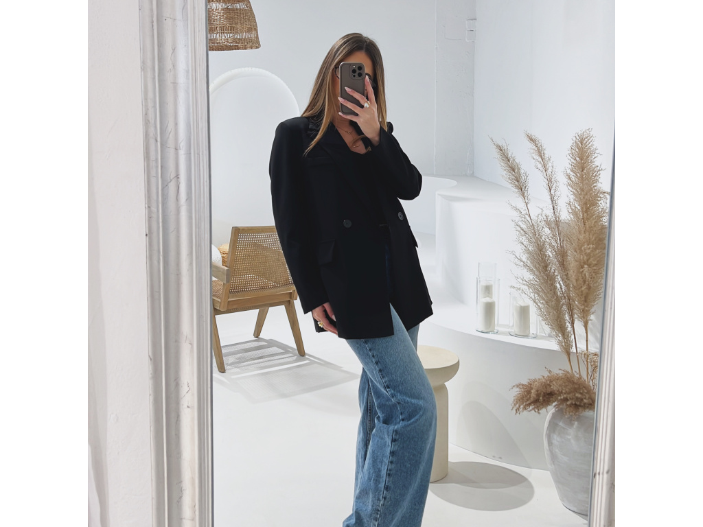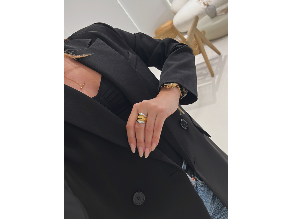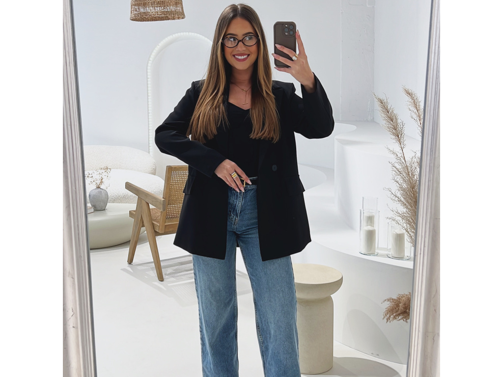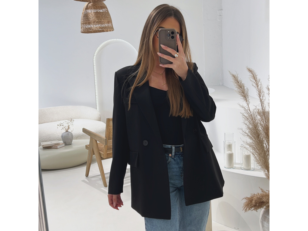 Stylové oversize sako v hnědé a černé barvě je dokonalým kouskem pro moderní, sebevědomý outfit. Má vystužená ramena, která vytvářejí krásnou siluetu, a příjemnou počívku, díky níž skvěle sedí a drží tvar. Dvouřadé zapínání na knoflíky dodává saku nadčasový vzhled, zatímco falešné kapsy podtrhují jeho čistou, elegantní linii. Perfektní volba ke kalhotám, džínám i šatům.