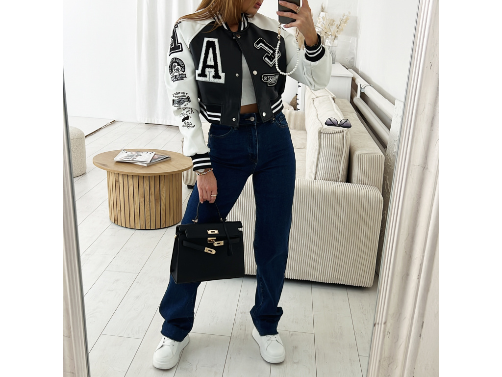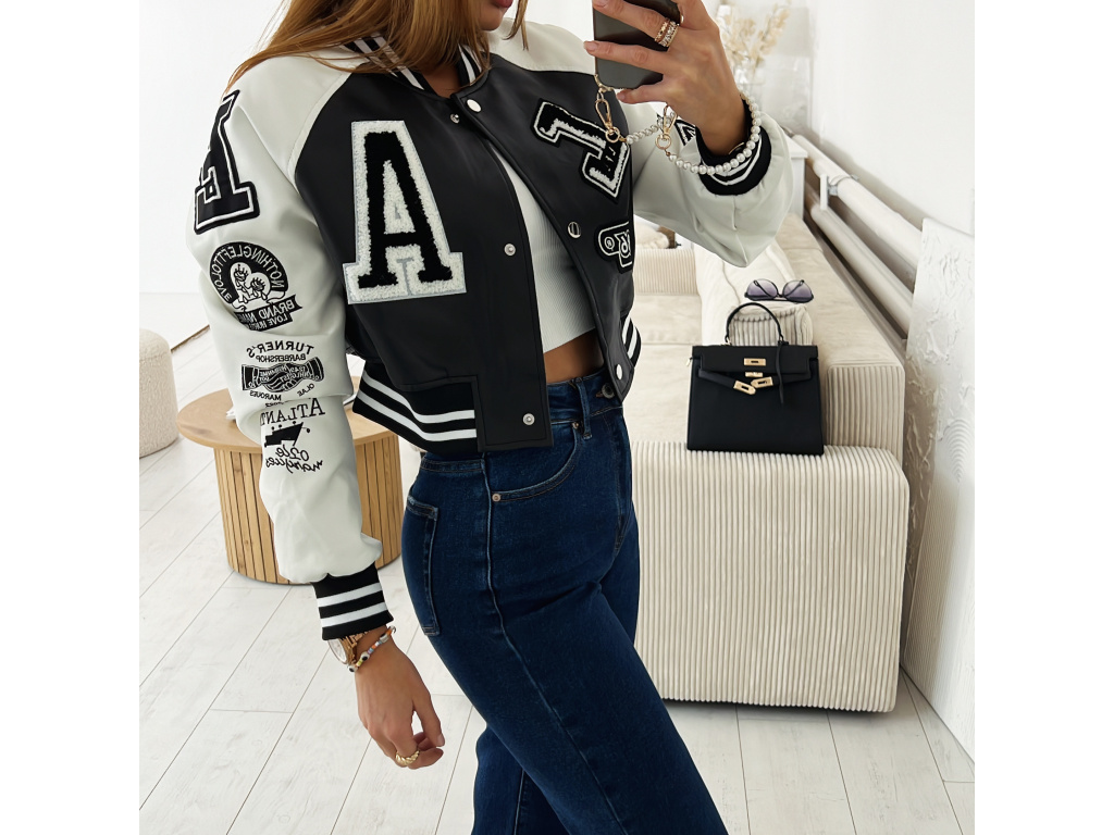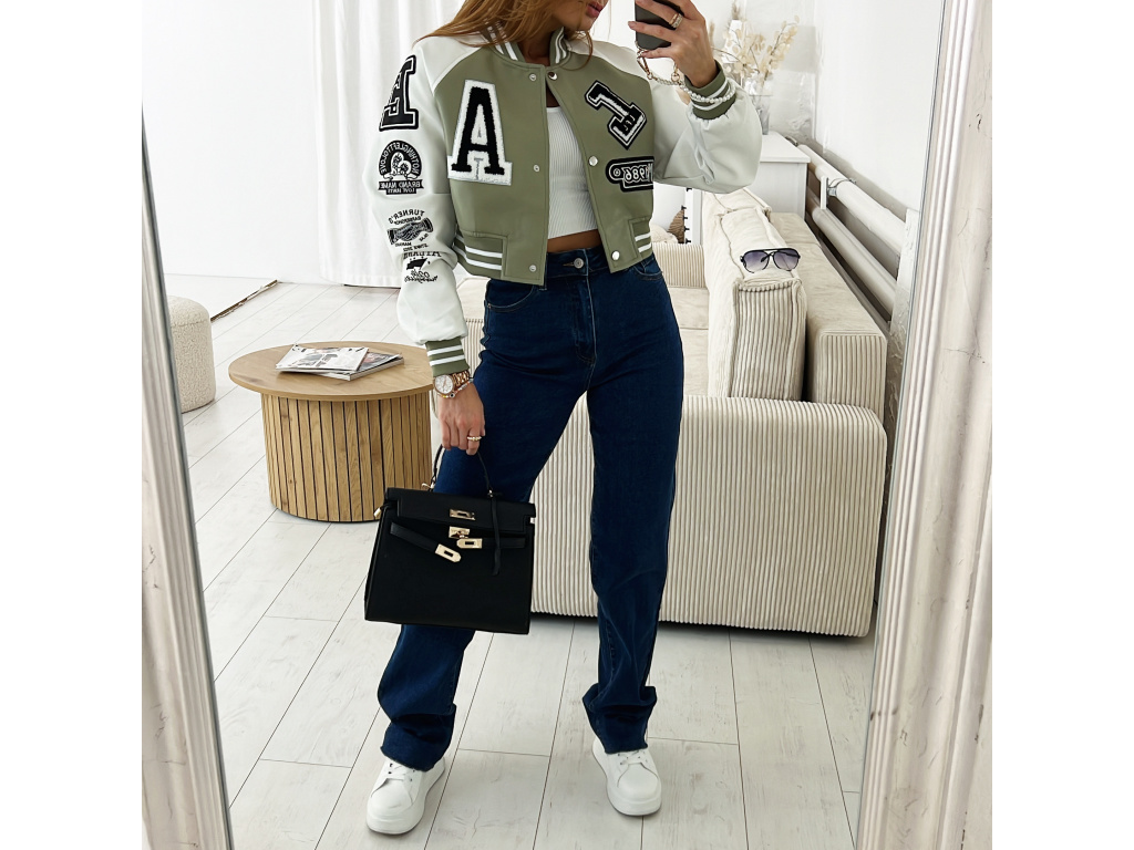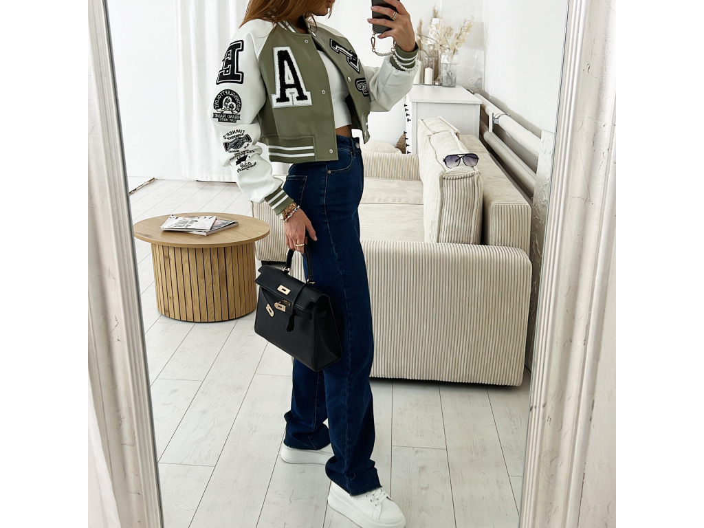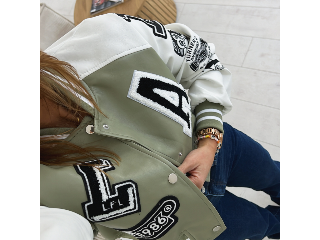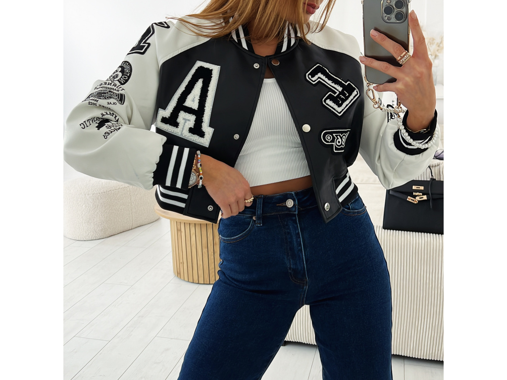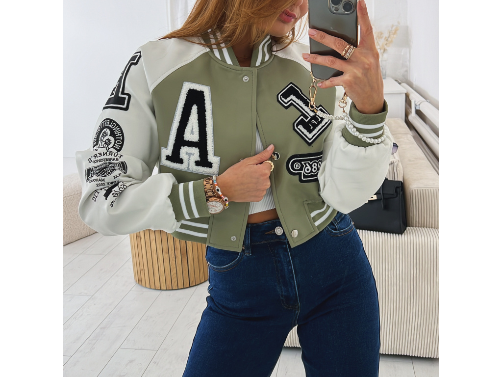 Stylová bomber bunda z eko kůže v černé a khaki barvě s nášivkami. Bomber bunda má podšívku a stříbrné detaily na zapínání. Velikost je S, M a L, sedí o číslo méně (S na XS, M na S a L na M). Velikost S je focena na XSKu a výšce 165 cm.