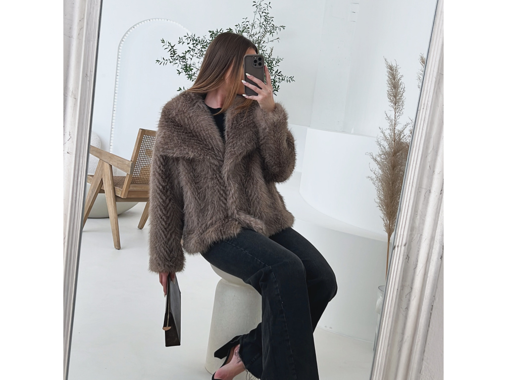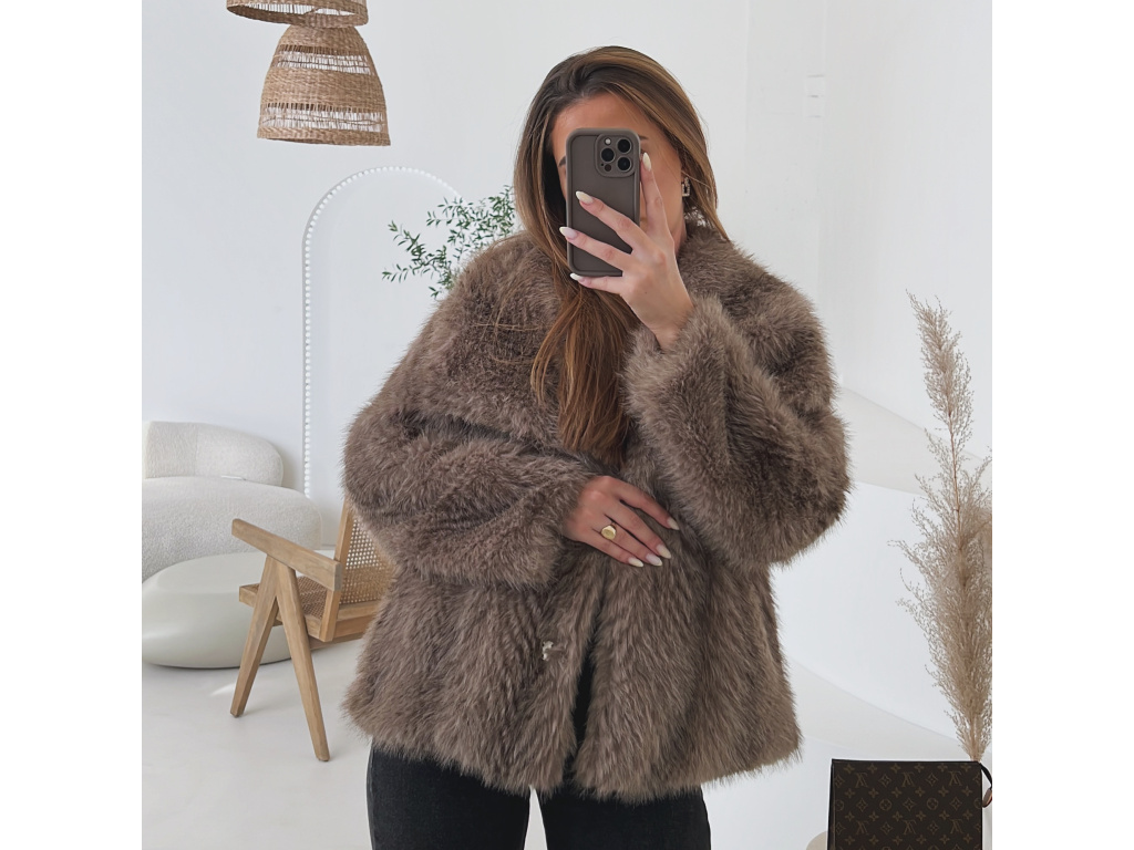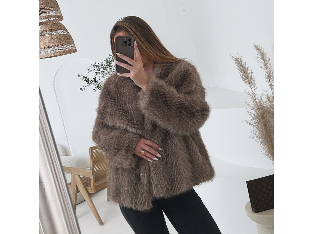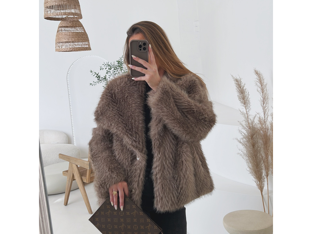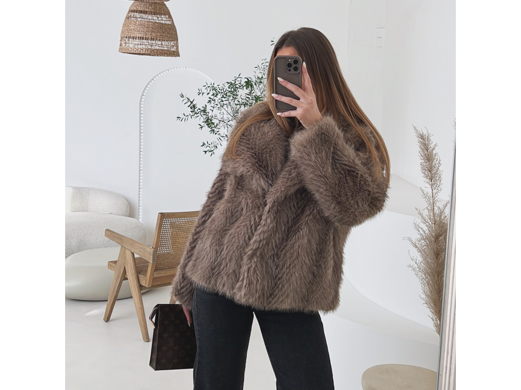 Elegantní hřejivý kožíšek s hebkým vlasem a velkým límcem, který působí luxusně a zároveň je velmi příjemný na nošení. Uvnitř je podšitý podšívkou pro ještě větší komfort. Díky nadčasovému střihu ho snadno sladíte s elegantními kalhotami i šaty. Velikost je S/M a M/L.