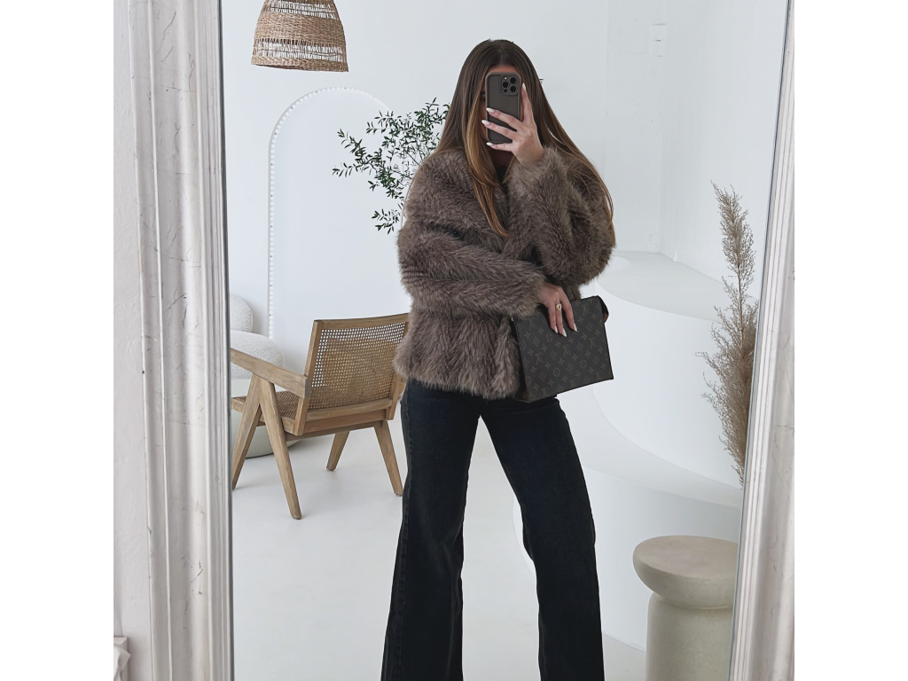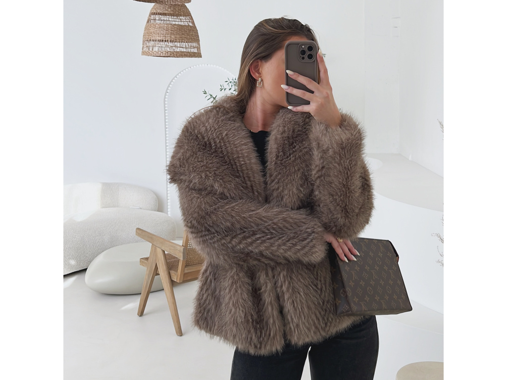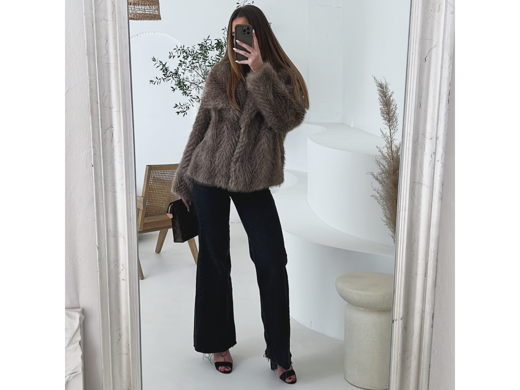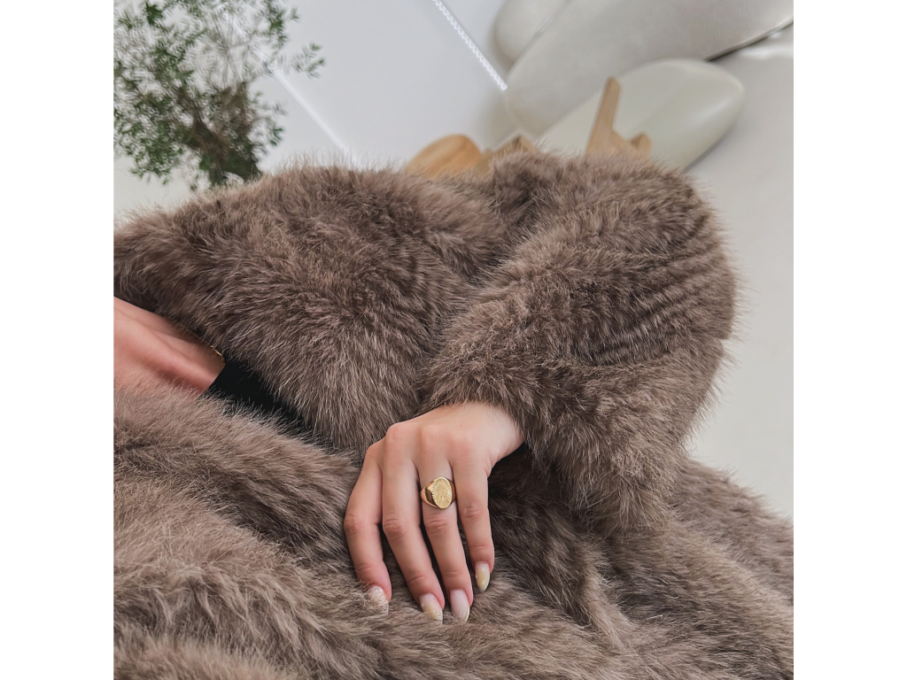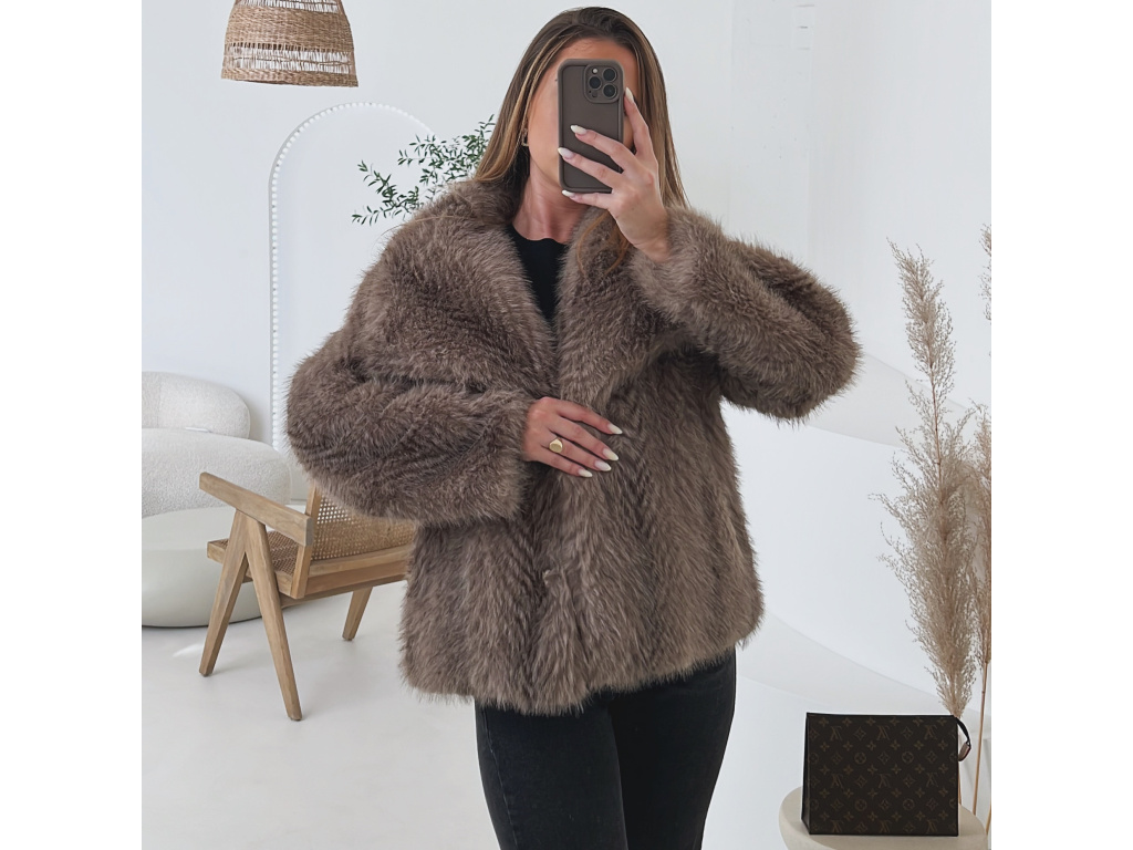 Elegantní hřejivý kožíšek s hebkým vlasem a velkým límcem, který působí luxusně a zároveň je velmi příjemný na nošení. Uvnitř je podšitý podšívkou pro ještě větší komfort. Díky nadčasovému střihu ho snadno sladíte s elegantními kalhotami i šaty. Velikost je S/M a M/L.
