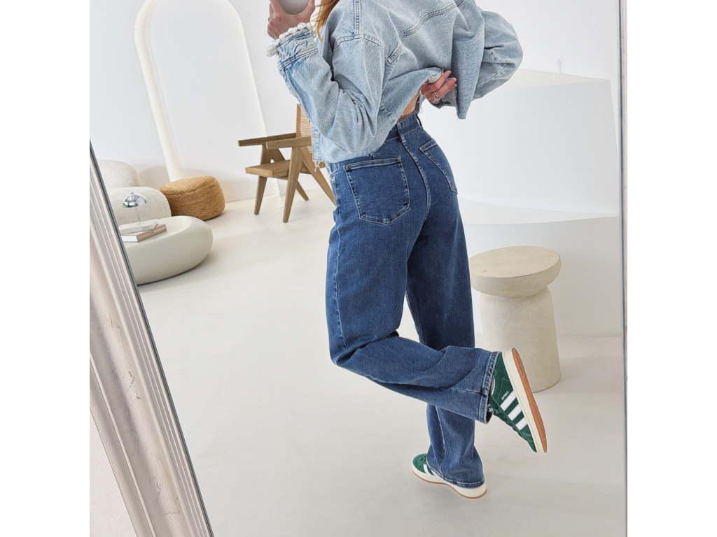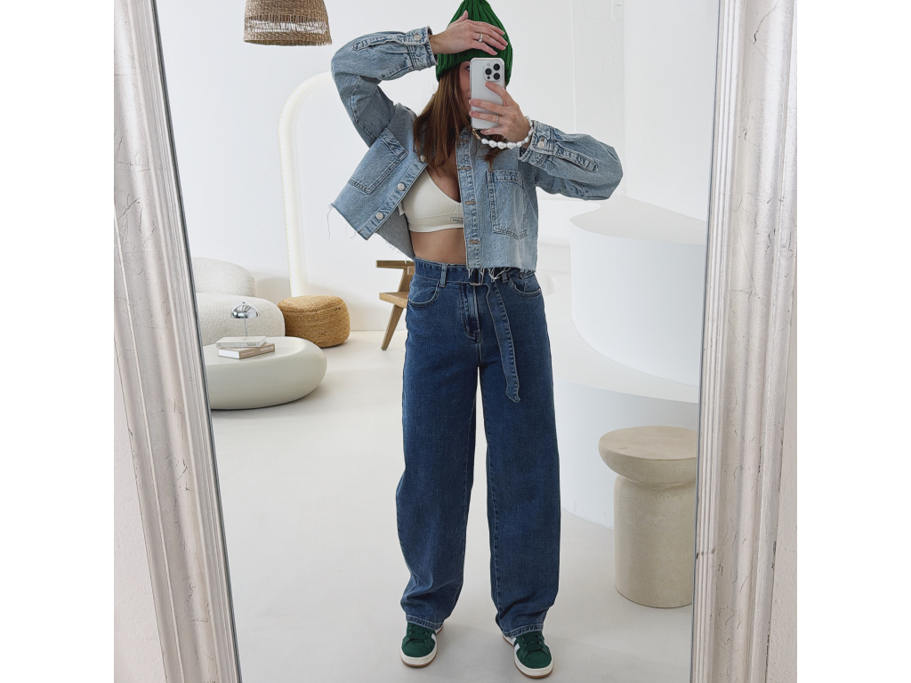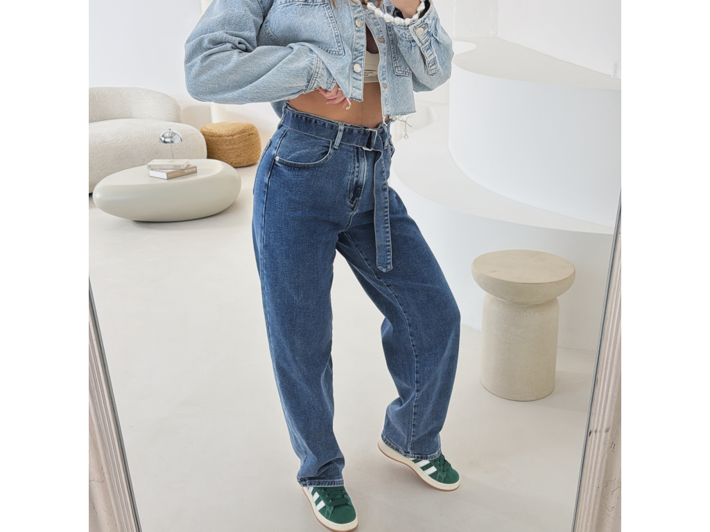 Baggy džíny jsou pohodlné, stylové a perfektně padnoucí. Mají vysoký pas a součástí je pásek, který můžete nosit nebo jednoduše sundat podle outfitu. Jsou ušité z jemného elastického denimu, díky kterému jsou maximálně pohodlné po celý den. Dostupné ve velikostech XS až XL.