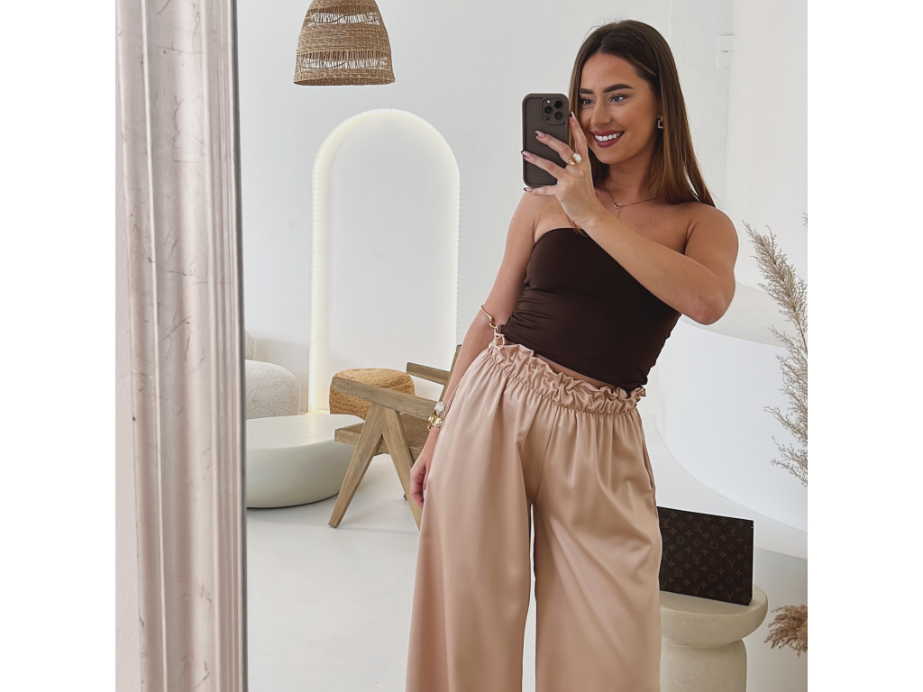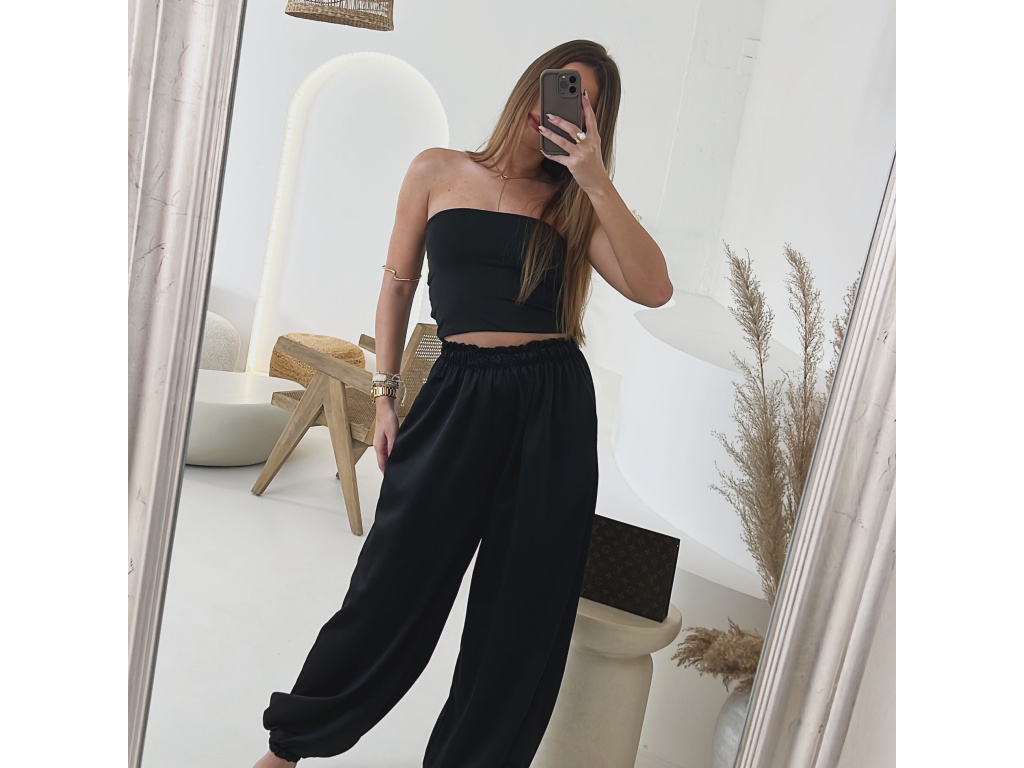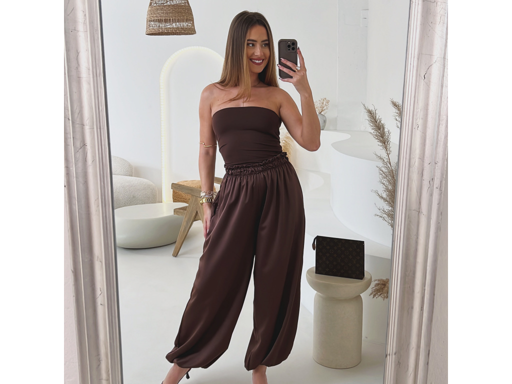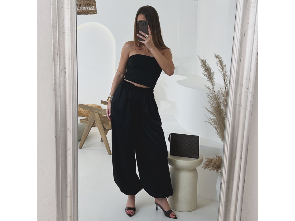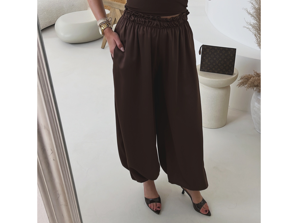 Stylové a pohodlné balonové kalhoty z jemného saténového materiálu, které zaujmou svým originálním střihem. V pase mají elastický pás, díky kterému se krásně přizpůsobí postavě, a do gumy jsou zakončeny také v dolním kraji. Působí elegantně, ale zároveň uvolněně – perfektní volba jak na každodenní nošení, tak i na večerní outfit. Dostupné v několika barvách. Mají kapsy.