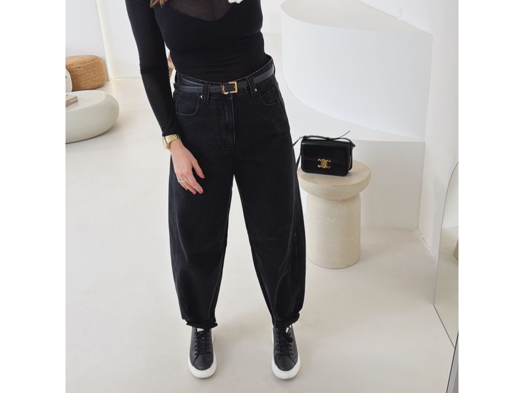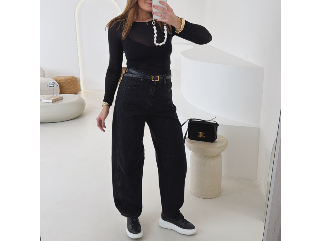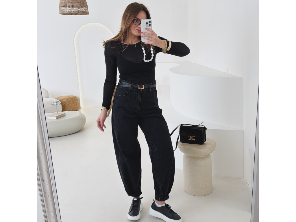 Trendy barrel džíny v bílé barvě z pevnějšího denimového materiálu, který krásně drží tvar. Střih jemně kopíruje siluetu a díky promyšleně posazeným kapsám vytváří lichotivý efekt i zezadu. Moderní tvar nohavic dodá outfitu šmrnc a originalitu. Dostupné ve velikostech XS–XL. Na webu je najdete také v modré a bílé variantě. Must-have kousek této sezóny.