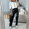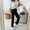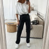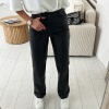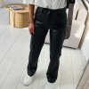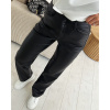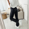 Stylové černé kalhoty širšího střihu do pasu z eko kůže s leskem. Velikost XS, S, M, L a XL. Kalhoty nejsou z velice elastického materiálu. Dělají hezké pozadí a jsou pohodlné na nošení. Z rubní strany mají malý chloupek. Velikost XS je focena na velikosti XS a výšce 165 cm.