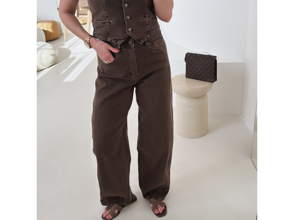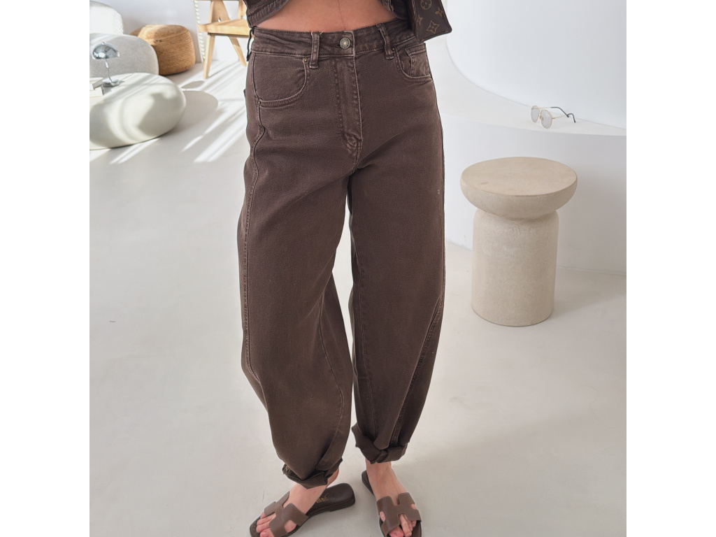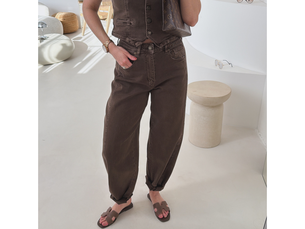 Hnědé barrel džíny Soris