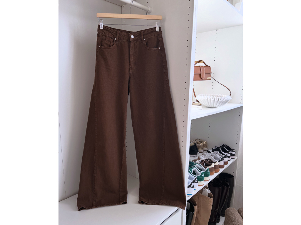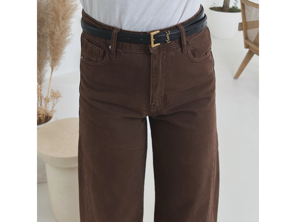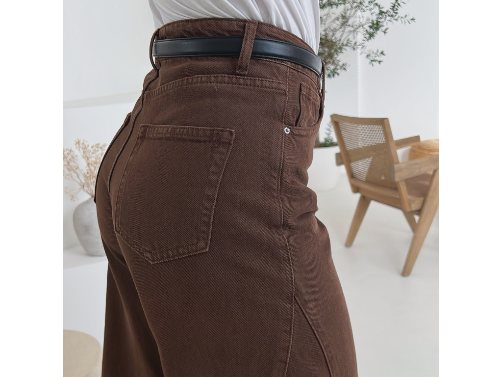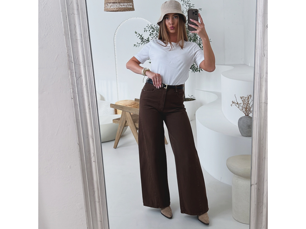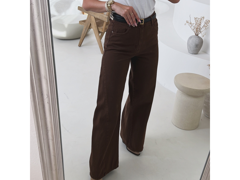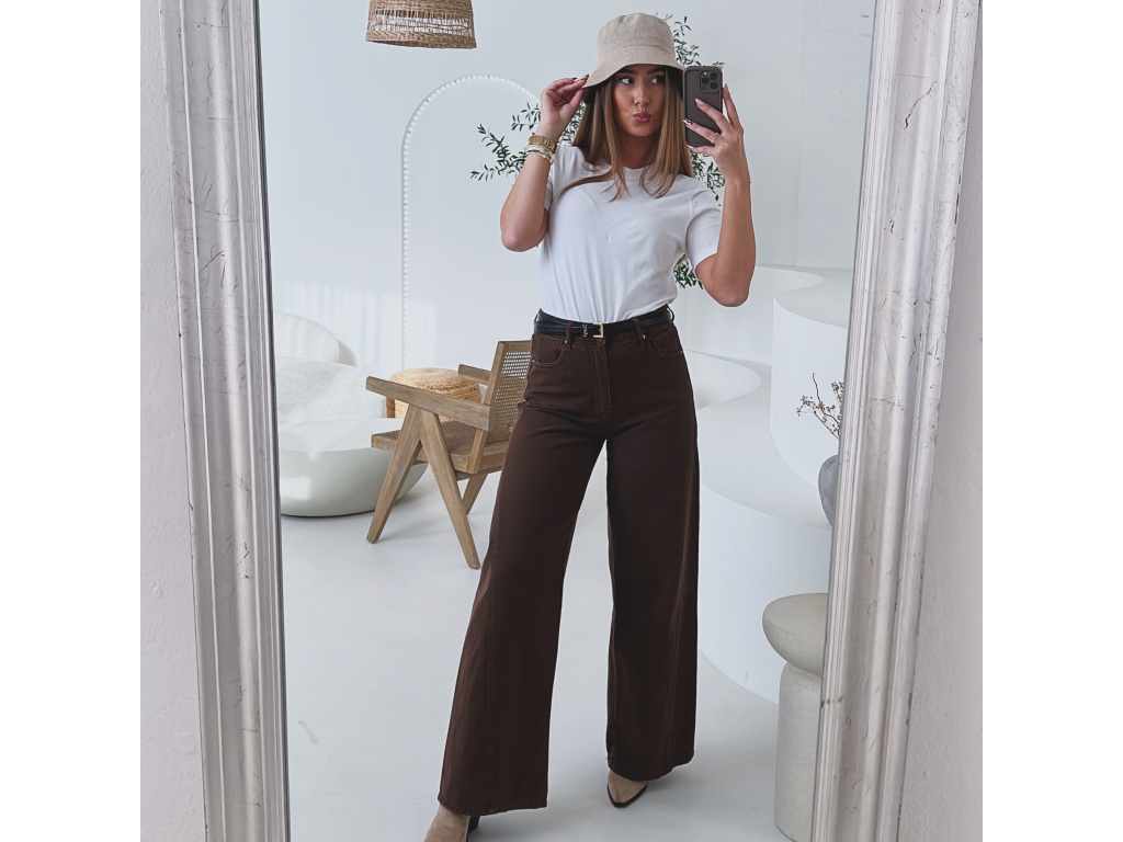 Elegantní hnědé kalhoty s rovnějším volnějším střihem, který krásně prodlouží siluetu a působí ležérně chic. Kalhoty jsou ušité z pevnějšího, neelastického materiálu, který drží tvar a působí luxusně. Vysoký pas a klasické kapsy zajišťují pohodlné nošení i praktické využití. Skvěle se hodí k tričku, halence i saku.