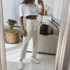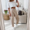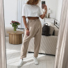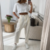 Velice pohodlné, stylové kalhoty se sníženým sedem v krémové, černé, modré a béžové barvě. V pase kalhoty hezky pruží. Zapínají se na knoflíky a uzávěr. Velikost je univerzální, sedí na XS, S a M. Foceno je na XSku a výšce 165 cm.