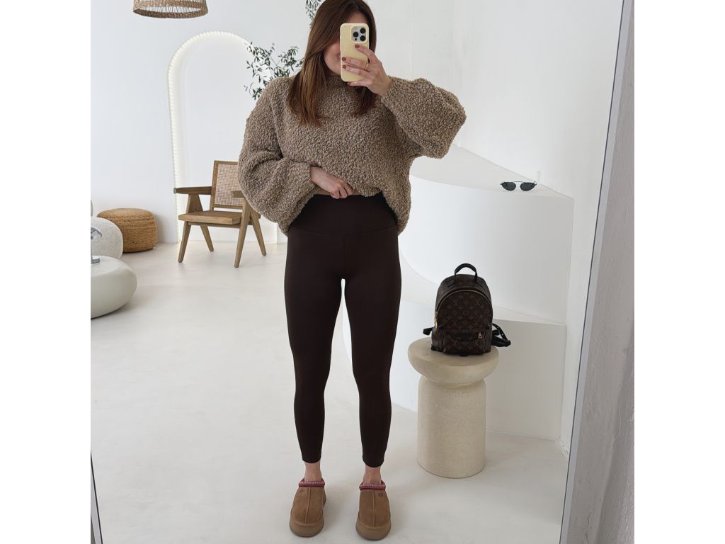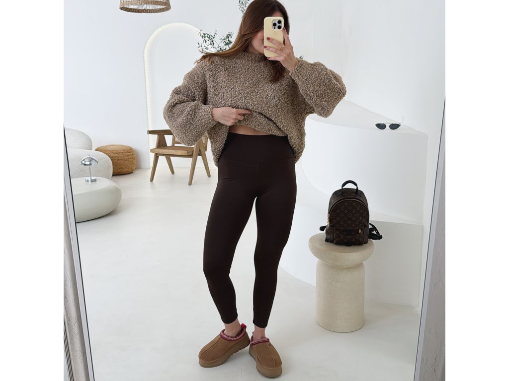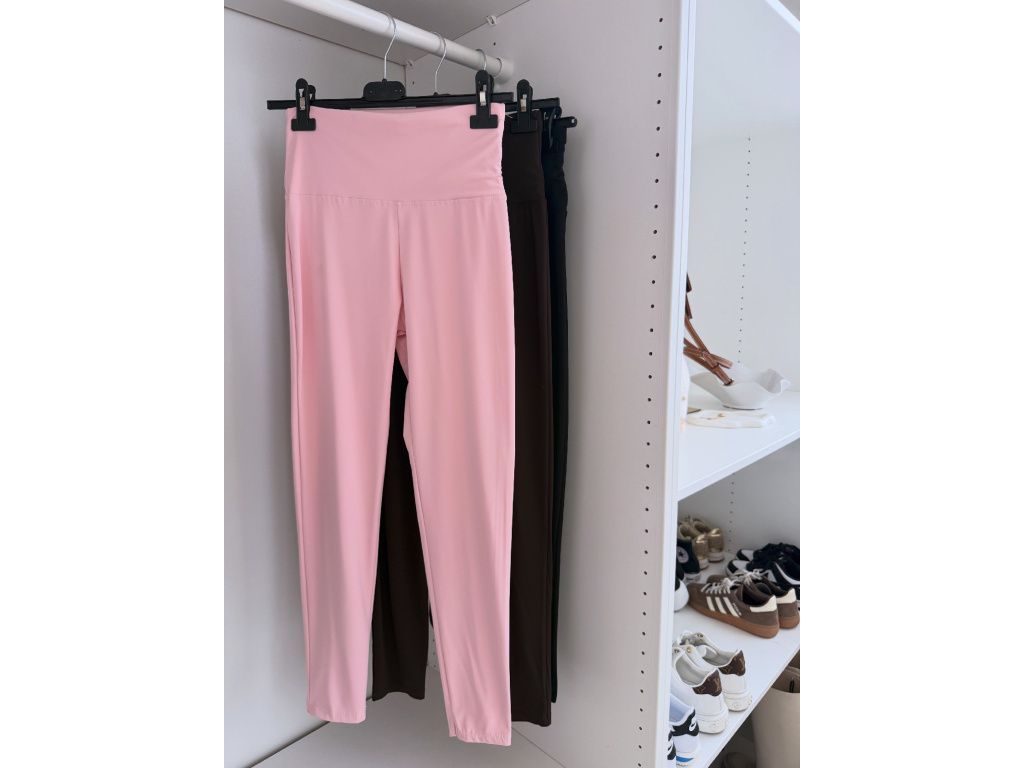 Klasické elastické legíny s vyšším pasem, které krásně sedí na postavě a přizpůsobí se. Materiál je velmi příjemný, hladký a pružný. Legíny mají vysoký pas, který hezky stáhne bříško a drží na místě. Jsou vhodné jak na běžné nošení, tak i na sport nebo cestování. Dostupné ve třech barvách: černá, hnědá a baby pink.