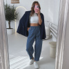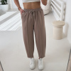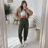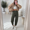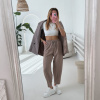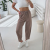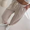 Nádherné, teplákové kalhoty zajímavého střihu s puky v taupe, khaki, modré, béžové, černé a růžové barvě. Tepláky lze nosit na sportovní či elegantní způsob. Velikost je univerzální, sedí na XS, S a M. Foceno je na XSku a výšce 165 cm. Lze je v pase stáhnout. Jsou velice pohodlné na nošení.