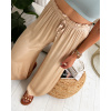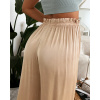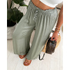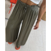 Elegantní, velice příjemné a pohodlné široké a vzdušné kalhoty z viskosového materiálu s jemným leskem. Barva smetanová, camel, khaki, modrá a černá. V pase jsou na gumu, která se hezky natáhne a přizpůsobí postavě. Velikost je univerzální, sedí na XS,S a M. Foceno na XSku a výšce 165 cm.
