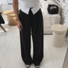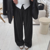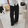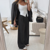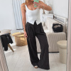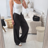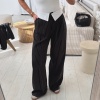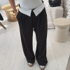 Pohodlné a stylové volné kalhoty se zapínáním na knoflík a uzávěr s bílou manžetou v pase, ideální pro každodenní nošení či společenskou událost dostupné v černé barvě s proužky. Velikost je univerzální, sedí na M,L a XL. Foceno na XSku a výšce 165 cm. Kalhoty na velikosti XS/S budou volnější v pase.