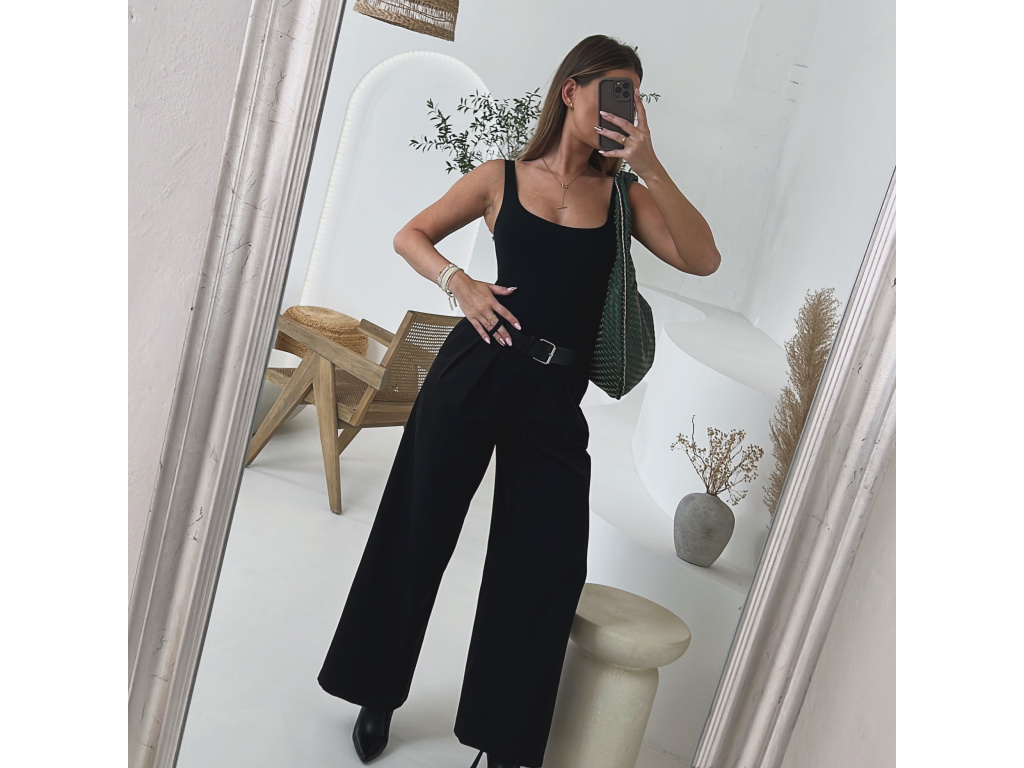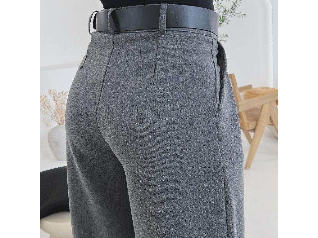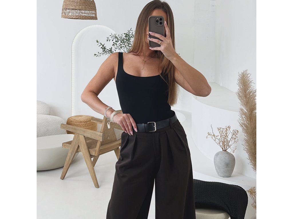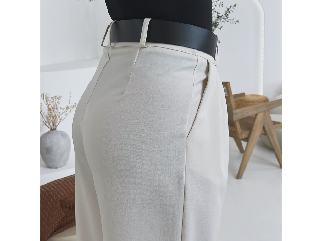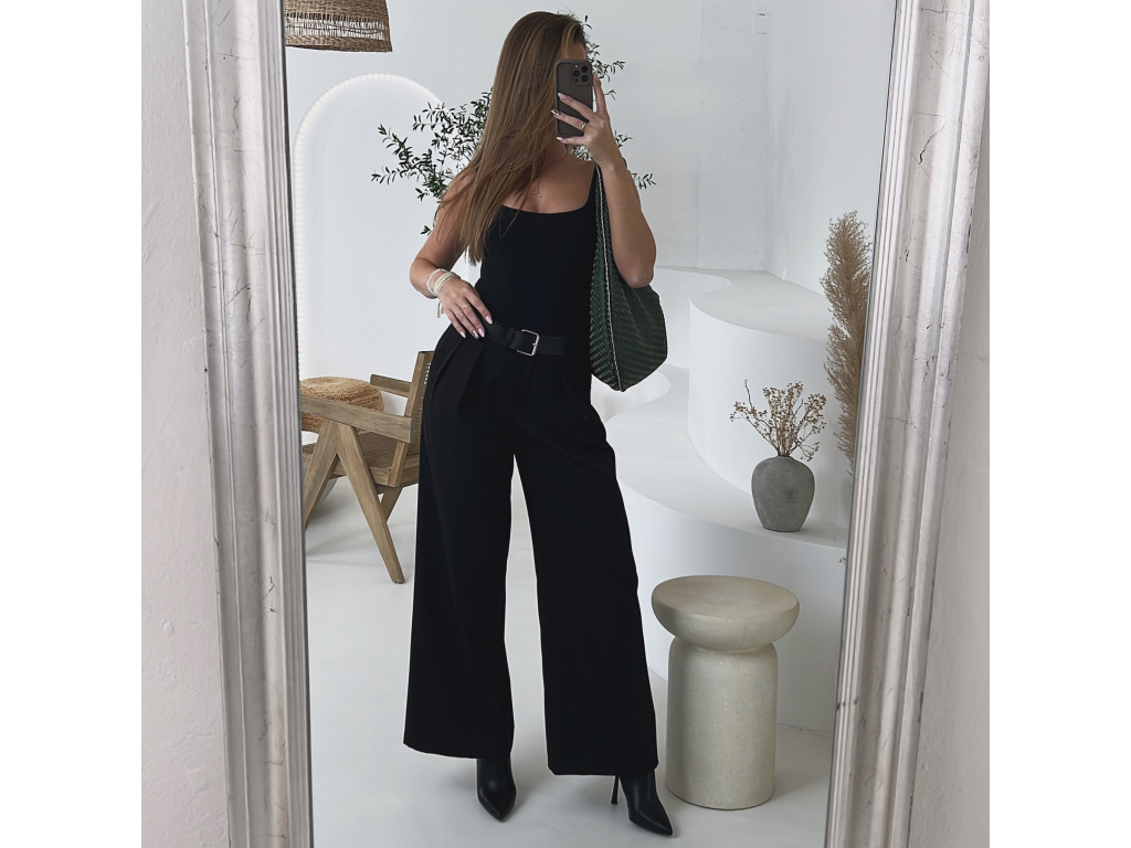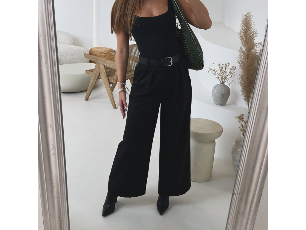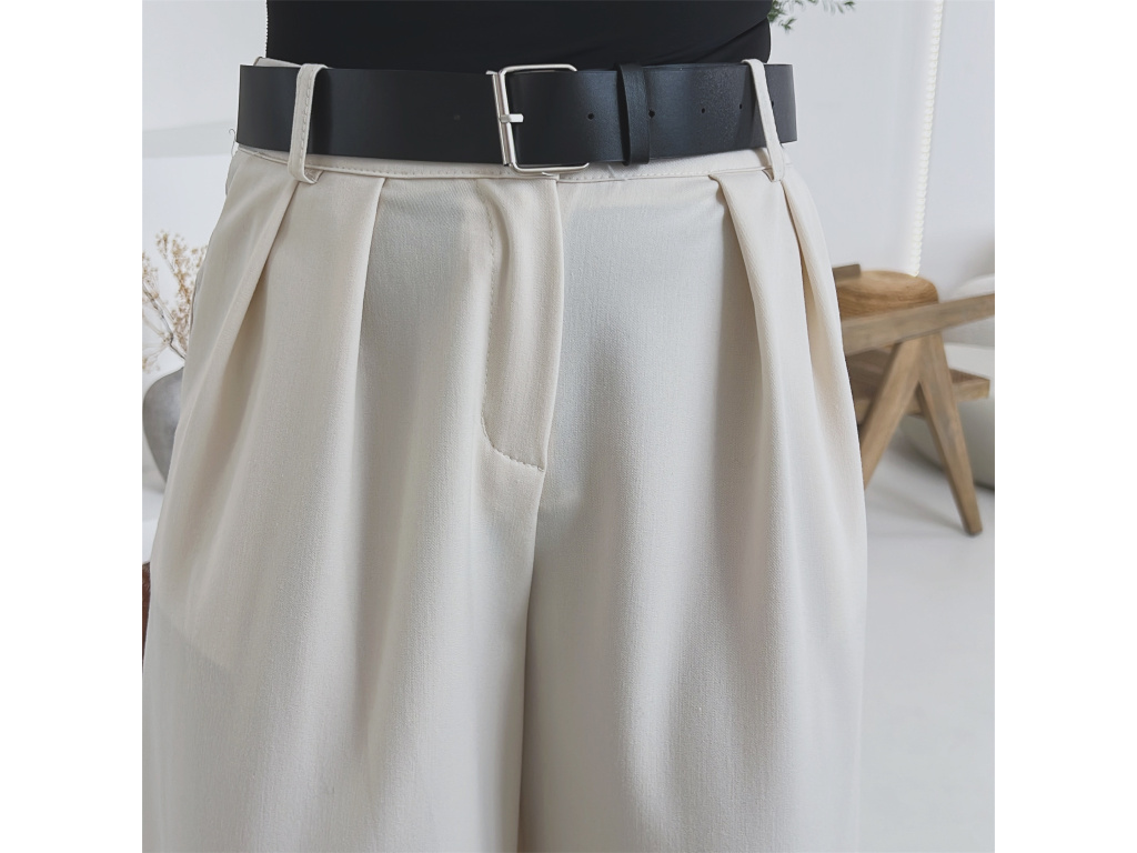 Elegantní a nadčasové široké kalhoty, které spojují styl a pohodlí. Mají klasický střih s vyšším pasem, praktické kapsy a zapínání na knoflík a zip. Součástí je i pásek v černé barvě, který krásně dotvoří celkový look a zvýrazní siluetu. Ideální k business i ležérním outfitům.