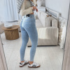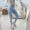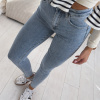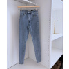 Pohodlné a velice pružné skinny v krásné, světle modré barvě čistého nepotrhaného vzoru. Skinny mají vysoký pas. Velikosti odpovídají běžným velikostem. Velikost XS je focena na XSku a výšce 165 cm.