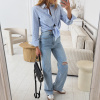 Extra pohodlné a příjemné wide džíny rovného, volnějšího střihu, které se ke konci od kolen rozšiřují. Džíny jsou ve světle modré barvě a mají mírně elastický, měkký materiál. Kalhoty mají hezký střih, vhodný pro ty co nemají rády příliš široké kalhoty. Velikosti odpovídají běžnému číslování. Velikost XS je focena na XSku a výšce 165 cm.