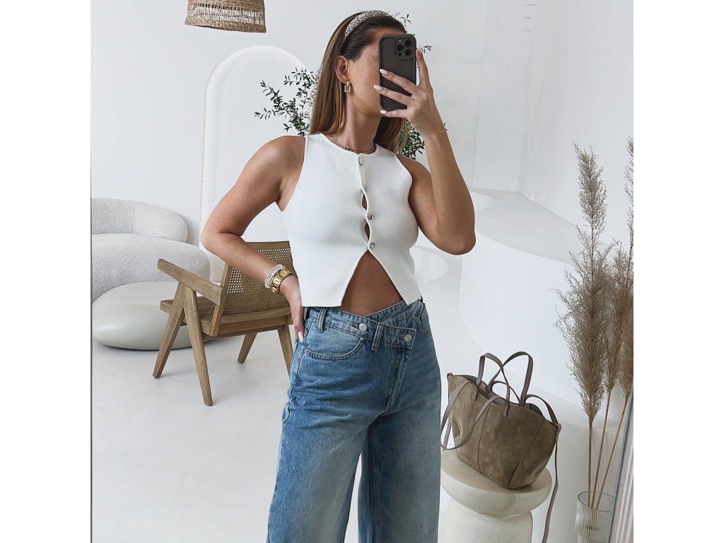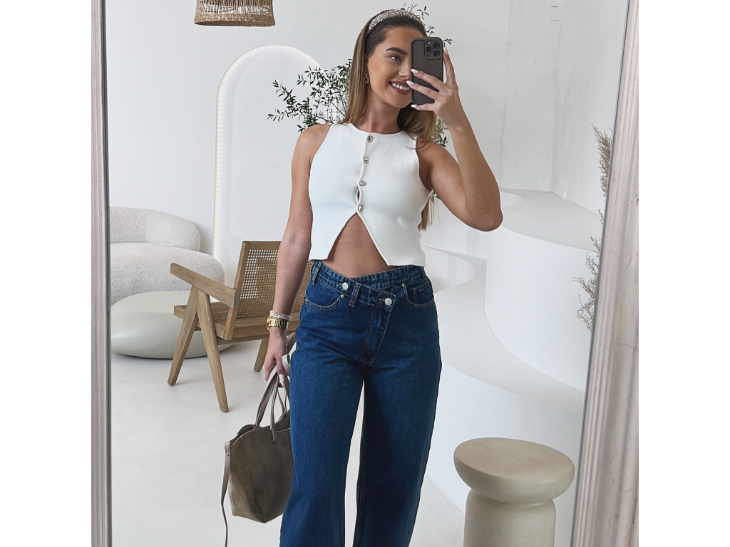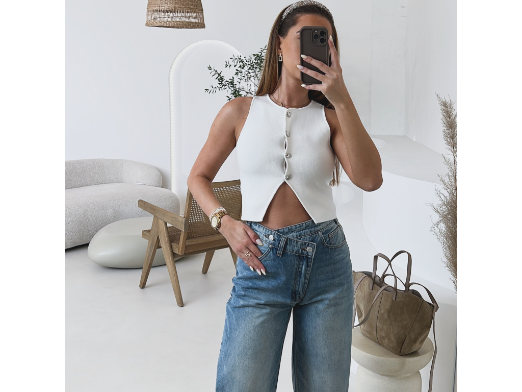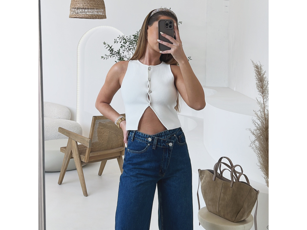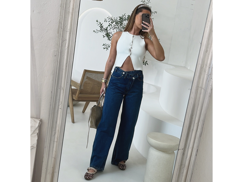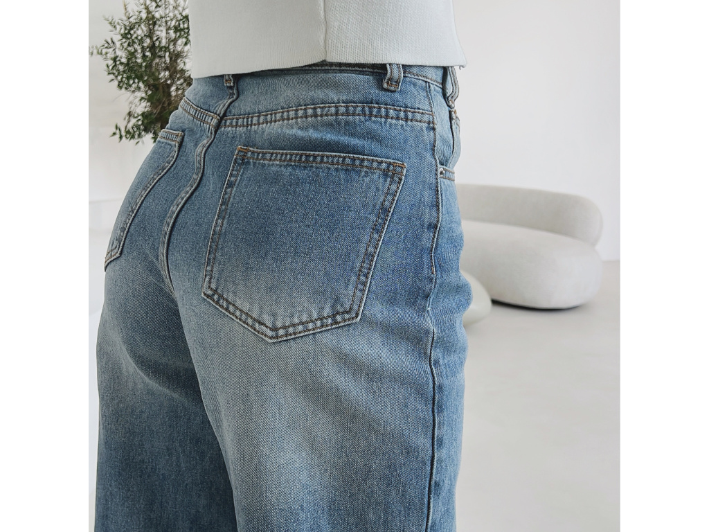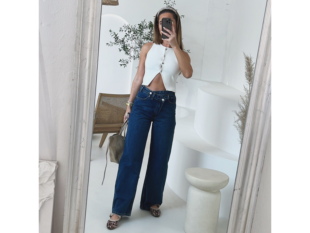 Stylové wide leg džíny s originálním překříženým zapínáním v pase, které dodává klasickému střihu moderní nádech. Kalhoty mají volnější rozšířený střih, klasické kapsy a poutka na pásek. Jsou dostupné ve dvou barevných variantách – světle a tmavě modré, takže je snadno sladíte s různými kousky ve vašem šatníku. Perfektní pro ležérní i elegantnější outfity. Džíny nejsou elastické.
