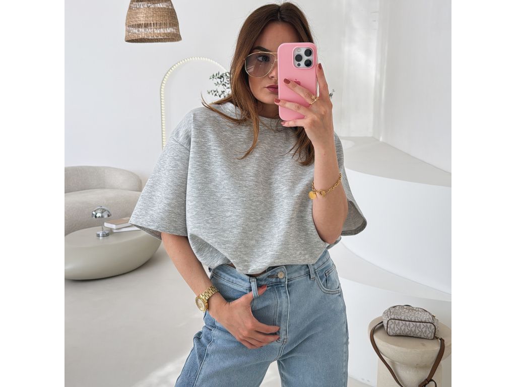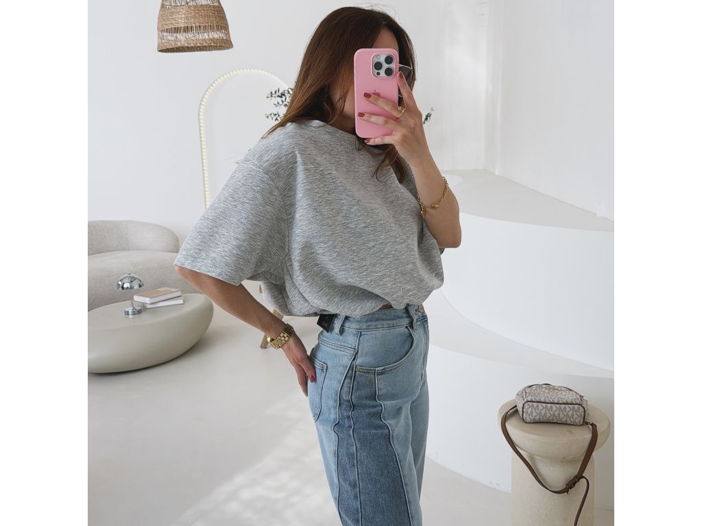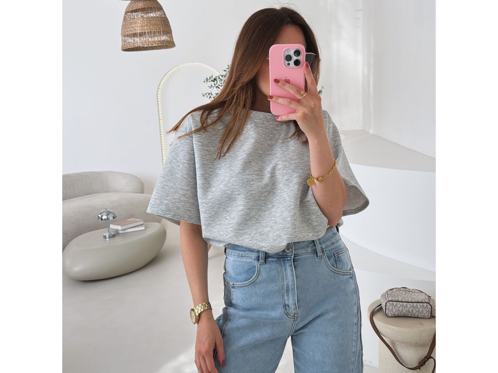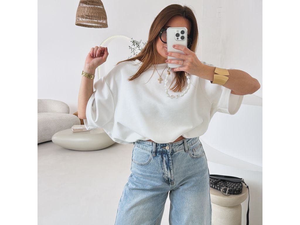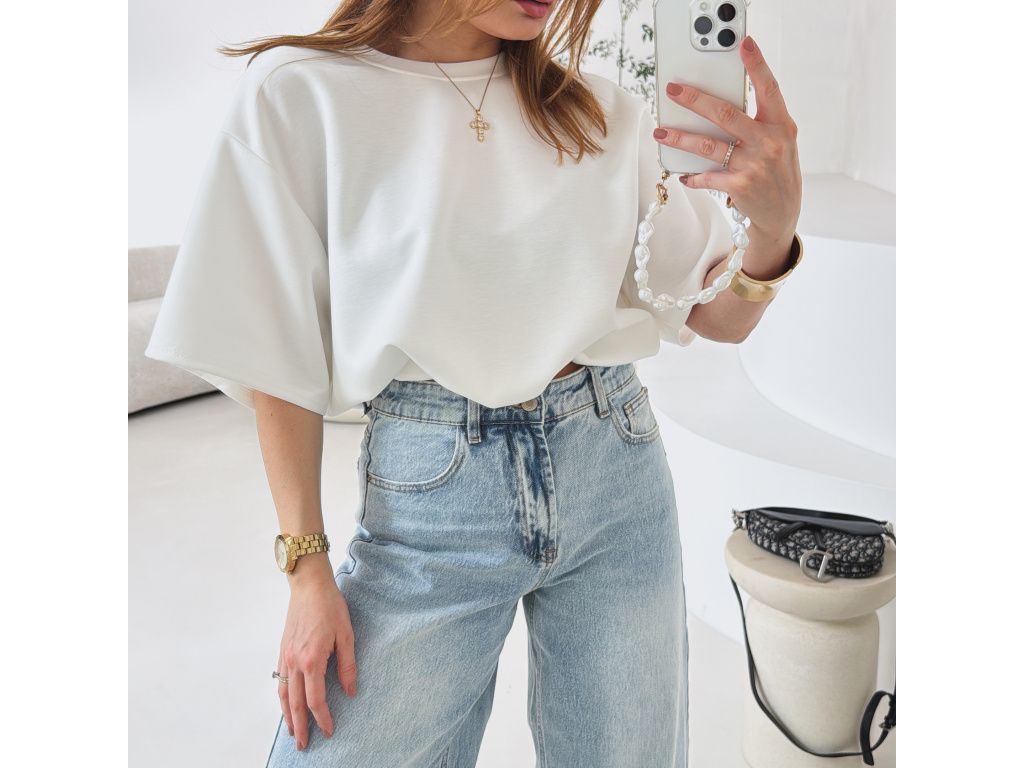 Basic top s oversize, volnějším střihem, který působí ležérně a zároveň velmi stylově. Spodní část je jemně nabíraná, díky čemuž top vypadá přirozeně zakasaný a krásně tvaruje siluetu bez nutnosti upravování. Příjemný, hladký materiál zajišťuje komfort po celý den. Skvěle se kombinuje s džínami, sukní i sakem a snadno z něj vytvoříte outfit na běžné nošení i elegantnější příležitost. Velikost univerzální, sedí na XS - L.