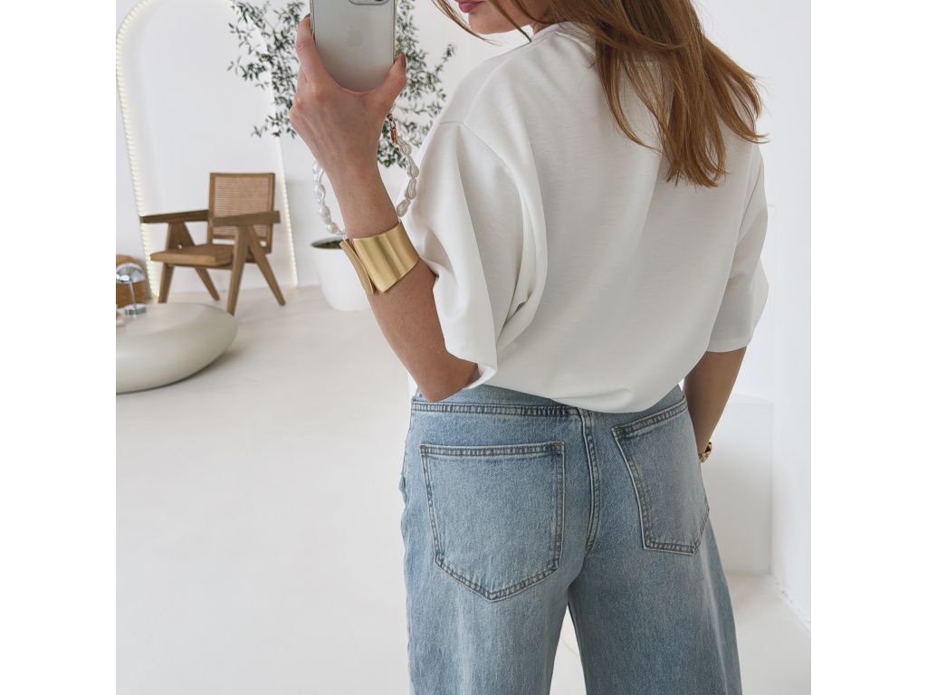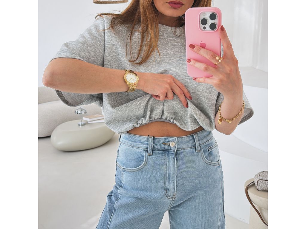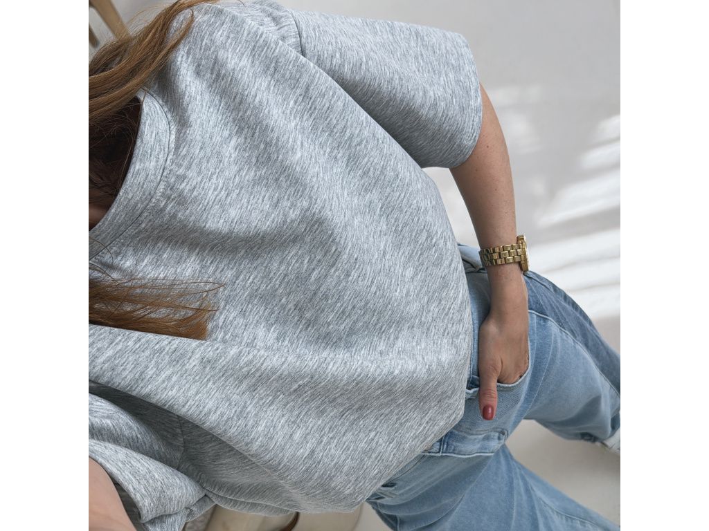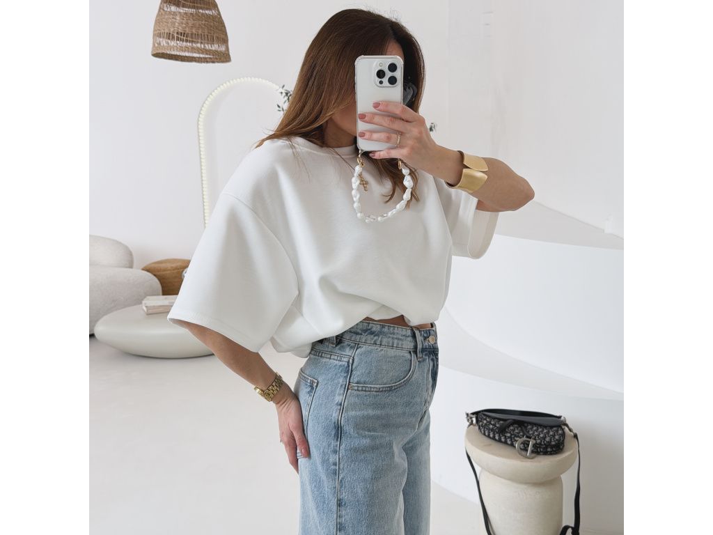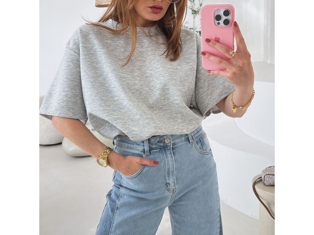 Basic top s oversize, volnějším střihem, který působí ležérně a zároveň velmi stylově. Spodní část je jemně nabíraná, díky čemuž top vypadá přirozeně zakasaný a krásně tvaruje siluetu bez nutnosti upravování. Příjemný, hladký materiál zajišťuje komfort po celý den. Skvěle se kombinuje s džínami, sukní i sakem a snadno z něj vytvoříte outfit na běžné nošení i elegantnější příležitost. Velikost univerzální, sedí na XS - L.