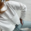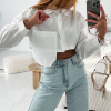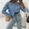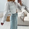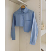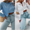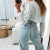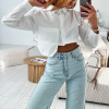 Moc příjemná, bavlněná košile v bílé a modré barvě crop krátkého střihu s kapsou. Velikost je univerzální, sedí na XS, S a M. Foceno je na velikosti XS a výšce 165 cm.