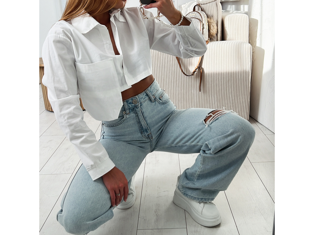 Bílá crop košile s kapsou Morris