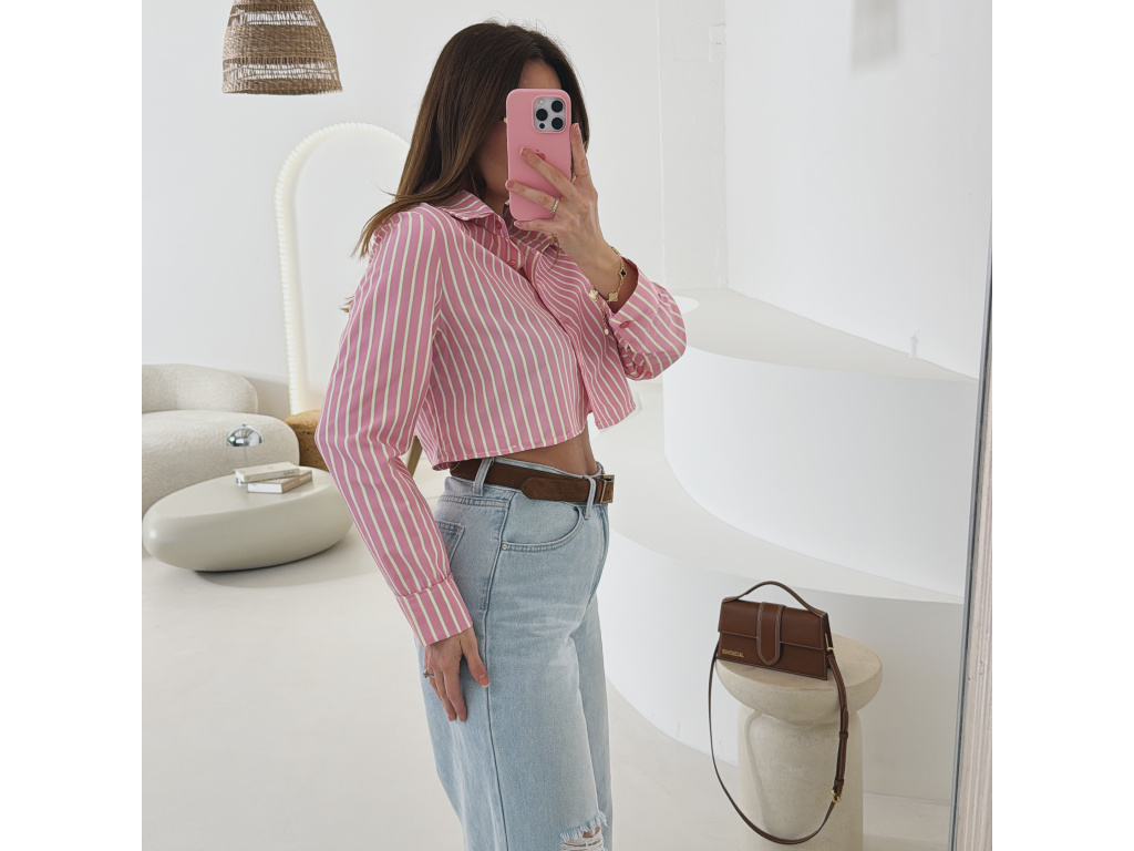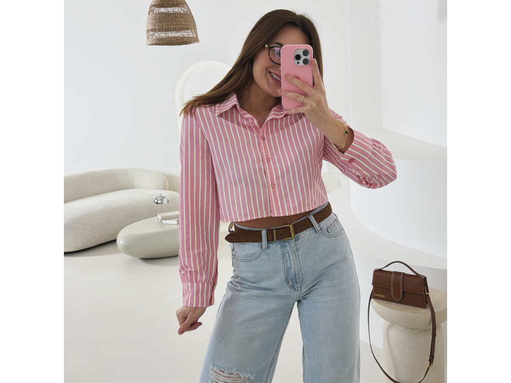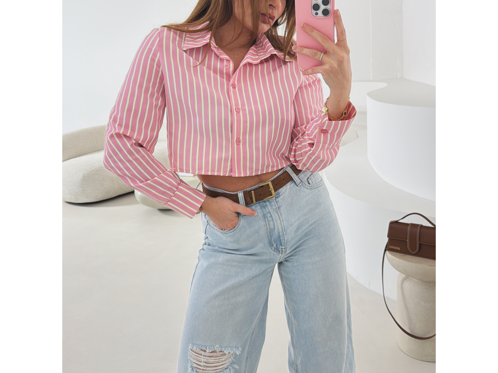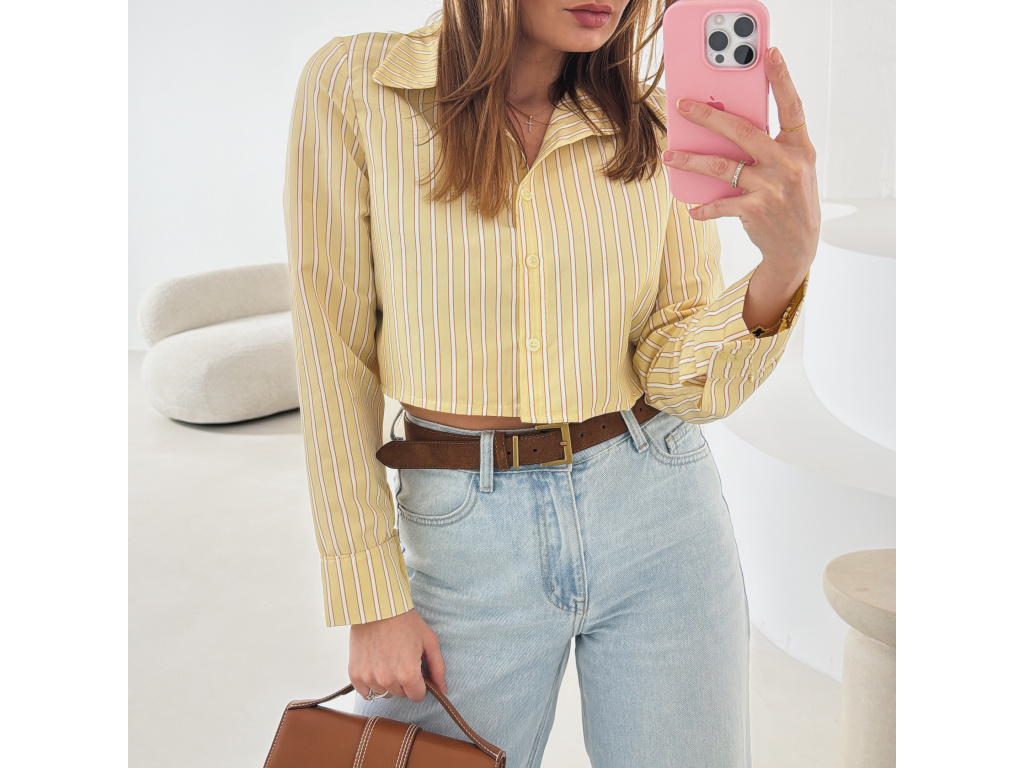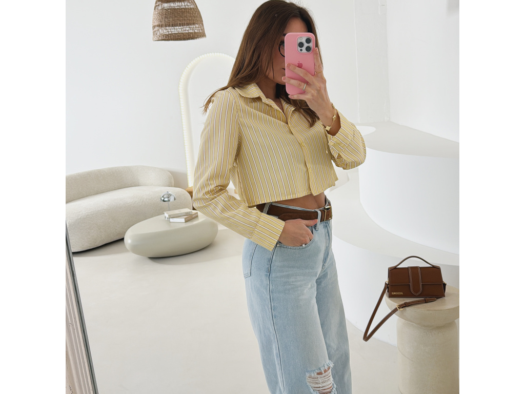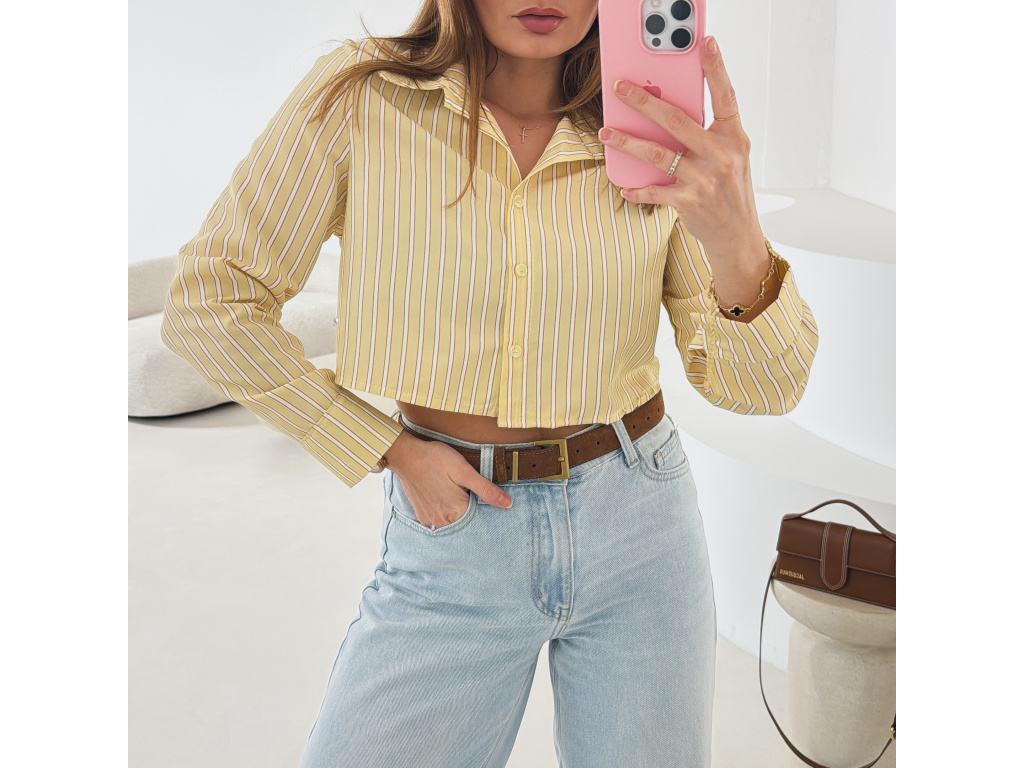 Stylová crop košile s jemným proužkovaným vzorem, která dodá outfitu svěží a moderní vzhled. Kratší střih krásně zvýrazní pas a skvěle se kombinuje s kalhotami či džíny s vysokým pasem. Dostupná ve třech barevných odstínech.