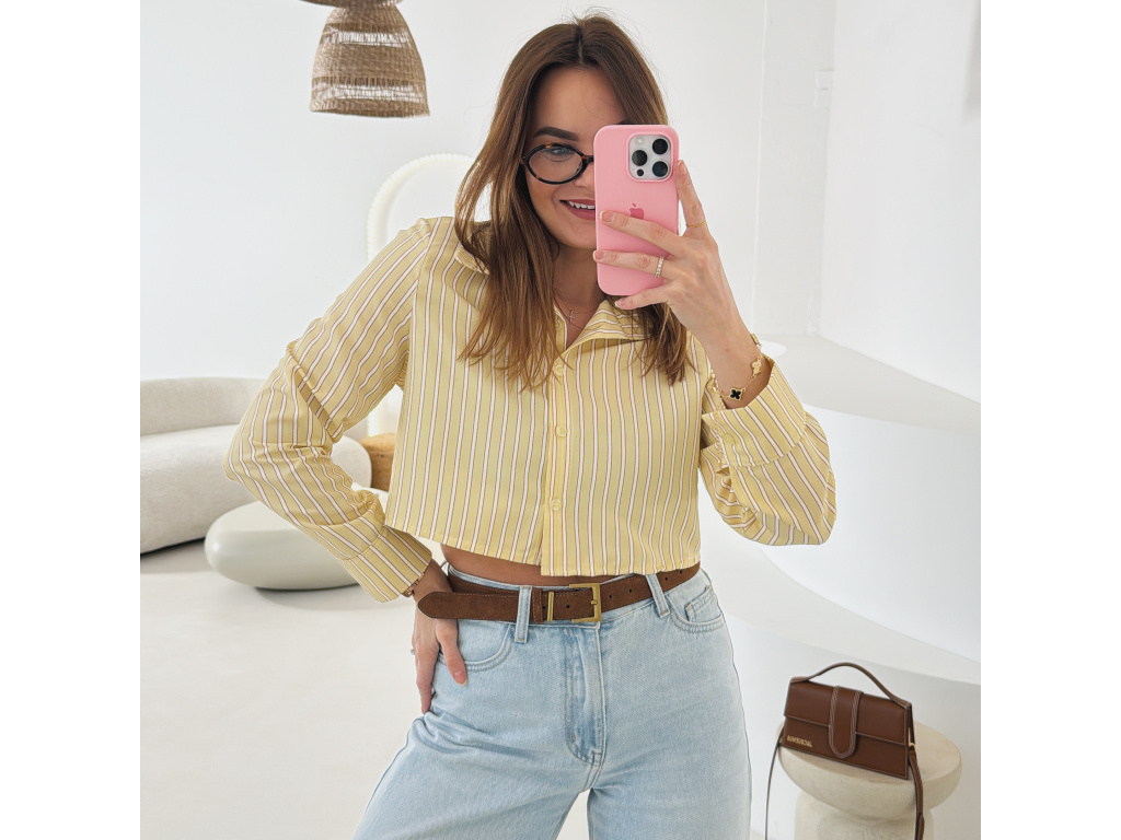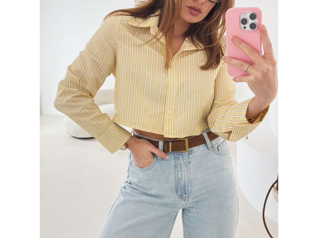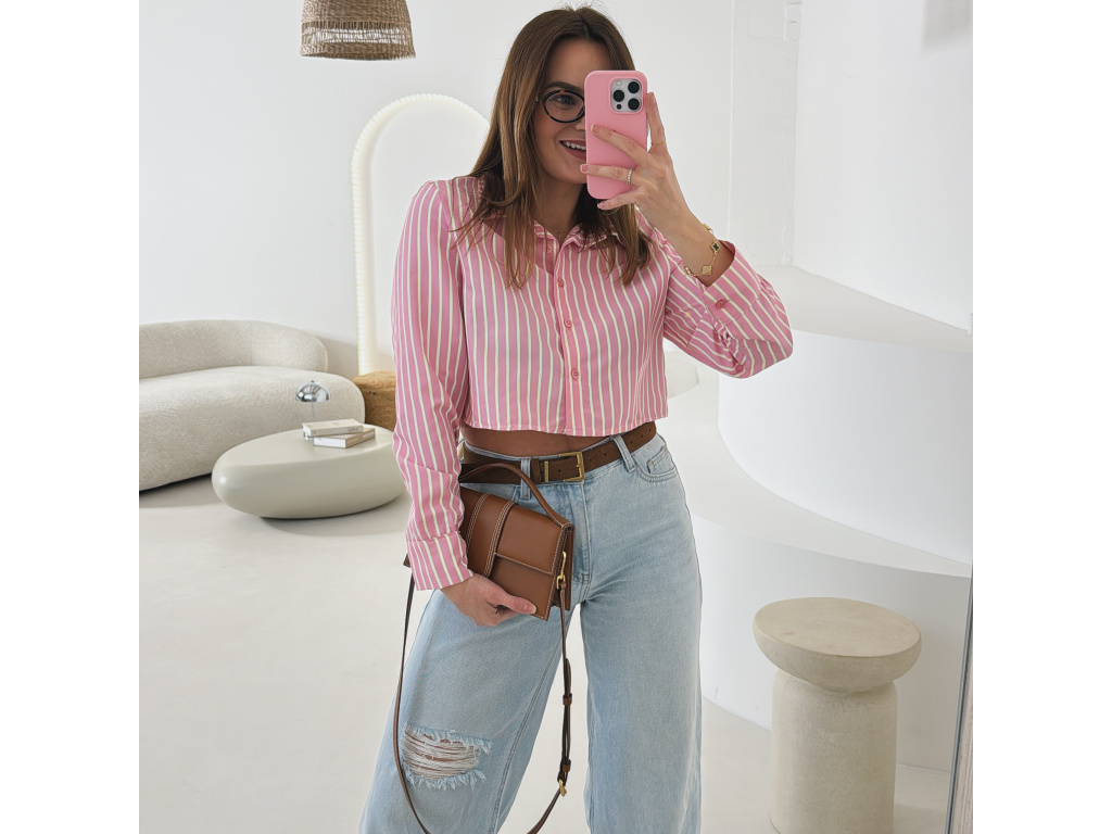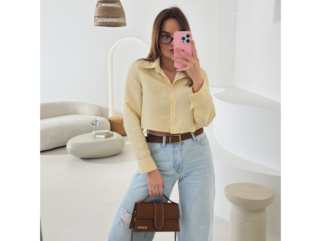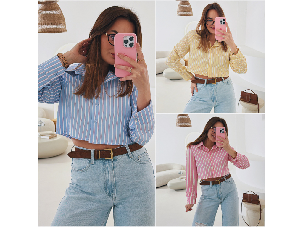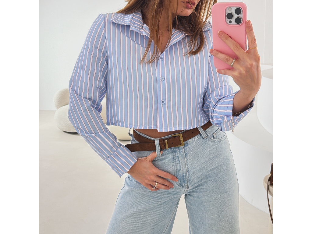Stylová crop košile s jemným proužkovaným vzorem, která dodá outfitu svěží a moderní vzhled. Kratší střih krásně zvýrazní pas a skvěle se kombinuje s kalhotami či džíny s vysokým pasem. Dostupná ve třech barevných odstínech.