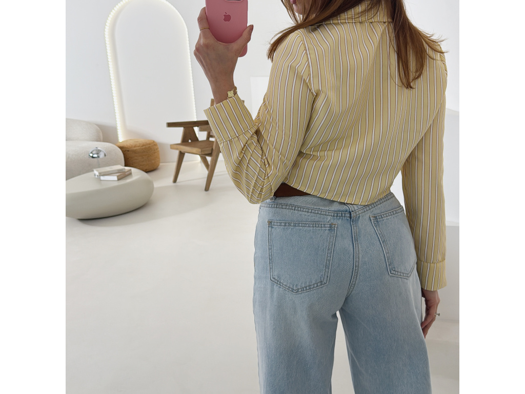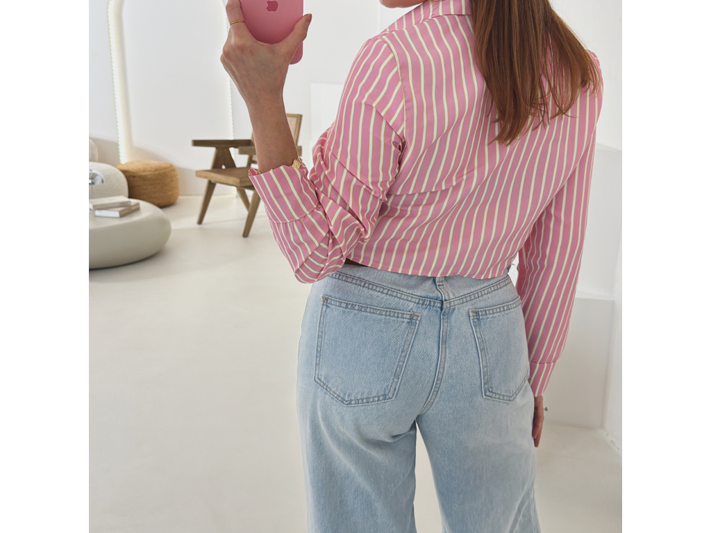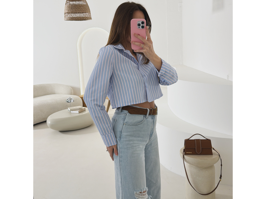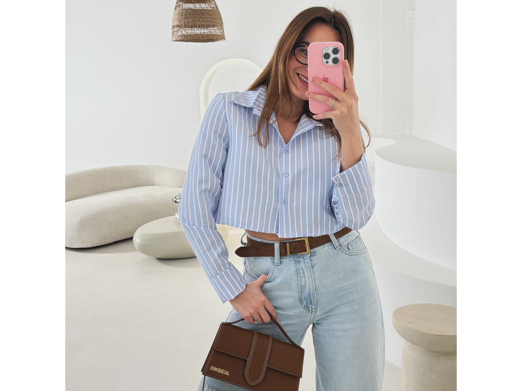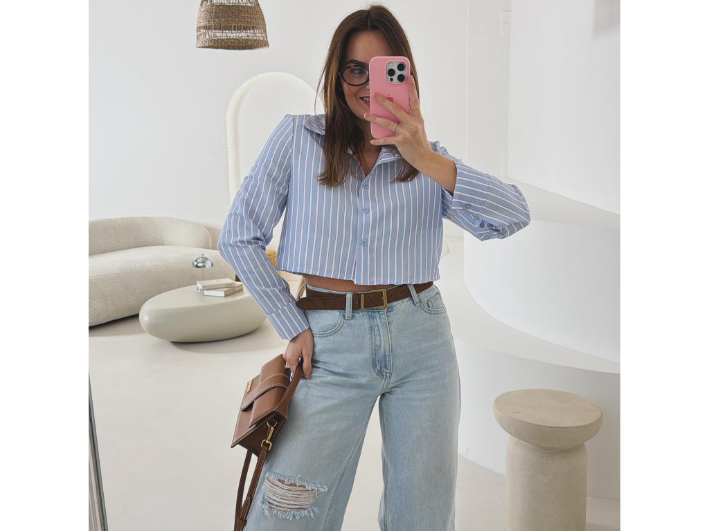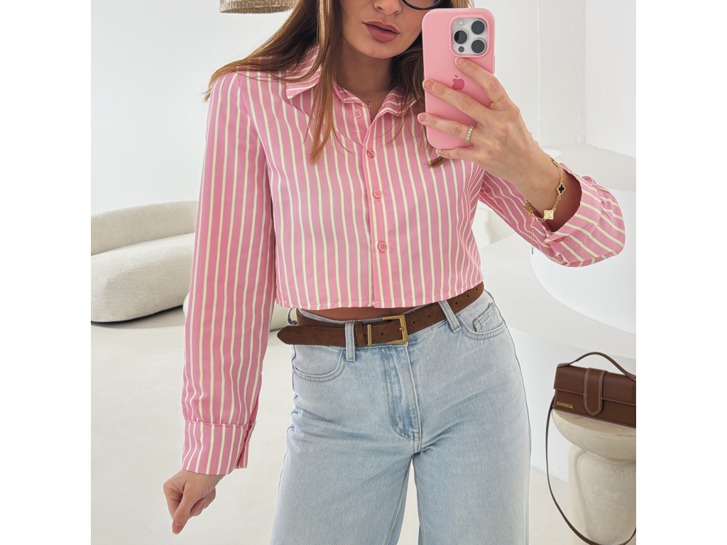 Stylová crop košile s jemným proužkovaným vzorem, která dodá outfitu svěží a moderní vzhled. Kratší střih krásně zvýrazní pas a skvěle se kombinuje s kalhotami či džíny s vysokým pasem. Dostupná ve třech barevných odstínech.