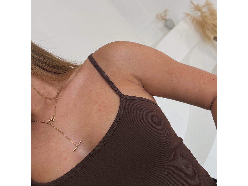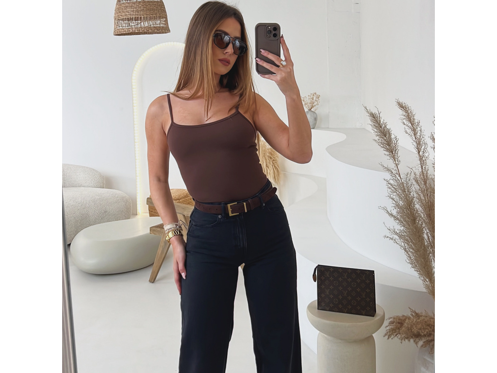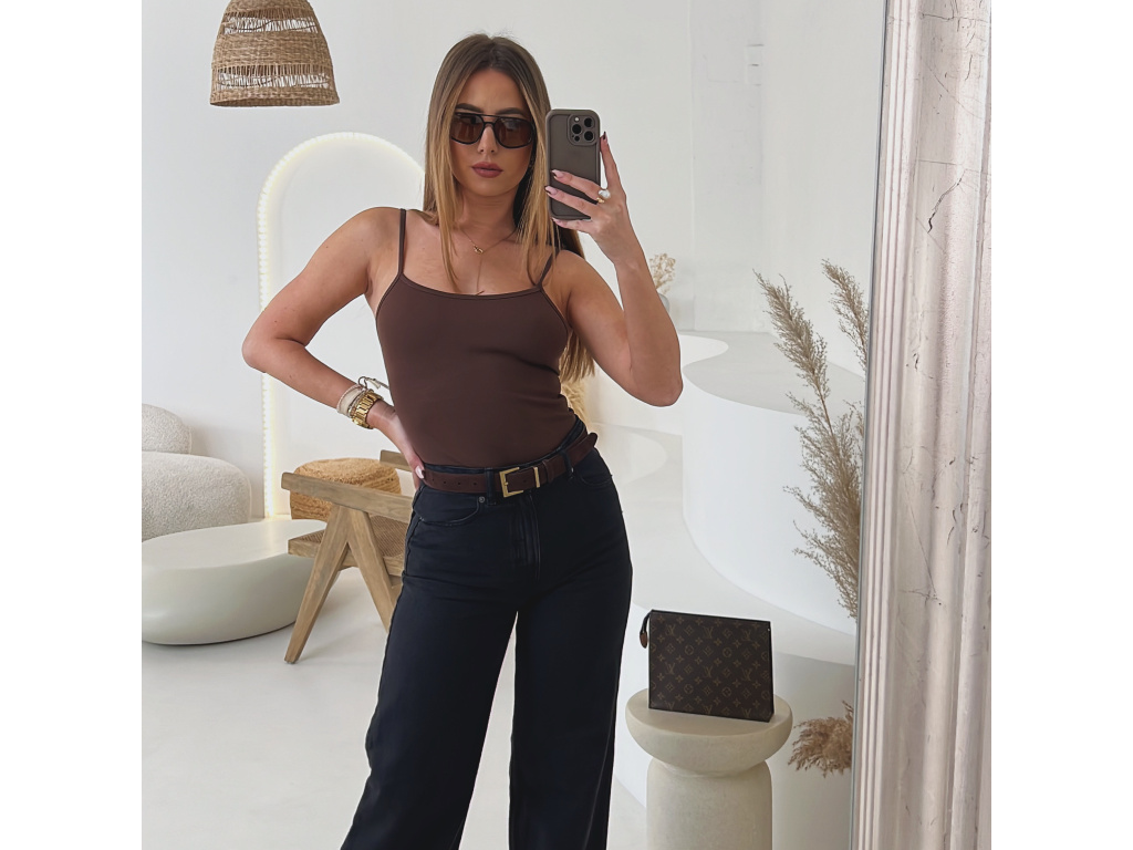 Minimalistické body s tenkými nastavitelnými ramínky, vyrobené z pružného, žebrovaného a pohodlného materiálu, který se přizpůsobí postavě. Ve spodní části má zapínání na podprsenkové háčky s možností nastavení až na čtyři délky pro maximální komfort. Skvělý základ do každého šatníku. Velikost je univerzální, sedí na XS,S a M.