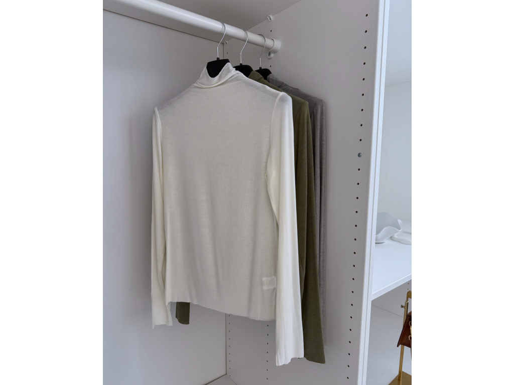 Extra příjemný, jemný rolák v bílé, hnědé, vínové, khaki a šedé barvě s dlouhým rukávem. Rolák mírně, decentně prosvítá, je z lehkého, elastického materiálu. Velikost je univerzální, sedí na XS, S, M i menší L. Foceno je na velikosti XS a výšce 165 cm.
