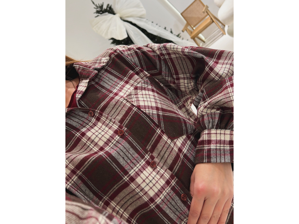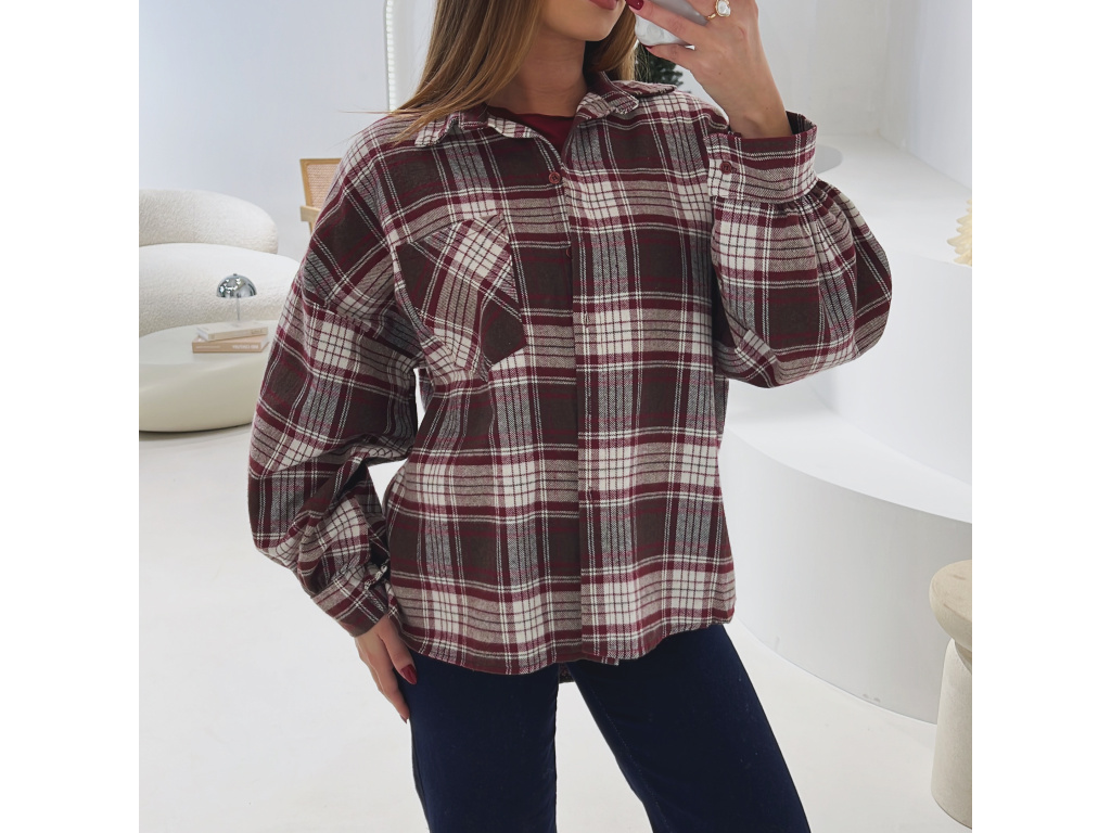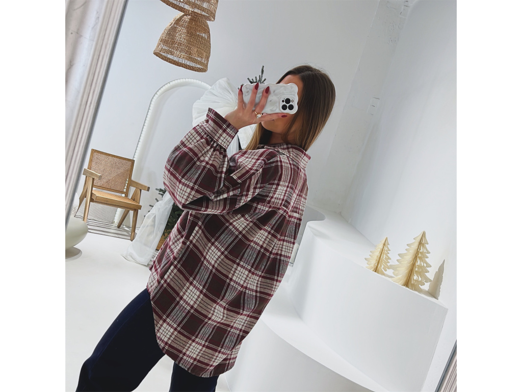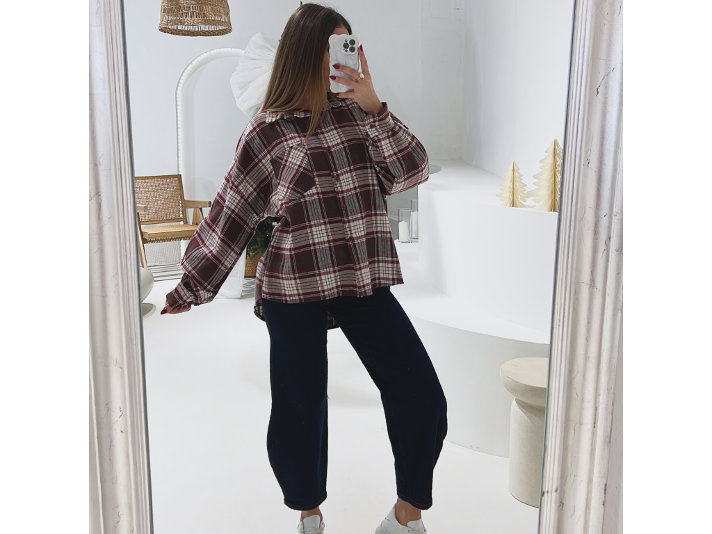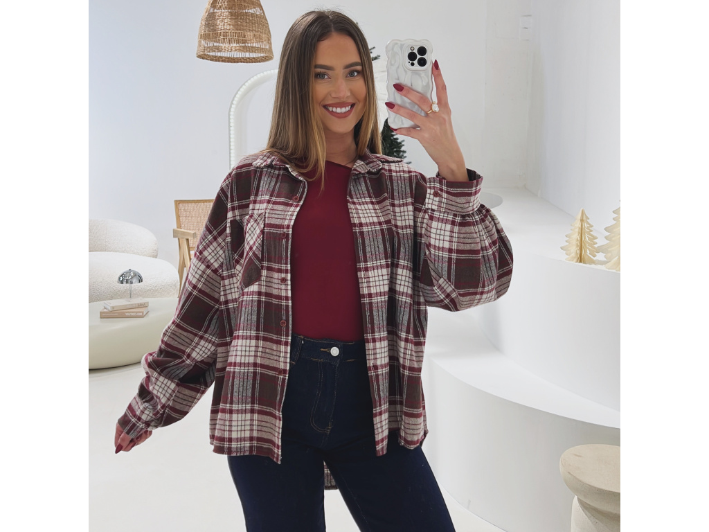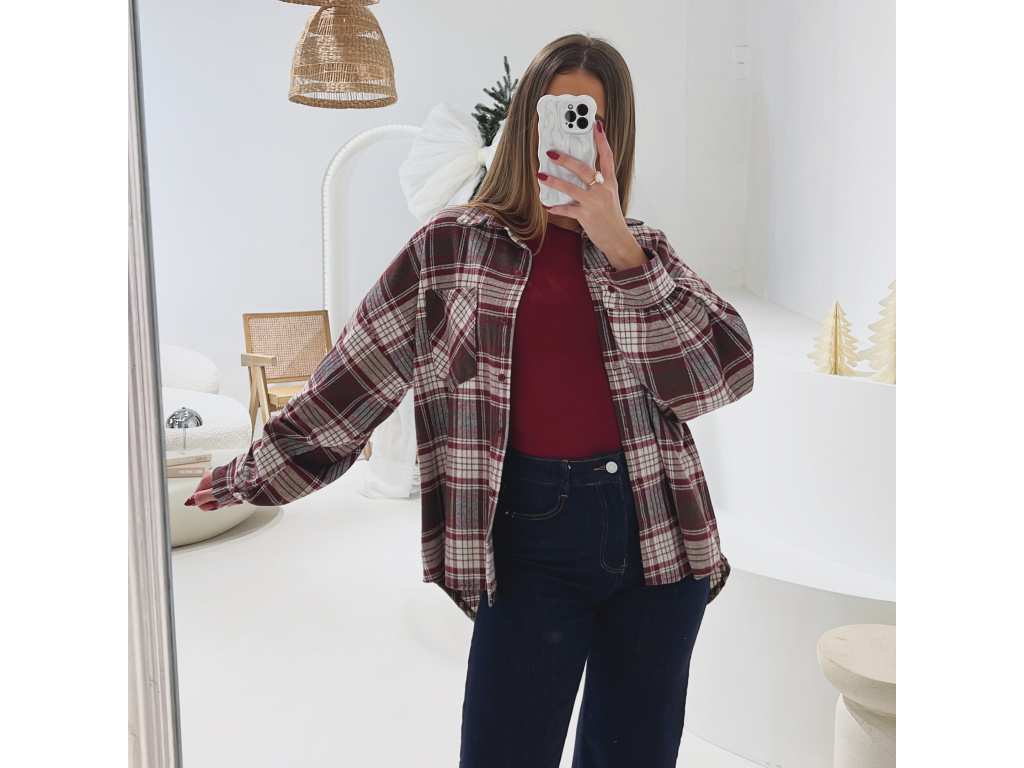 Pohodlná oversize košile v příjemném, měkkém materiálu s klasickým kostkovaným vzorem. Vínové a krémové tóny dodávají outfitu hřejivý, podzimně-zimní nádech. Skvěle se hodí jako lehká vrstva přes tričko či rolák – ideální pro každodenní nošení i ležérní styl.