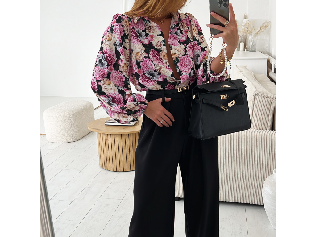 Košile krásného jarního, květinového vzoru v béžové a černé barvě s balónovými rukávy zakončeny do gumy. Velikost je univerzální, sedí na XS - L. Foceno je na velikosti XS a výšce 165 cm.!