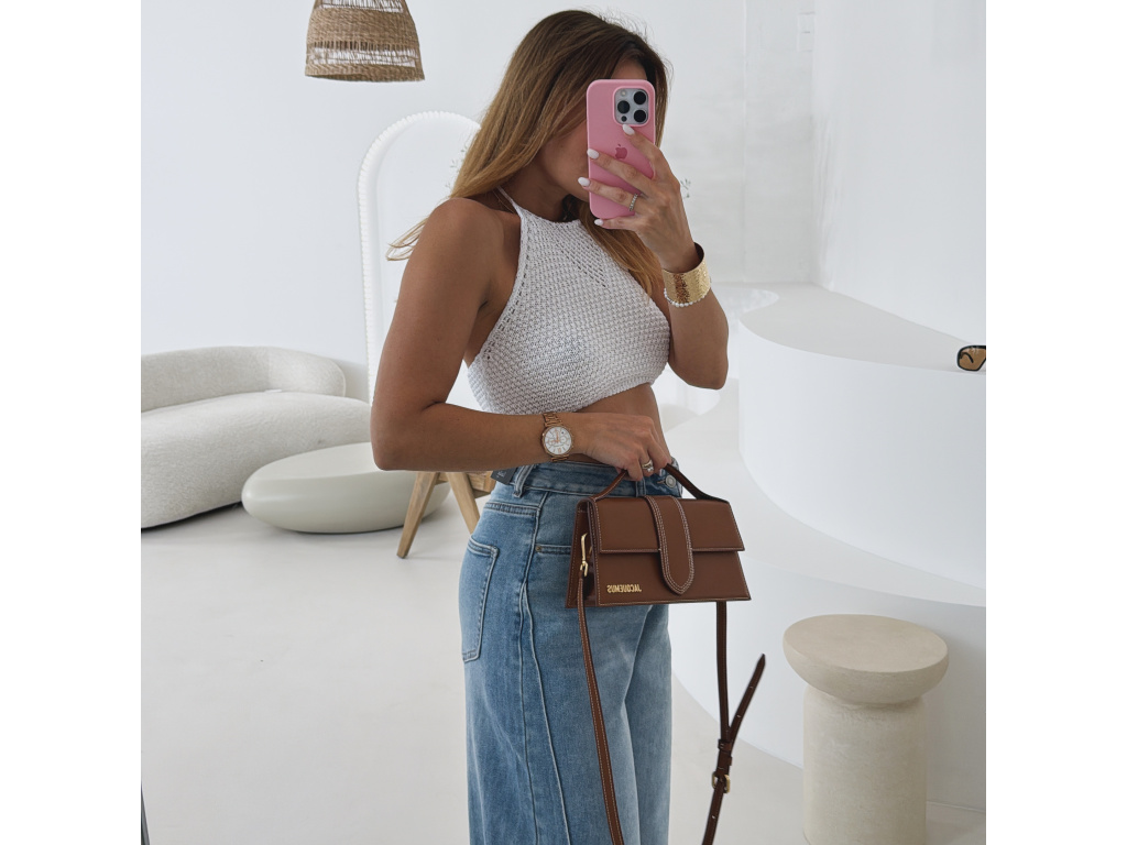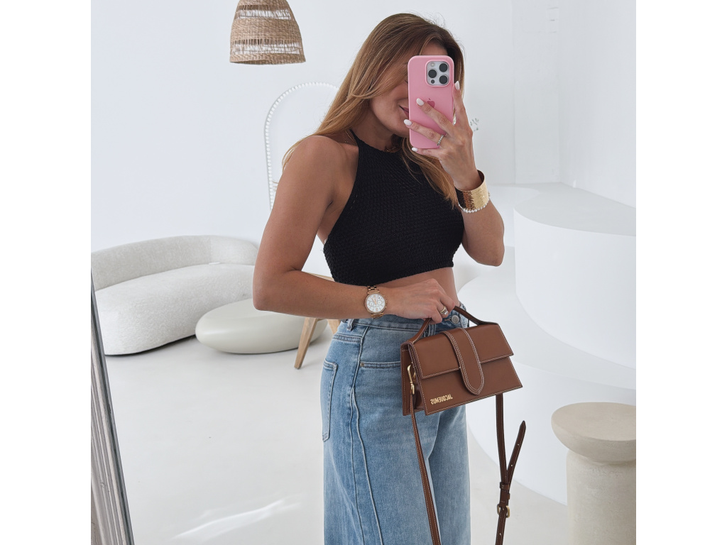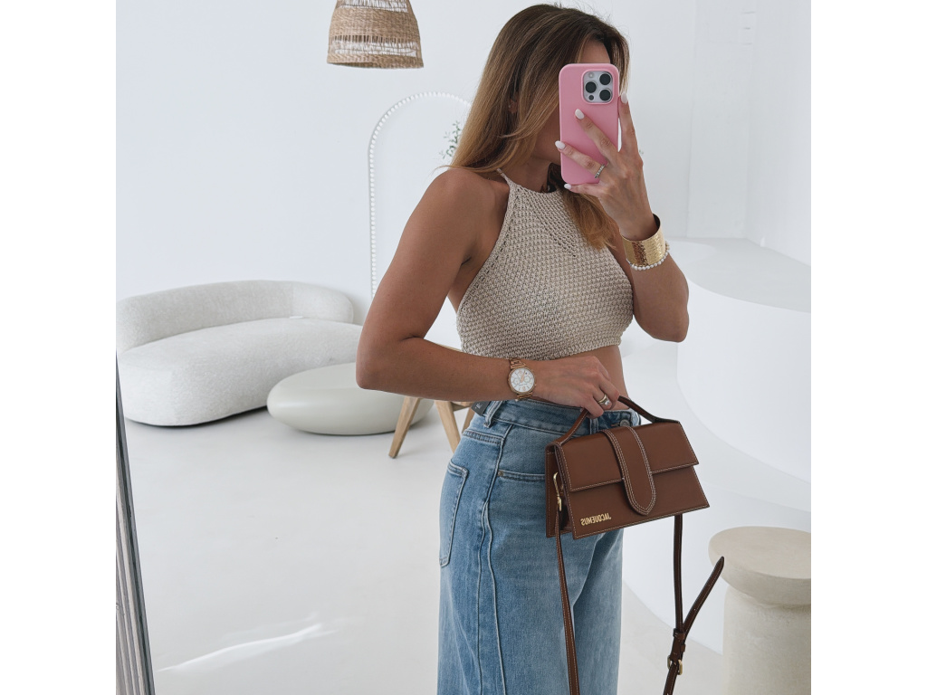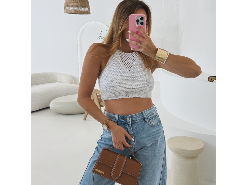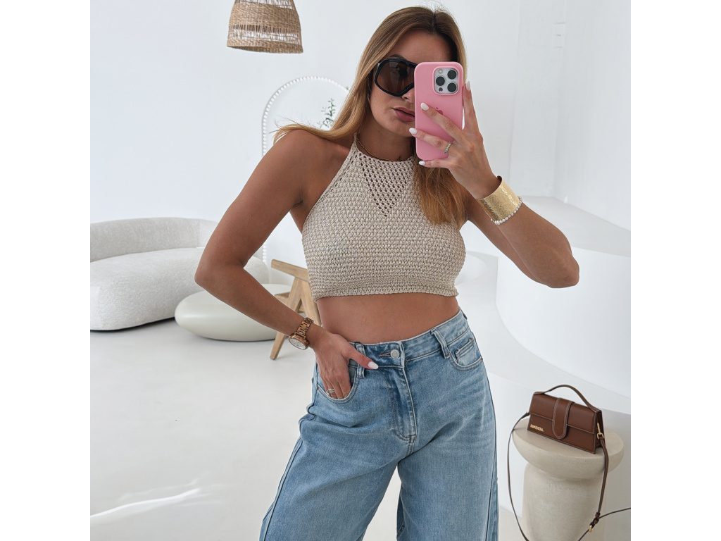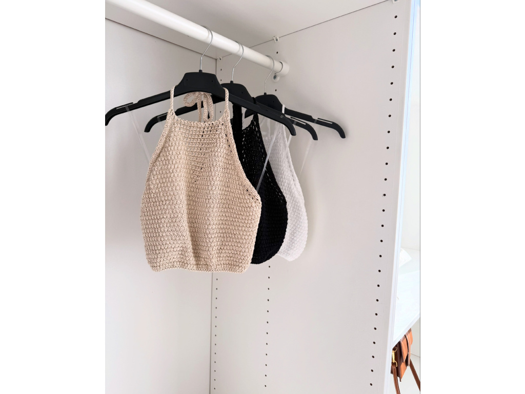 Stylový háčkovaný crop top s halter výstřihem, který podtrhne letní vibe každého outfitu. Pohodlný střih, zavazování za krkem a lehký materiál dělají z tohoto kousku ideální volbu na teplé dny. Materiál je elastický. Dostupný v růžové, bílé, černé, béžové a hnědé barvě. Velikost je univerzální, sedí na XS, S, M.