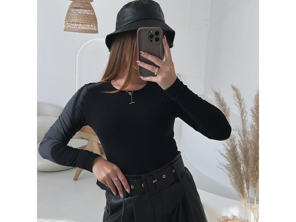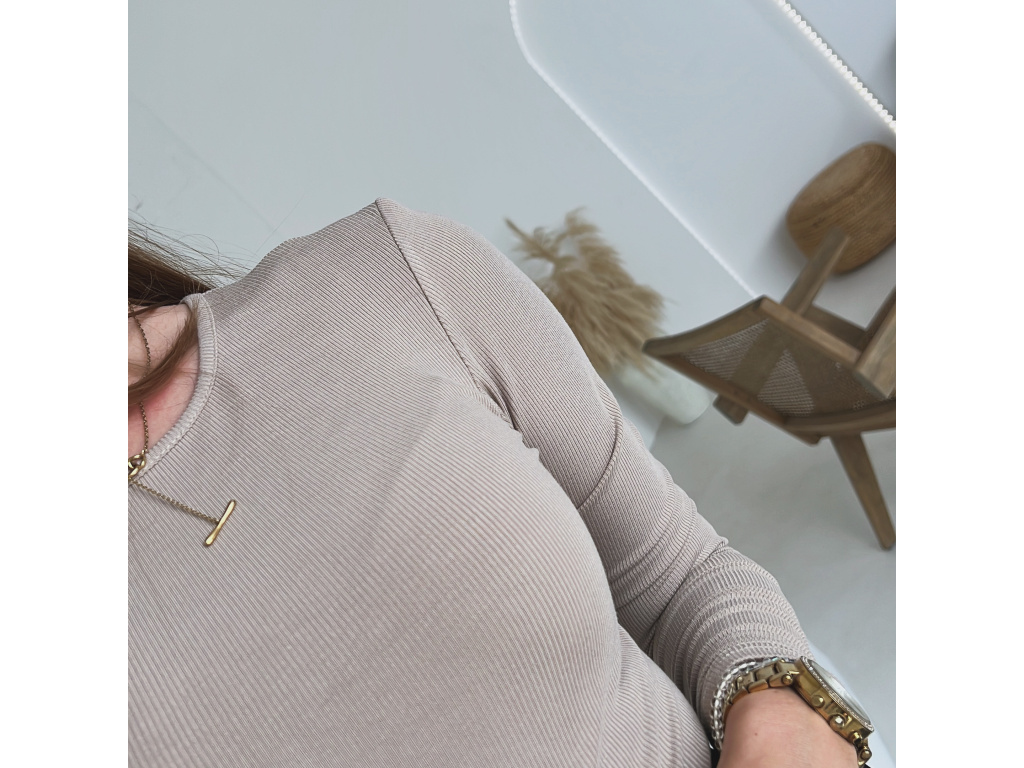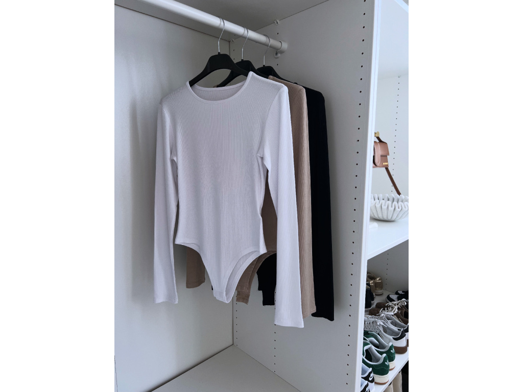 Minimalistické a univerzální bodíčko z příjemného žebrovaného materiálu, který se krásně přizpůsobí postavě. Díky své elasticitě je velmi pohodlné na nošení. Má dlouhý rukáv, kulatý výstřih a praktické zapínání na patentky v dolní části. K dispozici v několika barvách – ideální k džínům, sukním i šortkám. Velikost je univerzální, hezky se natáhne od XS - M velikost.