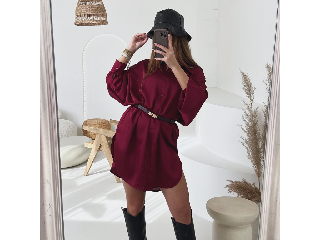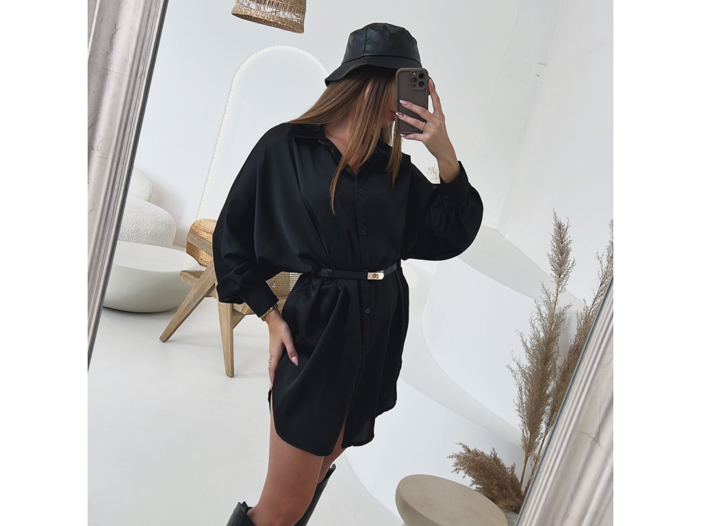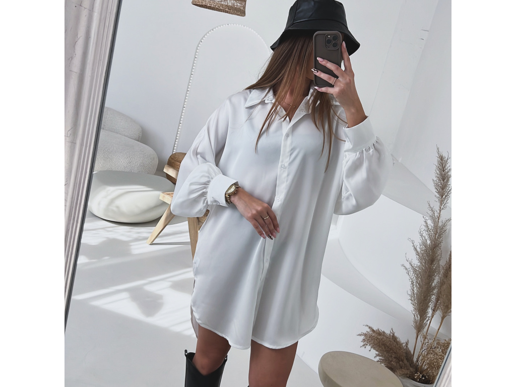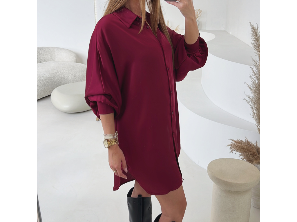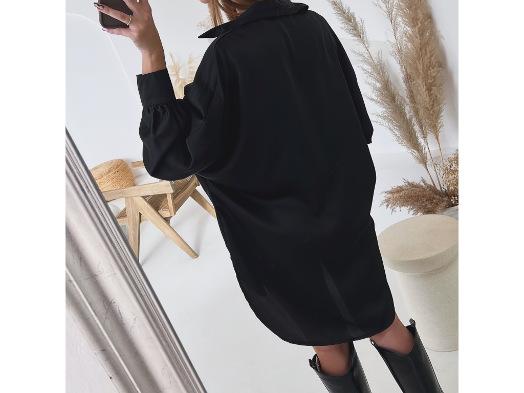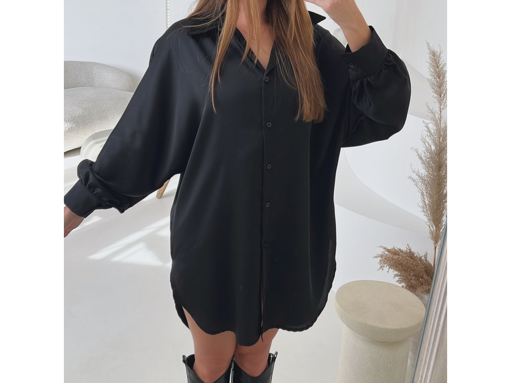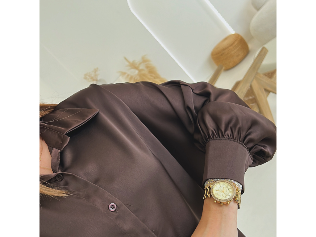 Elegantní prodloužená košile z jemného saténového materiálu, který působí luxusně a krásně splývá na postavě. Košile má volnější střih, dlouhý rukáv s manžetou a zapínání na knoflíky po celé délce. Díky své univerzálnosti ji můžeš nosit jako košili, šaty nebo vrstvený top – skvěle vypadá s páskem, který však není součástí balení (slouží pouze jako inspirace). Dostupná v několika elegantních barvách – černá, hnědá, bílá a vínová. Velikost je univerzální, sedí na XS - L.