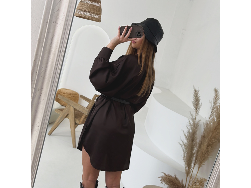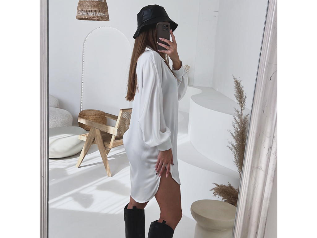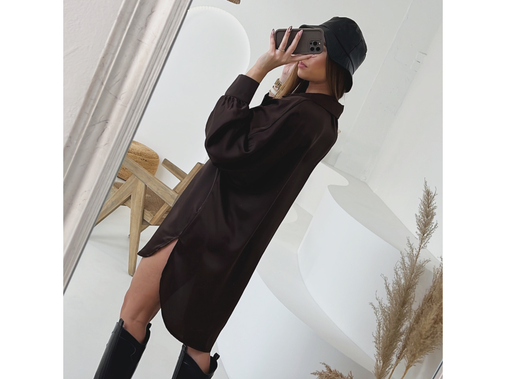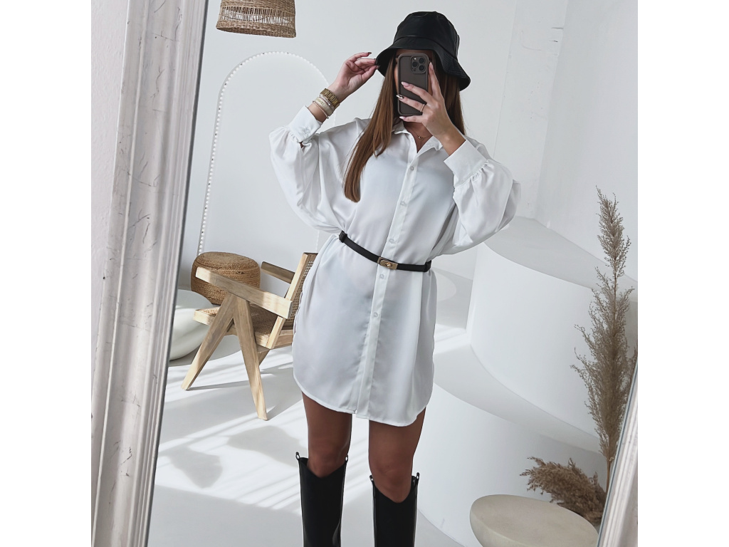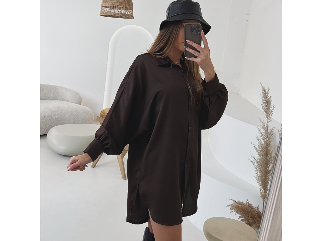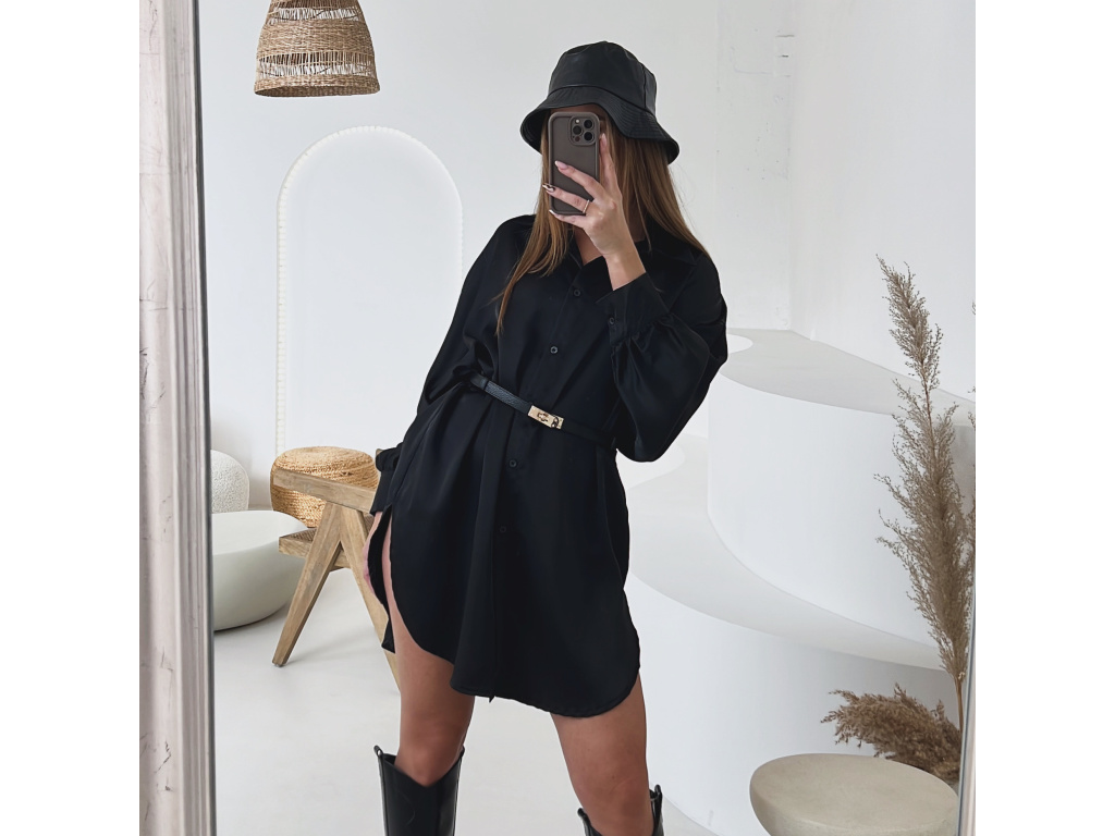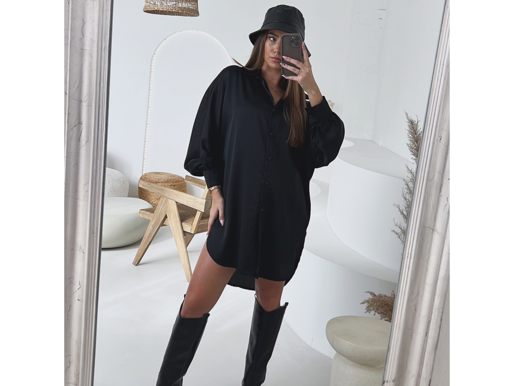 Elegantní prodloužená košile z jemného saténového materiálu, který působí luxusně a krásně splývá na postavě. Košile má volnější střih, dlouhý rukáv s manžetou a zapínání na knoflíky po celé délce. Díky své univerzálnosti ji můžeš nosit jako košili, šaty nebo vrstvený top – skvěle vypadá s páskem, který však není součástí balení (slouží pouze jako inspirace). Dostupná v několika elegantních barvách – černá, hnědá, bílá a vínová. Velikost je univerzální, sedí na XS - L.